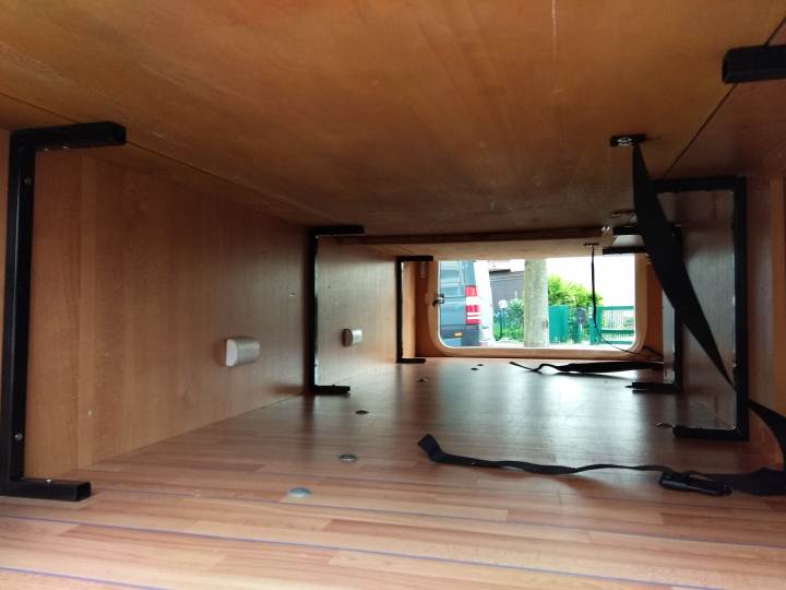 Nel mio camper, ho i due letti a castello in fondo, e sotto a quello inferiore c'è un piccolo garage.