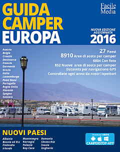 Quale guida utilizzate per cercare le aree di sosta? Io da un po' di anni viaggio con Guida Camper Europa dove trovo le info più importanti in modo semplice e veloce. Proprio in questi giorni mi è arrivata quella per il 2016 aggiornata con 12 nuovi paesi.