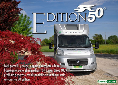 Protagonista questa settimana è il Laika Kreos 4009 50 Edition, versione celebrativa per i 50 anni di Laika del celebre profilato del marchio di Tavarnelle. Capace di associare, alla tradizionale qualità costruttiva Laika contenuti quali doppio pavimento tecnico, scocca con coibentazione in styrofoam e intelaiatura in poliuretano, letto basculante anteriore a scomparsa e una pianta interna oggi tra le più richieste, quella con letti gemelli posteriori su garage, il Kreos 4009 guadagna ulteriori fascino ed eleganza con la versione 50 Edition, grazie a diverse personalizzazioni interne ed esterne che accrescono ulteriormente la personalità e il carattere di un veicolo generoso e curato.