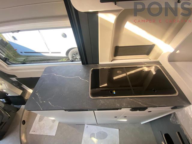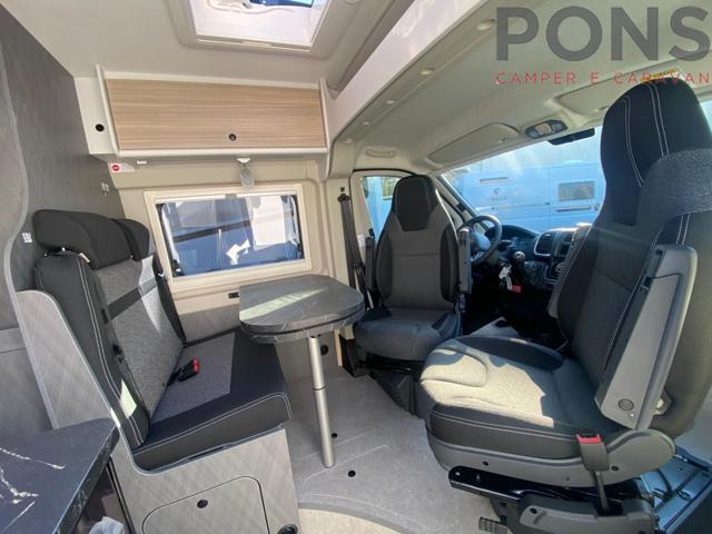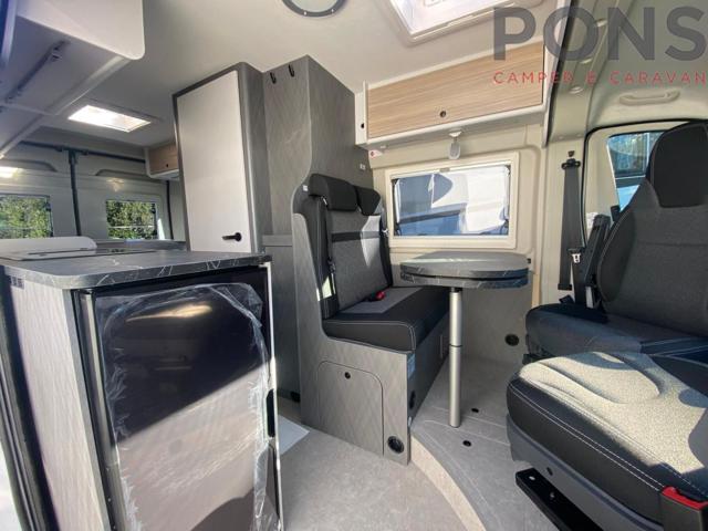 Sviluppato su una lunghezza di soli 5,99m, accedendo al veicolo ci si affaccia su una luminosa dinette con sedili cabina girevoli e tavolo con piano d'appoggio supplementare orientabile, cucina composta da piano cottura a due fuochi e lavello oltre a un comodo piano di appoggio.