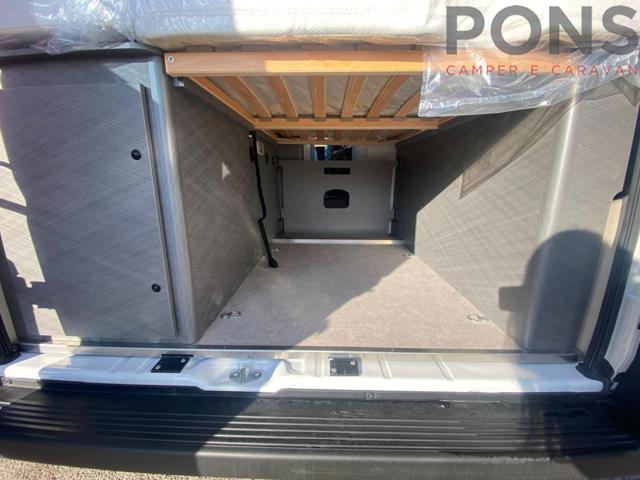 Nella parte posteriore è collocato il letto matrimoniale sotto al quale è possibile stivare bagagli o attrezzature varie, mentre ai suoi piedi troviamo il vano bagno composto da toilette e doccia.