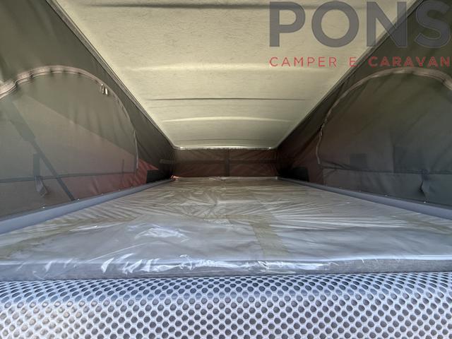 Ampio letto aggiuntivo in alto, perfetto per ospiti, figli o per avere una zona notte separata. Trasforma il van compatto in un vero 4 posti letto.