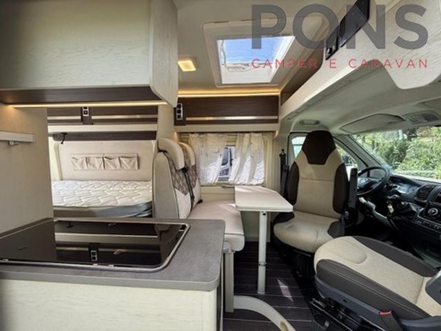 sviluppato in una lunghezza di 5,40 mt è omologato 4 posti viaggio, sono 3 invece i posti letto: due sempre pronti dati dal letto alla francese longitudinale e uno componibile in dinette.