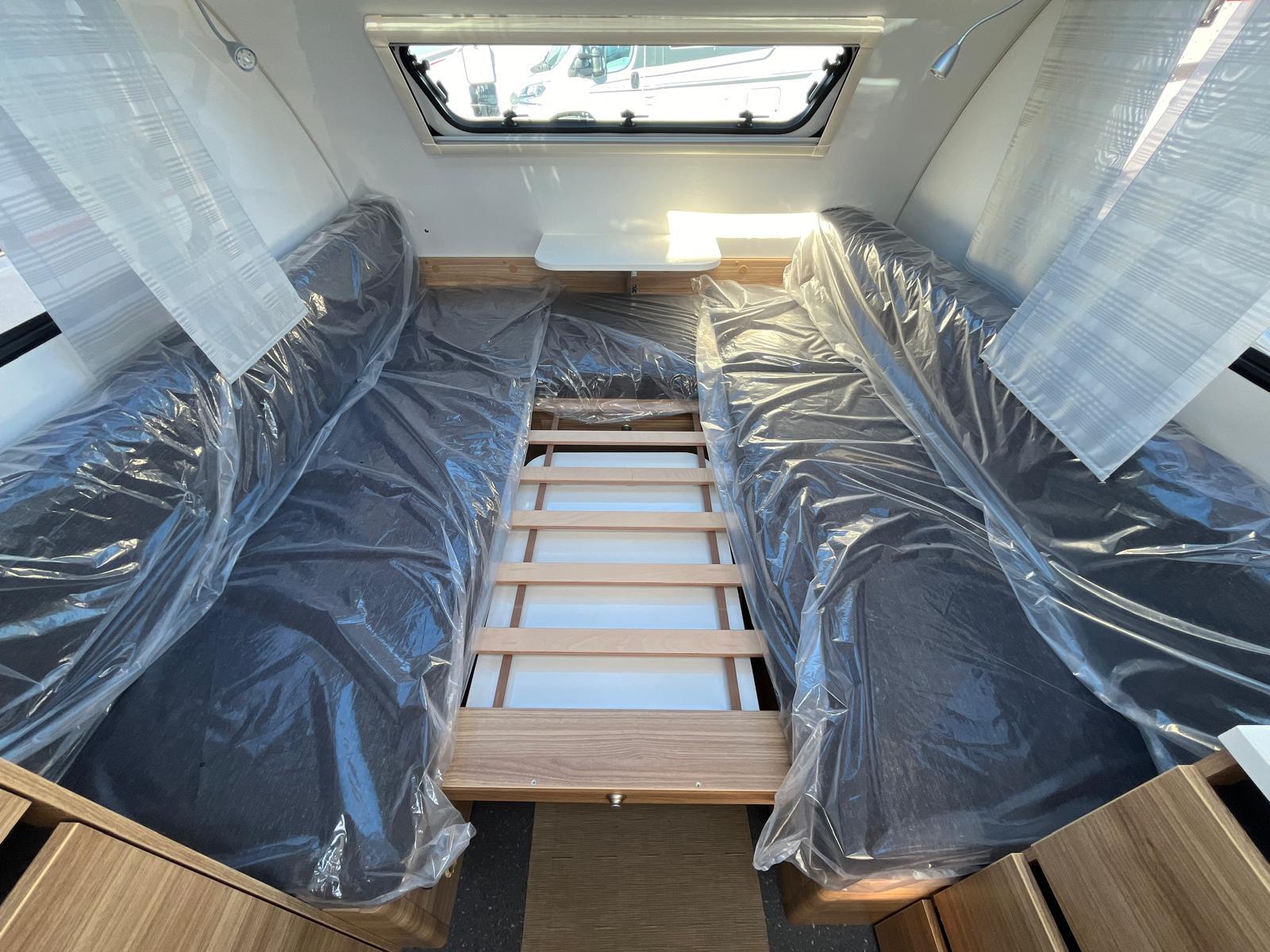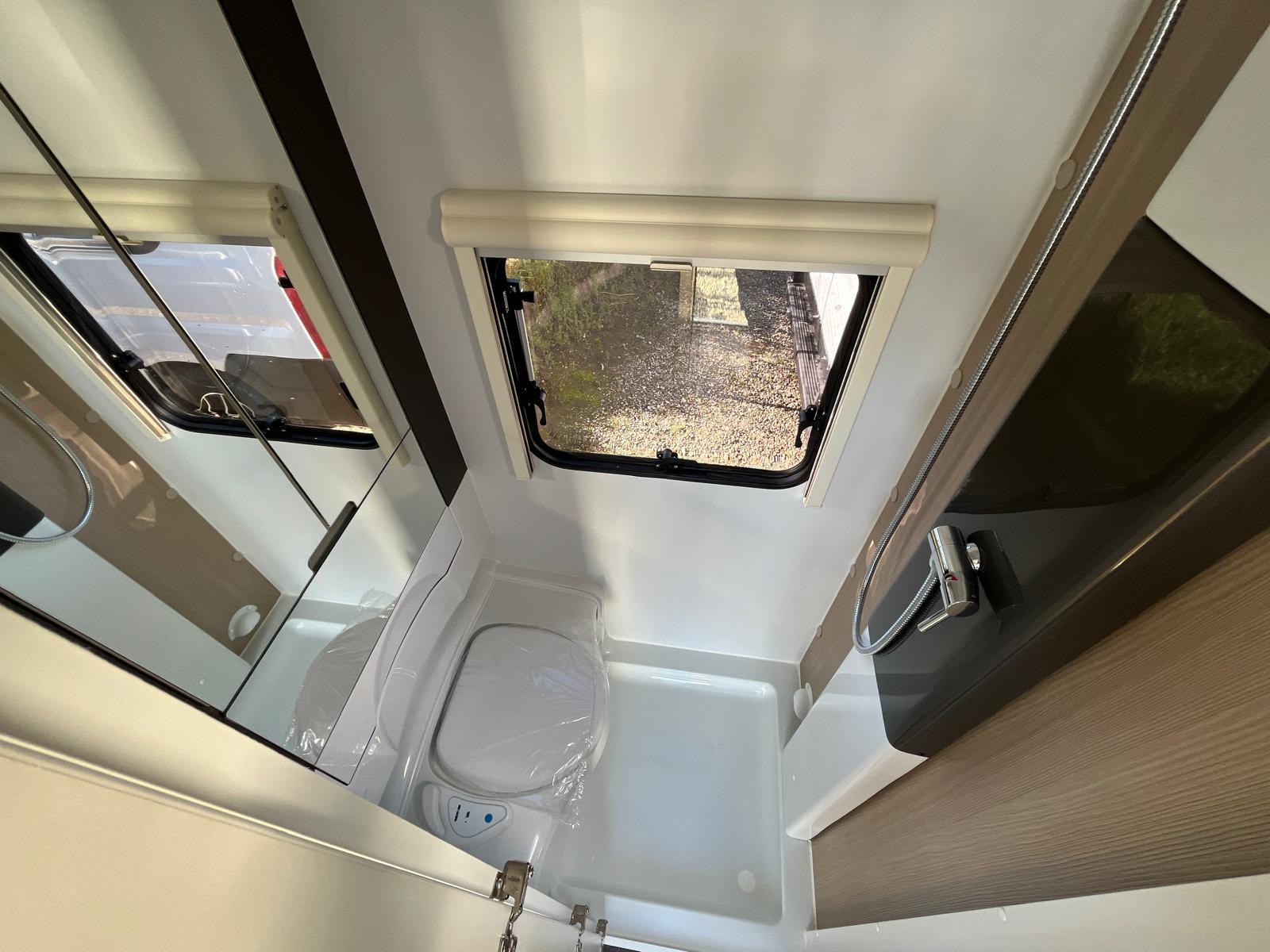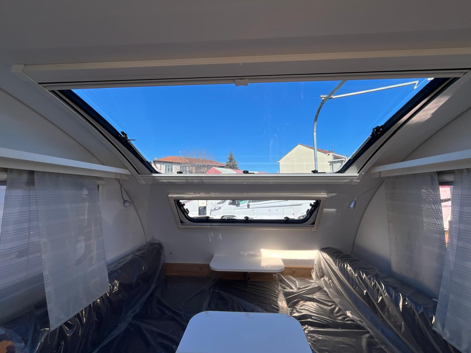 Carrozzeria in vetroresina, Stabilizzatore su timone, Piedini di stazionamento rinforzati + adattatori BIG FOOT, Cerchi in LEGA e pneumatici da 15”, Wc chimico fisso con cassetta estraibile, Serbatoio acqua bianca 50 LT, Serbatoio acqua grigie 25 LT, Luci a led, Luce in veranda led,