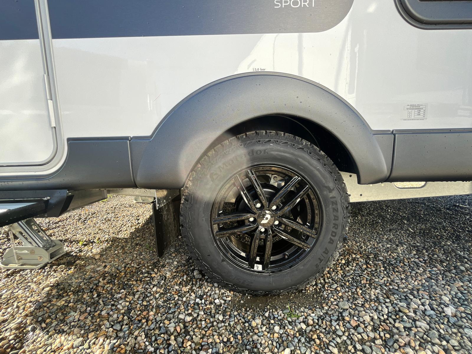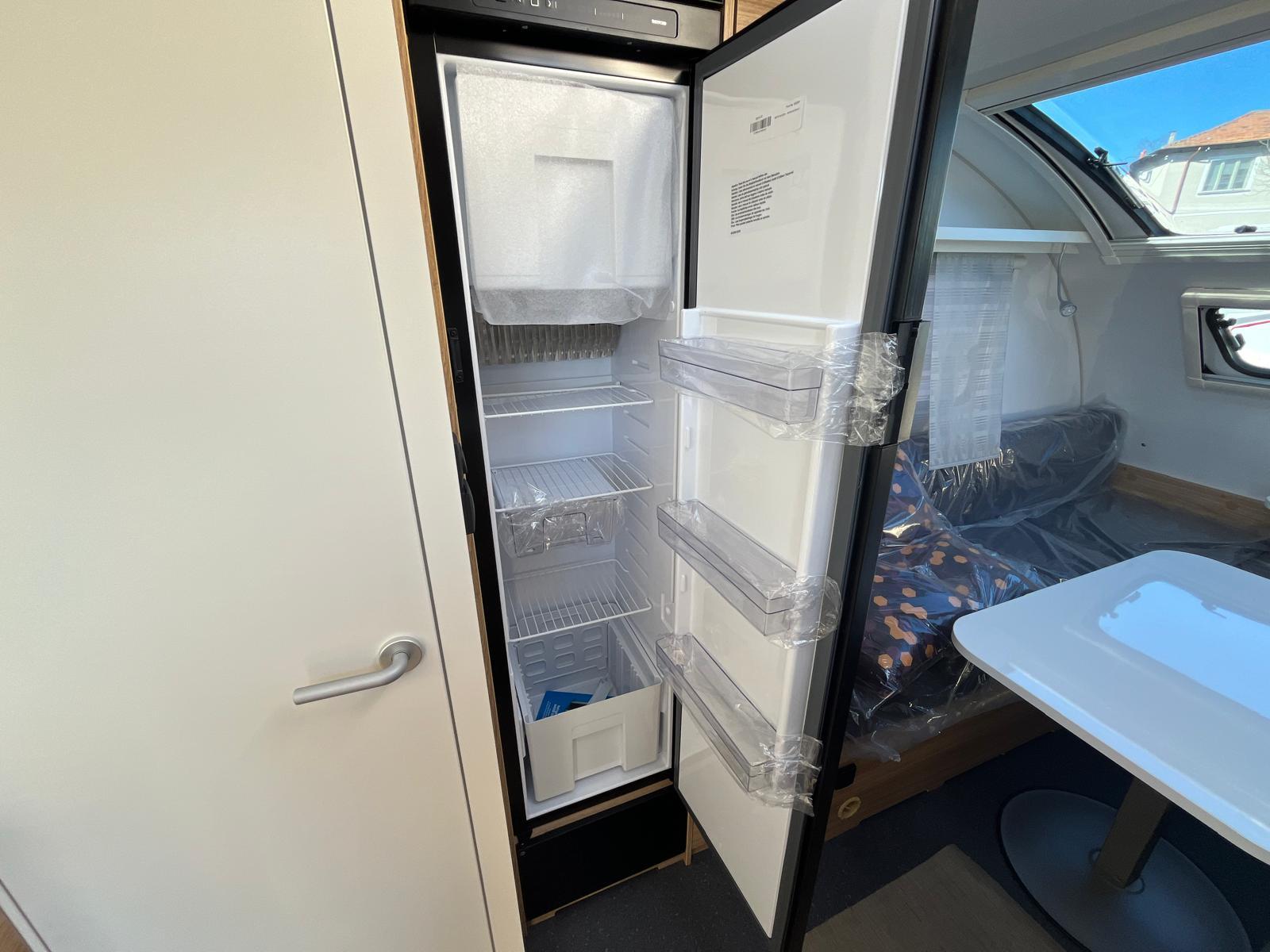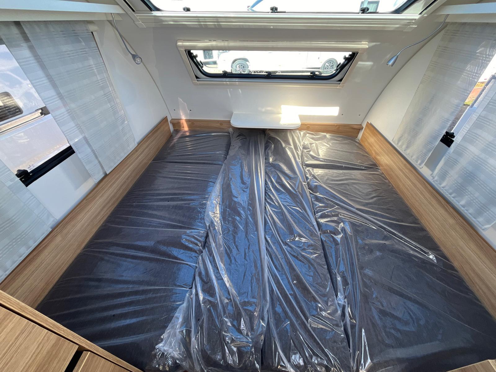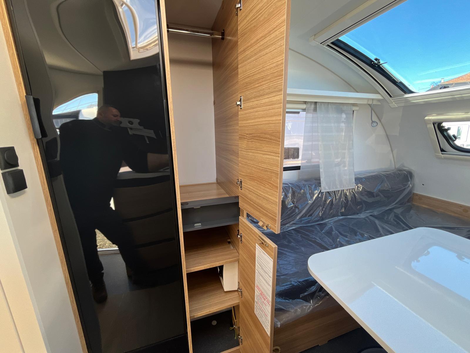 Carrozzeria in vetroresina, Stabilizzatore su timone, Piedini di stazionamento rinforzati + adattatori BIG FOOT, Cerchi in LEGA e pneumatici da 15”, Wc chimico fisso con cassetta estraibile, Serbatoio acqua bianca 50 LT, Serbatoio acqua grigie 25 LT, Luci a led, Luce in veranda led,