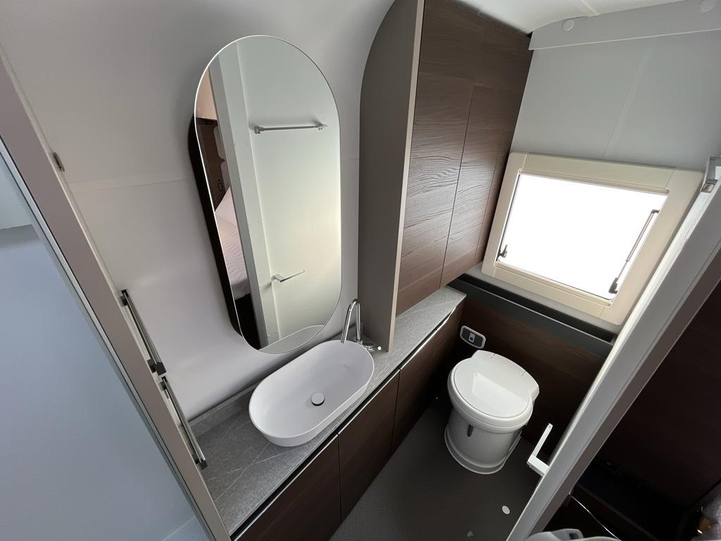 ADRIA ALPINA 663 HT, NUOVA. Splendida caravan con ampia zona living centrale con maxi oblò panoramico, divano a ferro di cavallo, tavolo apribile con gamba telescopica e divanetto di fronte, nella parte anteriore cucina con capienti vani e cassetti, grande piano di lavoro sotto un luminoso sky roof, forno a gas e forno a microonde di serie, frigo con congelatore separato. Nella parte posteriore camera da letto con predisposizione per condizionatore sul tetto, letto matrimoniale con doghe apribili su vano contenitore, doppio armadio. Bagno in coda con cabina doccia separata. Di serie telaio AL-KO, riscaldamento ad acqua ALDE COMPACT 3000, stabilizzatore AKS, porta tv in zona living, illuminazione a LED, amplificatore BLUETOOTH con altoparlanti, pareti e tetto in vetroresina, porta ingresso con finestra e zanzariera, cerchi in lega. PREZZO PROMOZIONALE : 44900 EURO