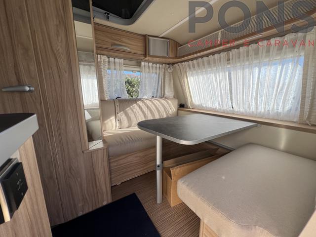 Aumento di peso a 1.500 kg - Cerchi in lega Eriba 5 stelle a doppio raggio - Tetto sollevabile maxi - Batteria dei servizi 95 Ah AGM, caricabatterie con booster integrato - Zanzariera a rullo porta, facile da usare grazie alla guida laterale - Portabici Thule Caravan Superb per due biciclette, carico max. 60 kg (adatto per E-Bike) - Piedini di stazionamento rinforzati (4 pezzi) - Ruota di supporto del timone con indicatore di carico del timone integrato - Serbatoio acque grigie 22 l su ruote (alloggiato nel gavone portabombole) - Prese elettriche presenti (2 x 230 V prese aggiuntive nella zona giorno e in cucina)