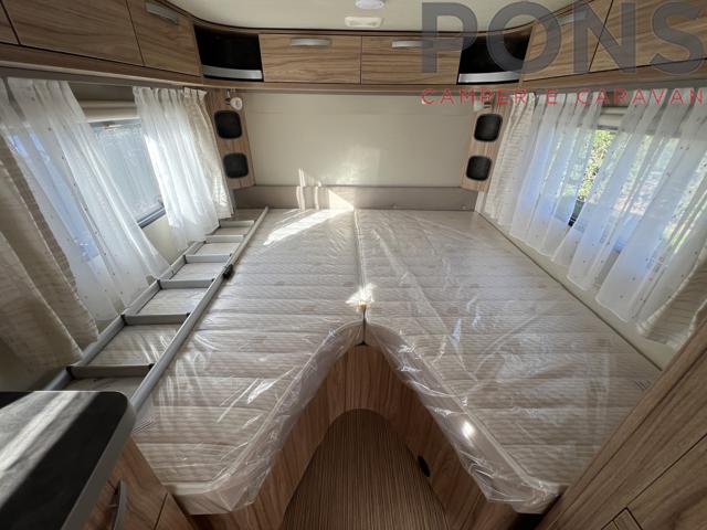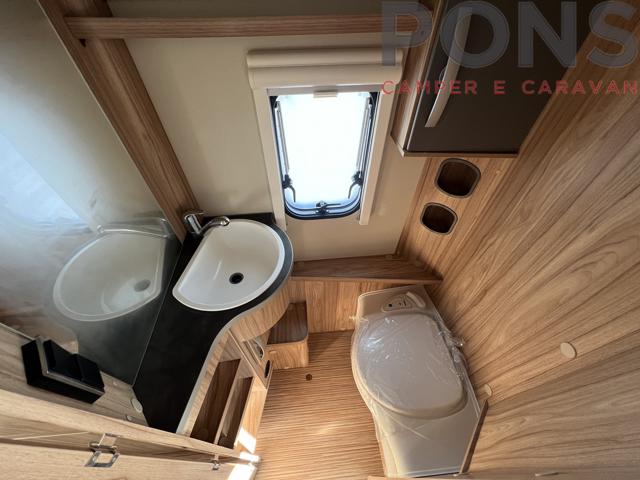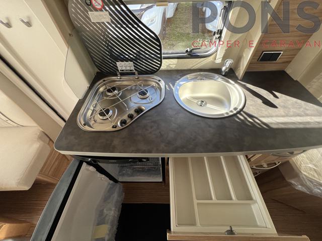Aumento di peso a 1.500 kg - Cerchi in lega Eriba 5 stelle a doppio raggio - Tetto sollevabile maxi - Batteria dei servizi 95 Ah AGM, caricabatterie con booster integrato - Zanzariera a rullo porta, facile da usare grazie alla guida laterale - Portabici Thule Caravan Superb per due biciclette, carico max. 60 kg (adatto per E-Bike) - Piedini di stazionamento rinforzati (4 pezzi) - Ruota di supporto del timone con indicatore di carico del timone integrato - Serbatoio acque grigie 22 l su ruote (alloggiato nel gavone portabombole) - Prese elettriche presenti (2 x 230 V prese aggiuntive nella zona giorno e in cucina)