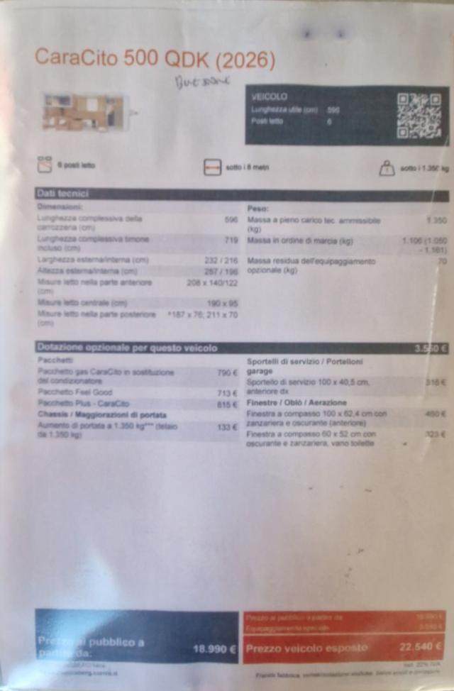 Caravan Weinsberg CARACITO 500 QDK 2026 FAMIGLIARE