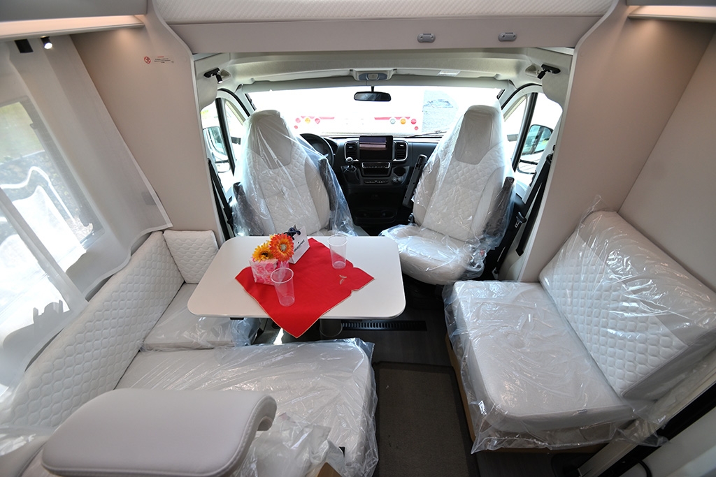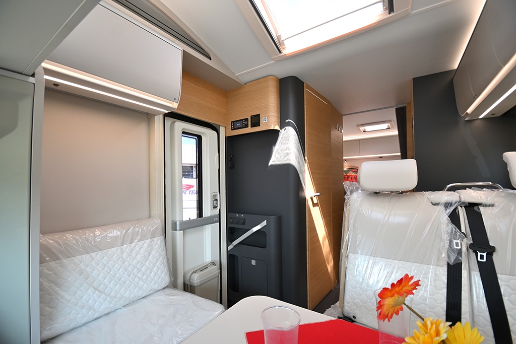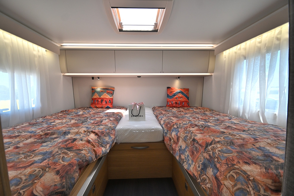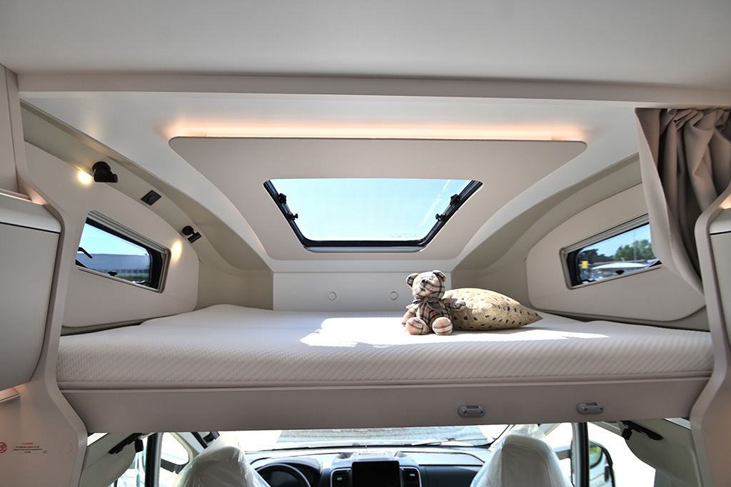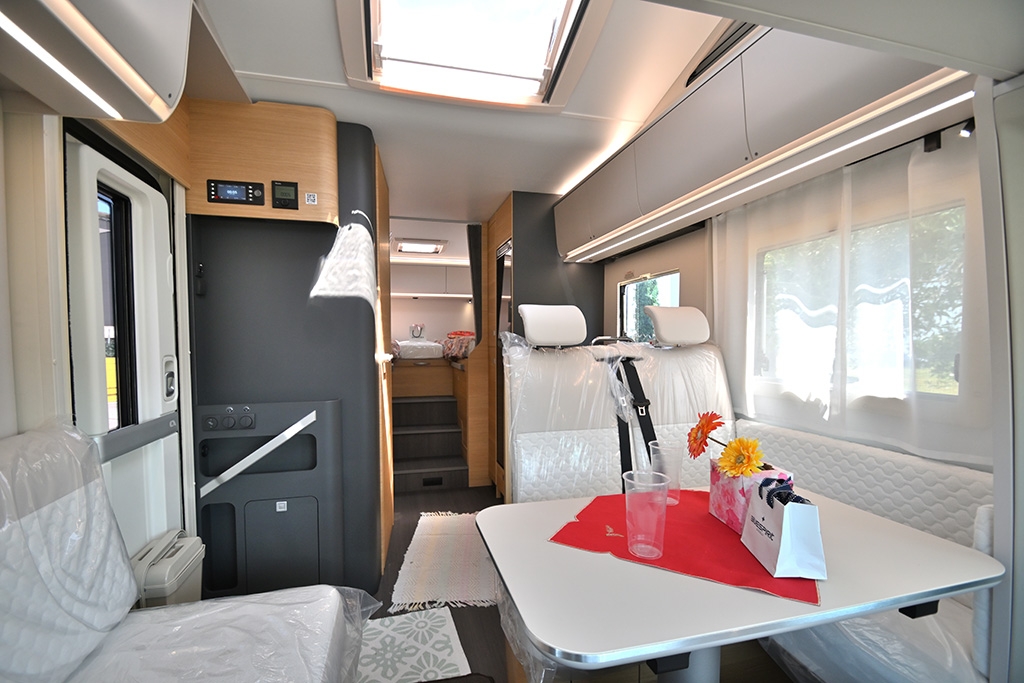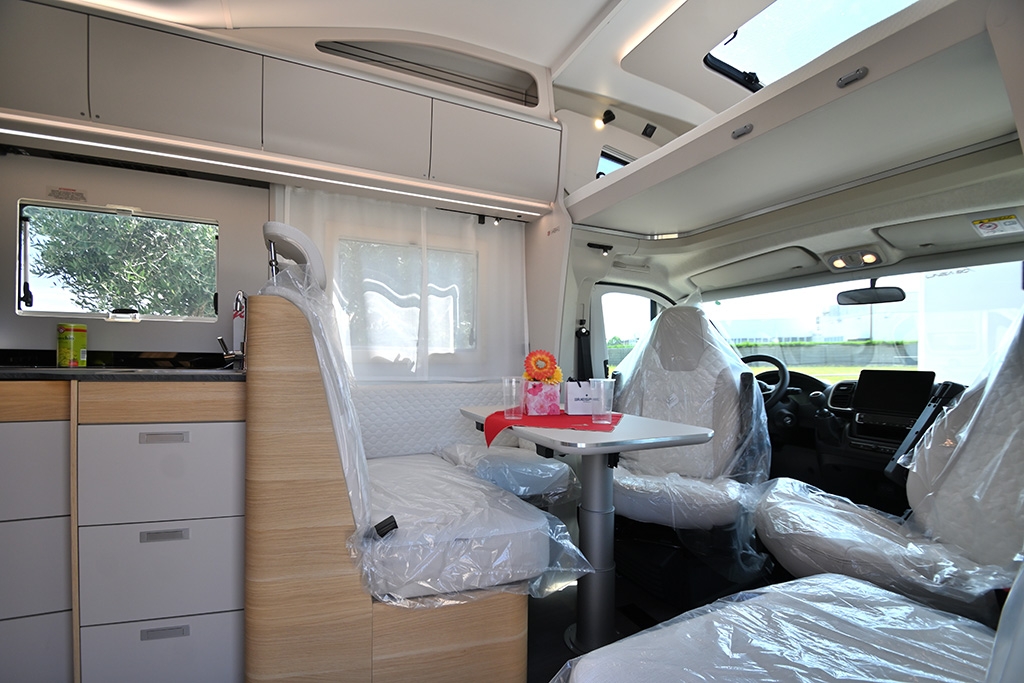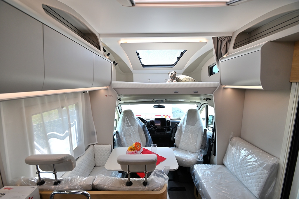 ESC, Hill Holder, Traction+, Hill Descent Control, Climatizzatore manuale in cabina, Airbag passeggero, Cruise Control, Sistema Start&Stop, Specchietti retrovisori regolabili elettricamente e riscaldabili, Volante e pomello del cambio rivestiti in pelle, Fendinebbia, Sensori di parcheggio posteriori, Cerchi in lega da 16, Sedili cabina rivestiti in coordinato con tappezzeria, Oscuranti plissettati in cabina, Porta cellula XL con finestra, zanzariera e chiusura centralizzata, Sky-Roof in mansarda, Serbatoio di recupero isolato e riscaldabile, Valvola elettrica scarico acque grigie, Regolatore di pressione gas Truma MonoControl CS, Portapacchi con scaletta, Sistema Isofix in dinette