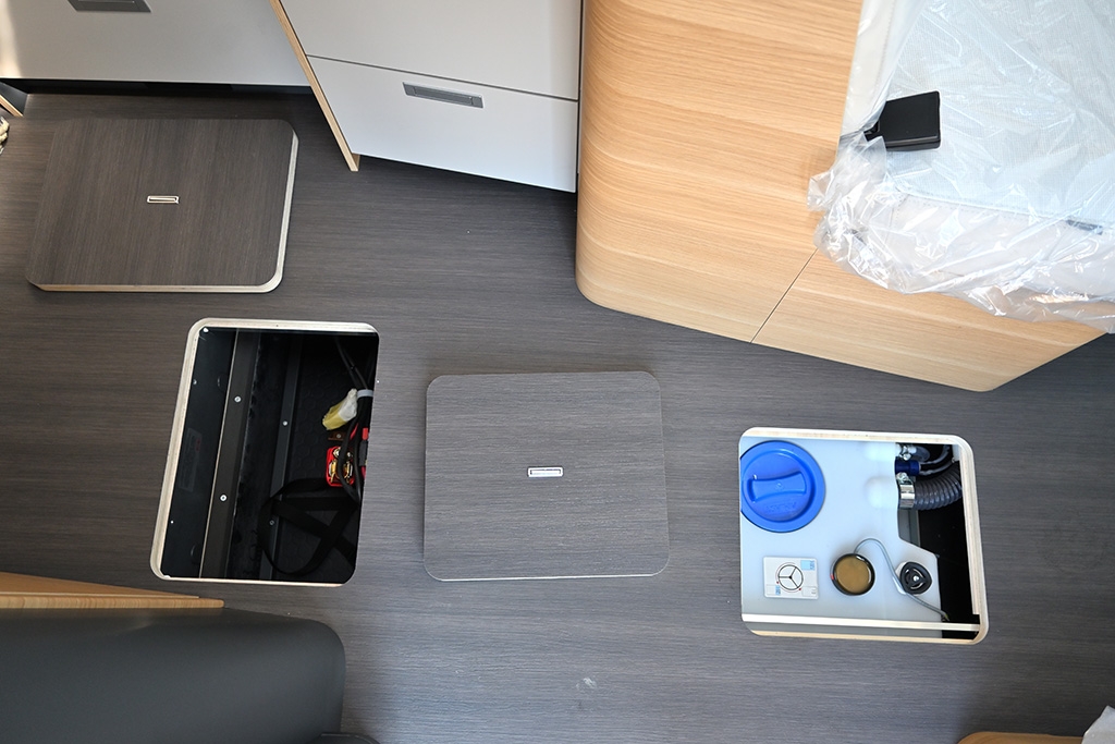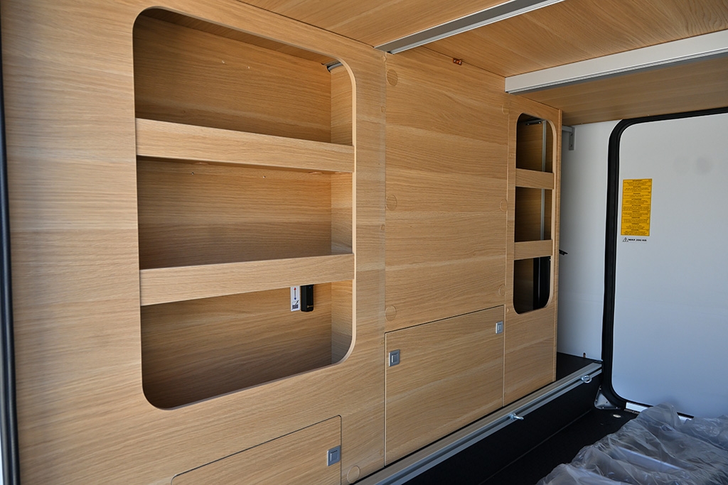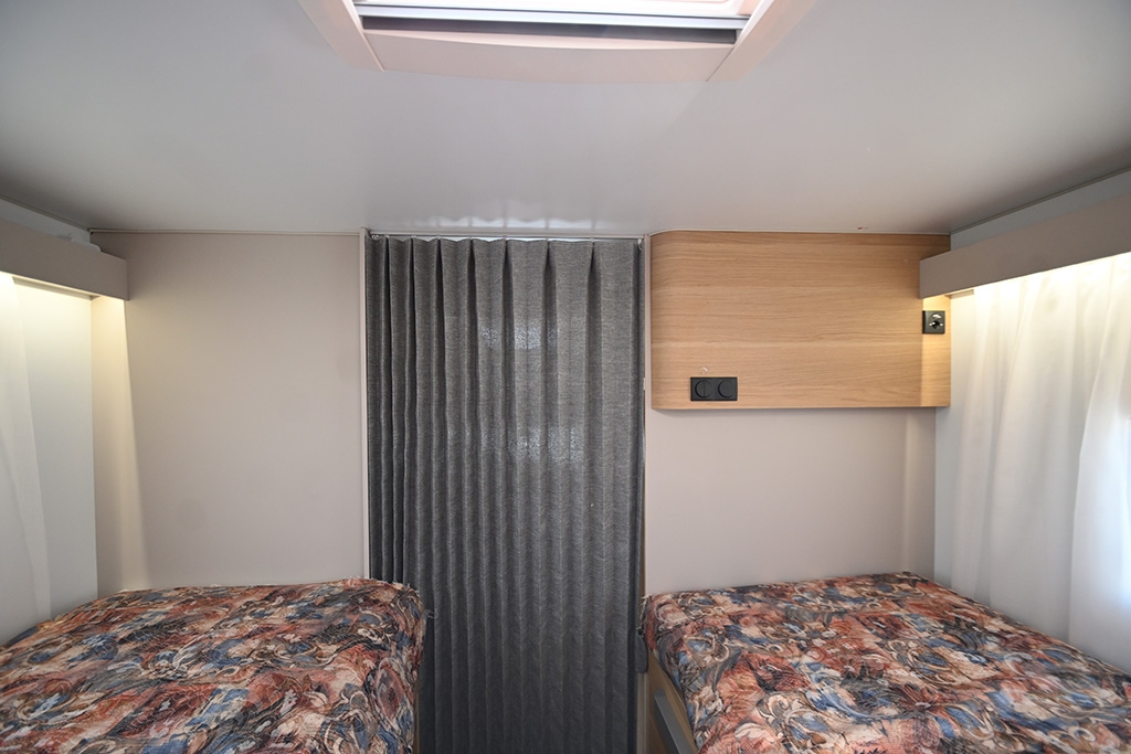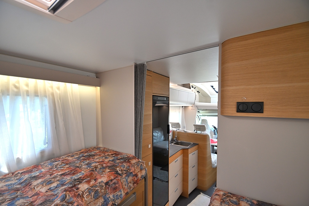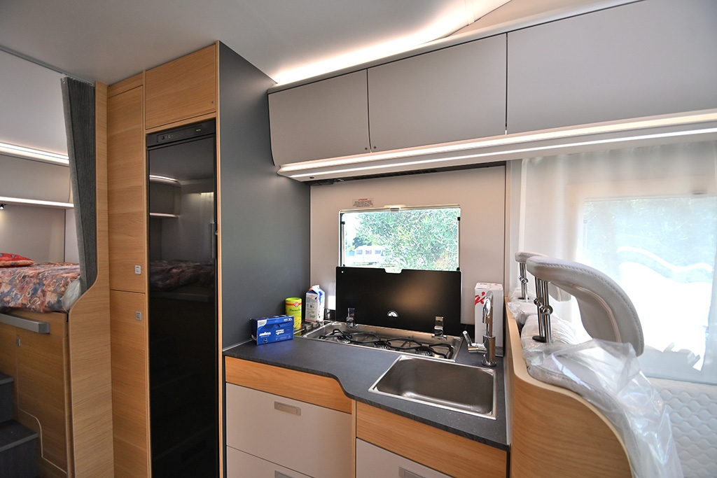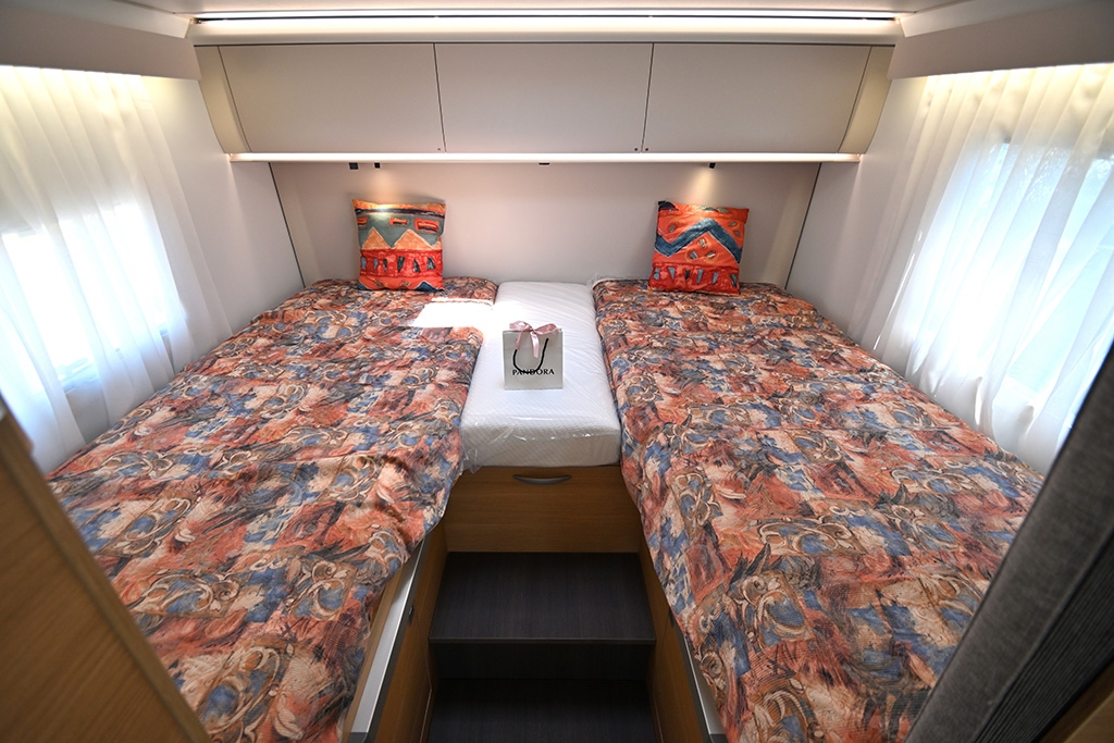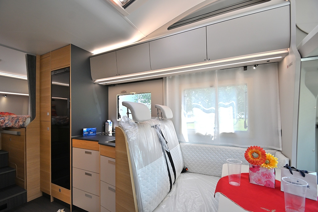 ESC, Hill Holder, Traction+, Hill Descent Control, Climatizzatore manuale in cabina, Airbag passeggero, Cruise Control, Sistema Start&Stop, Specchietti retrovisori regolabili elettricamente e riscaldabili, Volante e pomello del cambio rivestiti in pelle, Fendinebbia, Sensori di parcheggio posteriori, Cerchi in lega da 16, Sedili cabina rivestiti in coordinato con tappezzeria, Oscuranti plissettati in cabina, Porta cellula XL con finestra, zanzariera e chiusura centralizzata, Sky-Roof in mansarda, Serbatoio di recupero isolato e riscaldabile, Valvola elettrica scarico acque grigie, Regolatore di pressione gas Truma MonoControl CS, Portapacchi con scaletta, Sistema Isofix in dinette