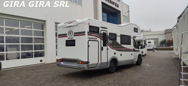 Mansardato di casa Elnagh con letti a castello trasversali in coda e doppia dinette anteriore su motore Fiat Ducato 2.2 140 cv. 7 posti omologati e 7 posti letto. Lungo 6,99 e largo 2,35. Il veicolo di serie offre: pneumatici 4 stagioni, comandi radio al volante, sedili cabina girevoli con braccioli, Traction+, ABS/ESP, Start&Stop, doppio airbag, Cruise Control, specchietti elettrici con sbrinatore, Fix&Go, finestre Seitz, presa USB zona notte, presa 220V nel gavone, porta cellula a 2 punti con finestra fissa e chiusura centralizzata, zanzariera scorrevole, frigorifero trivalente 137 Lt, riscaldamento Truma Combi 4 diesel + CpPlus, serbatoio acque grigie isolato + valvola di scarico resistente al gelo, gradino ingresso coibentato, attacchi isofix, staffa TV e coprisedili cabina. Per renderlo ancora più bello abbiamo aggiunto il Pack Expo (fari fendinebbia, paraurti anteriore in tinta con la carrozzeria, piastra paramotore nera, cerchi in lega 16', volante e cambio in pelle, TPMS, freno a mano elettrico, radio Pioneer 9' Bluetooth/Apple Car Play/Android Auto, retrocamera, pannello solare 200W con regolatore MPPT, oscuranti cabina plissettati)..