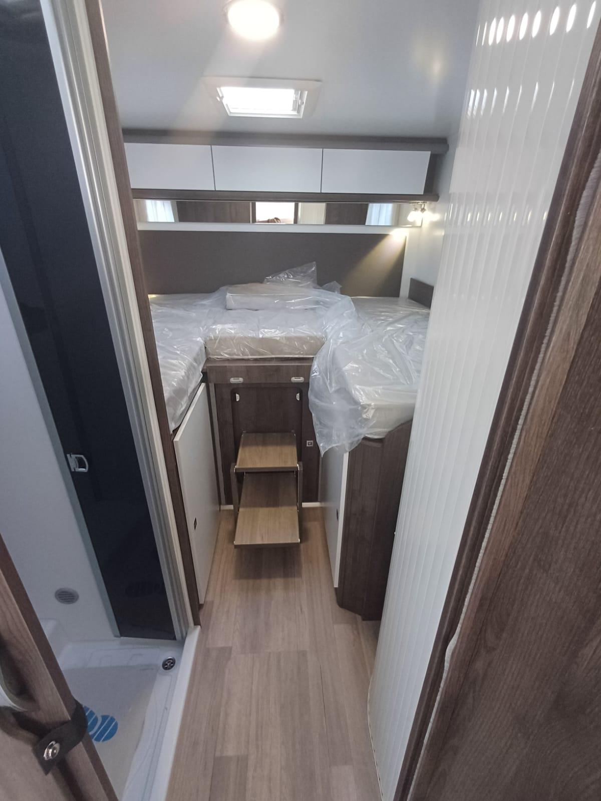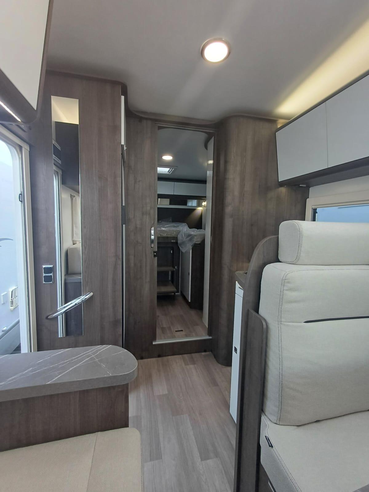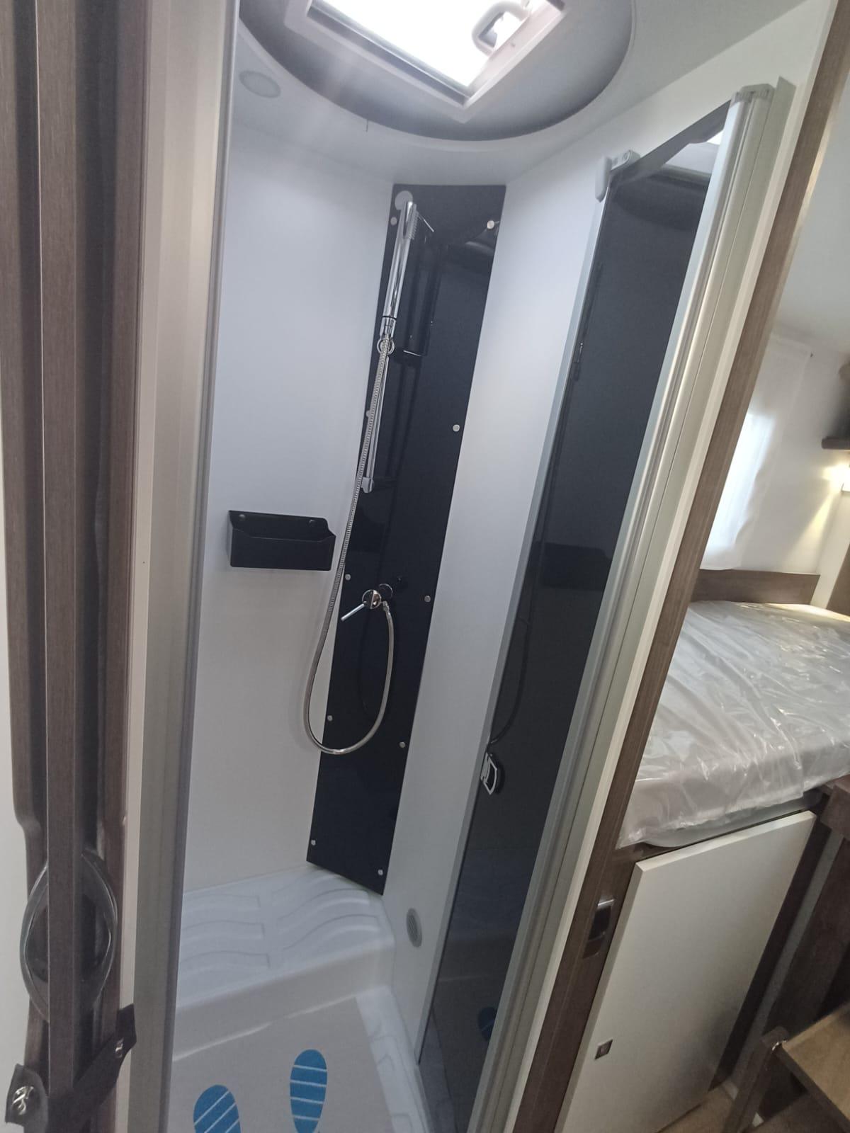 telecamera per retromarcia, pannello solare da 150w, luce esterna a led, oscuranti plistellati in cabina