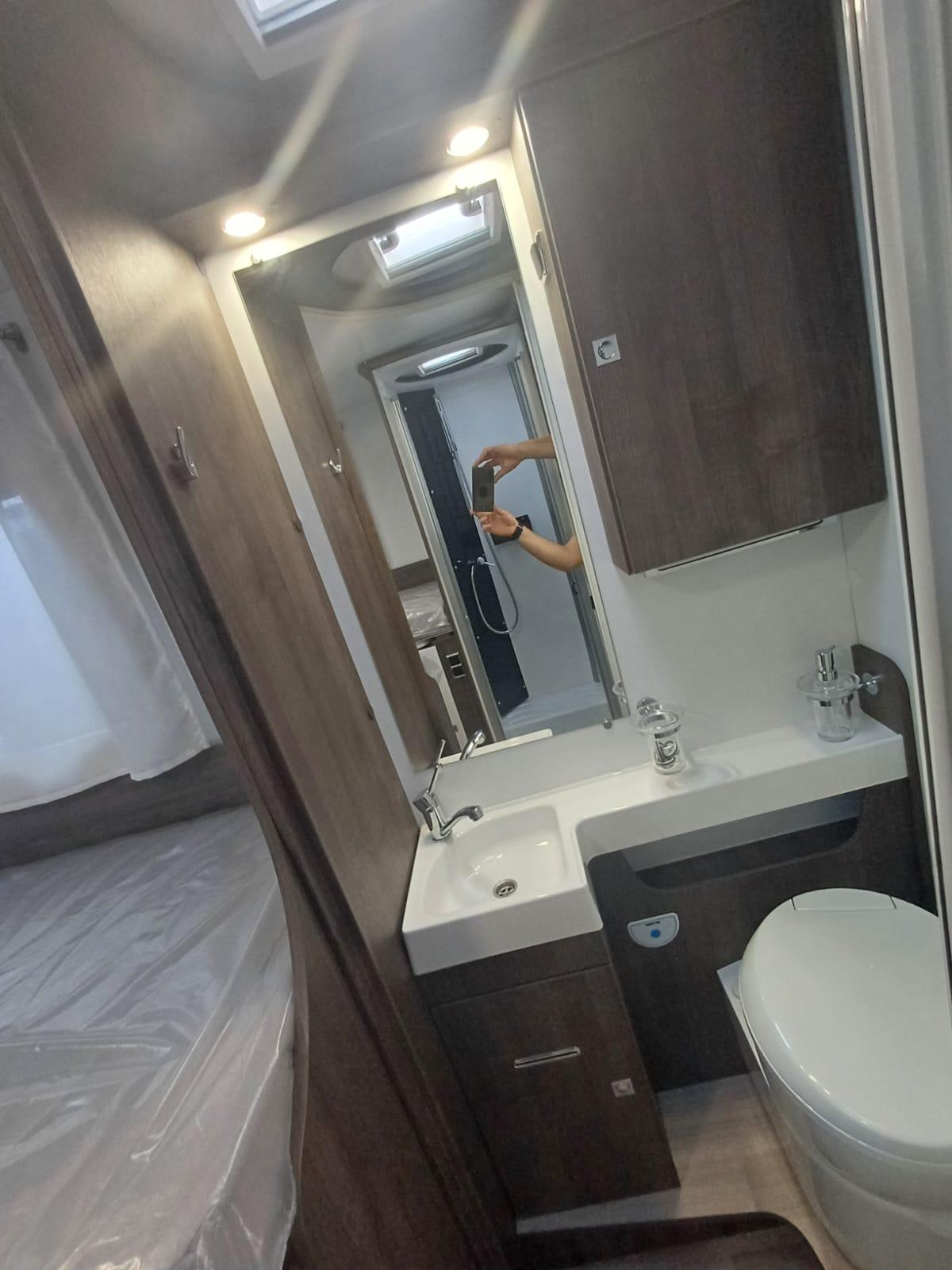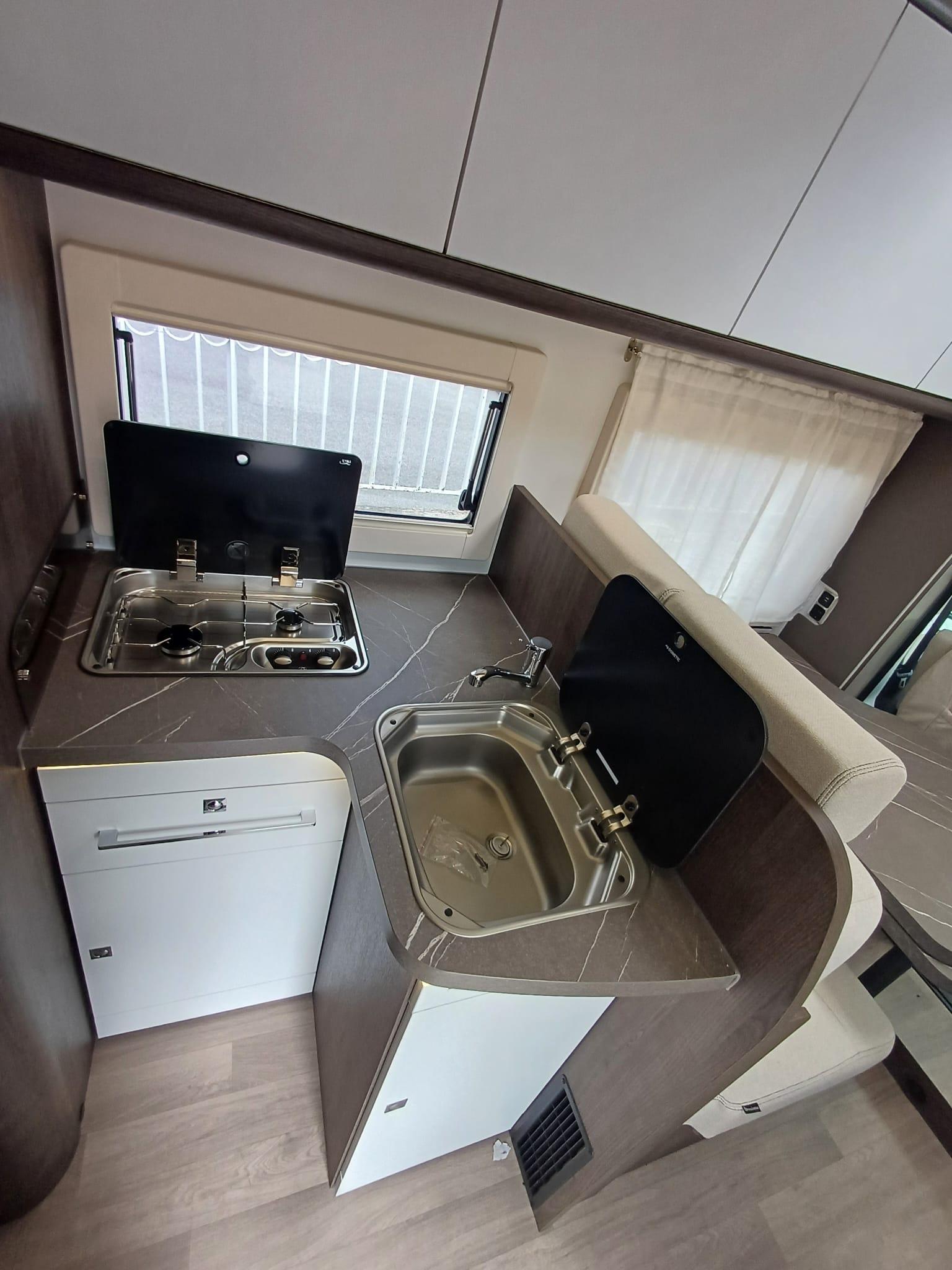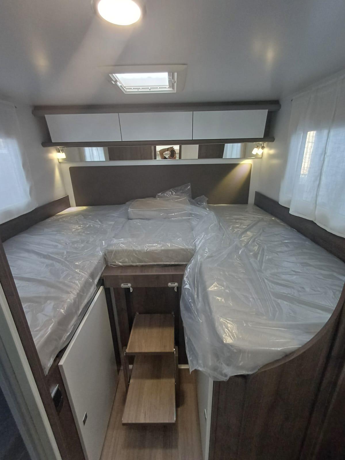 telecamera per retromarcia, pannello solare da 150w, luce esterna a led, oscuranti plistellati in cabina