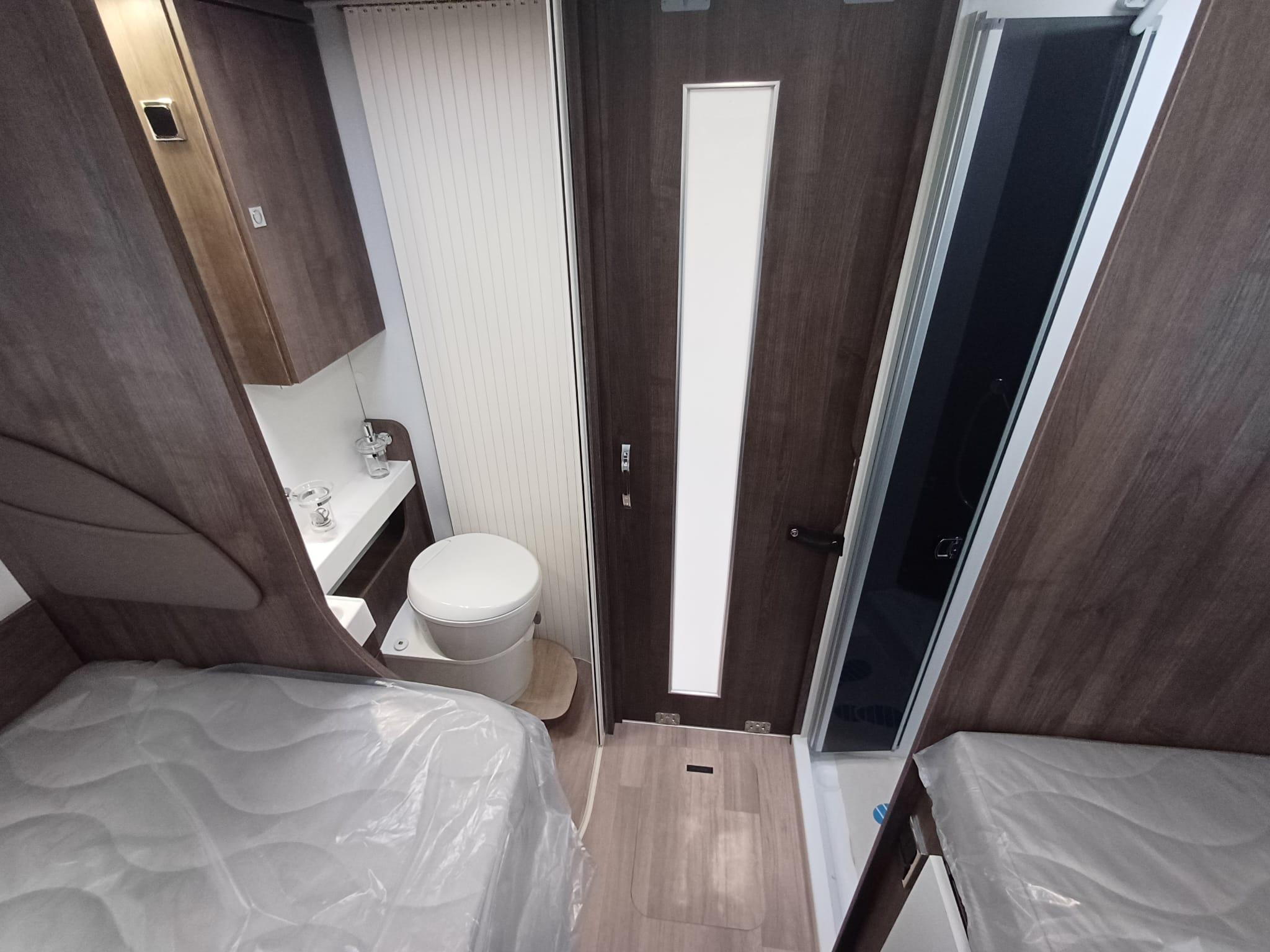 sedili girevoli cabima, porta ingresso con doppia chiusura e secchietto