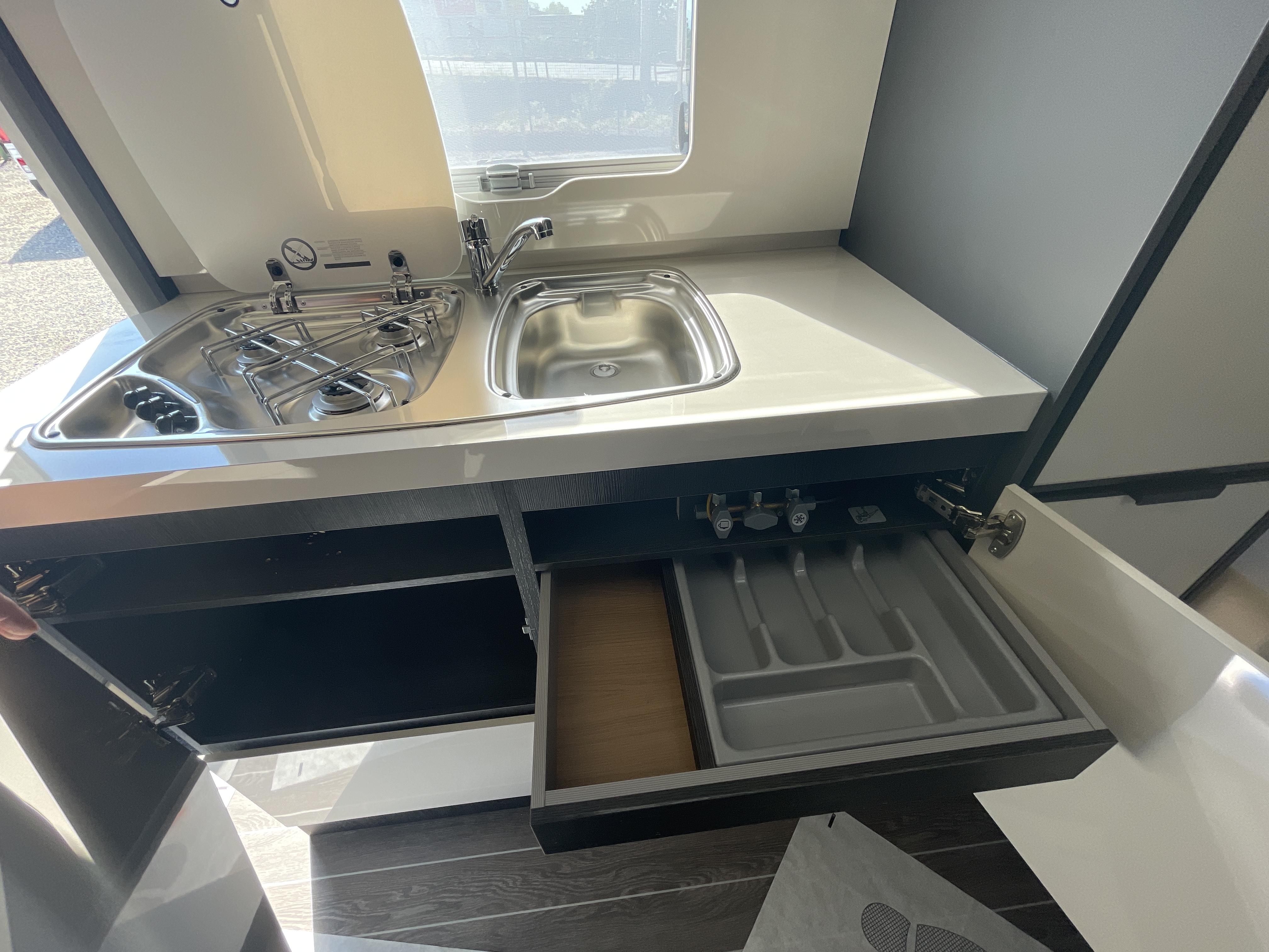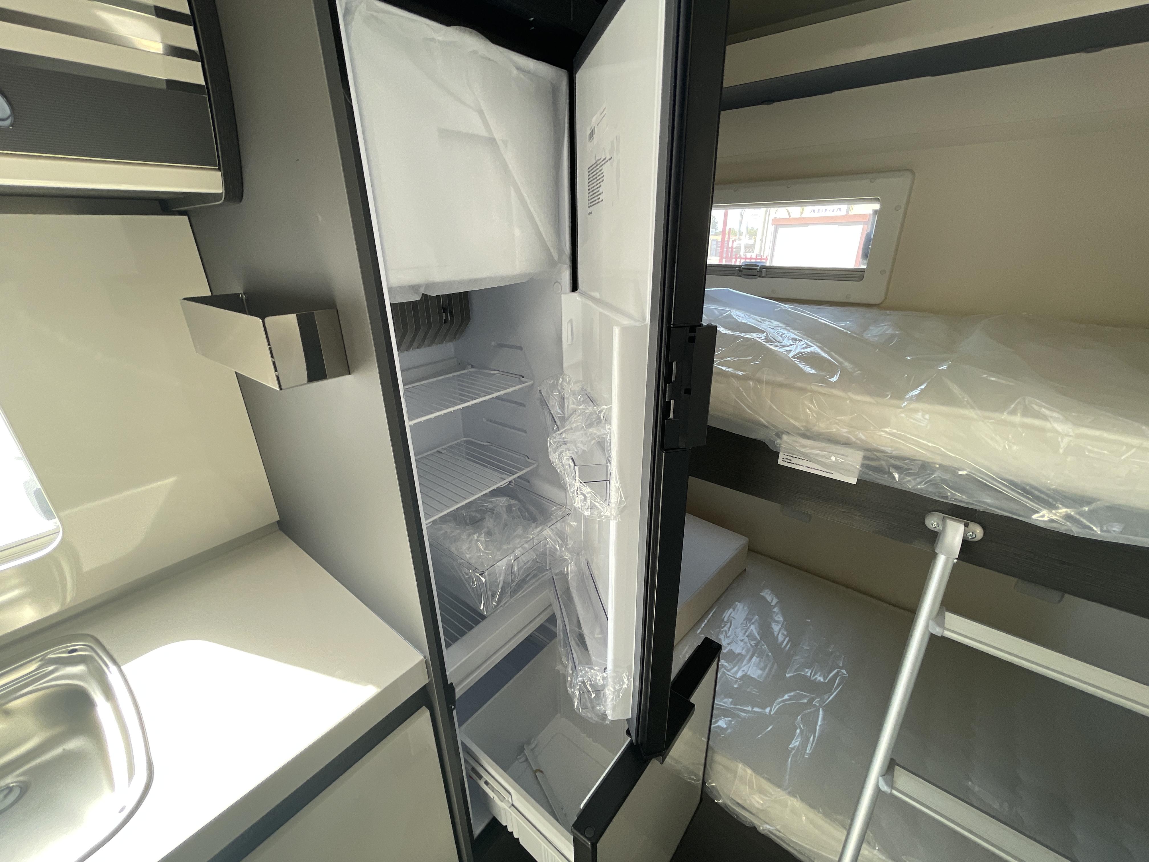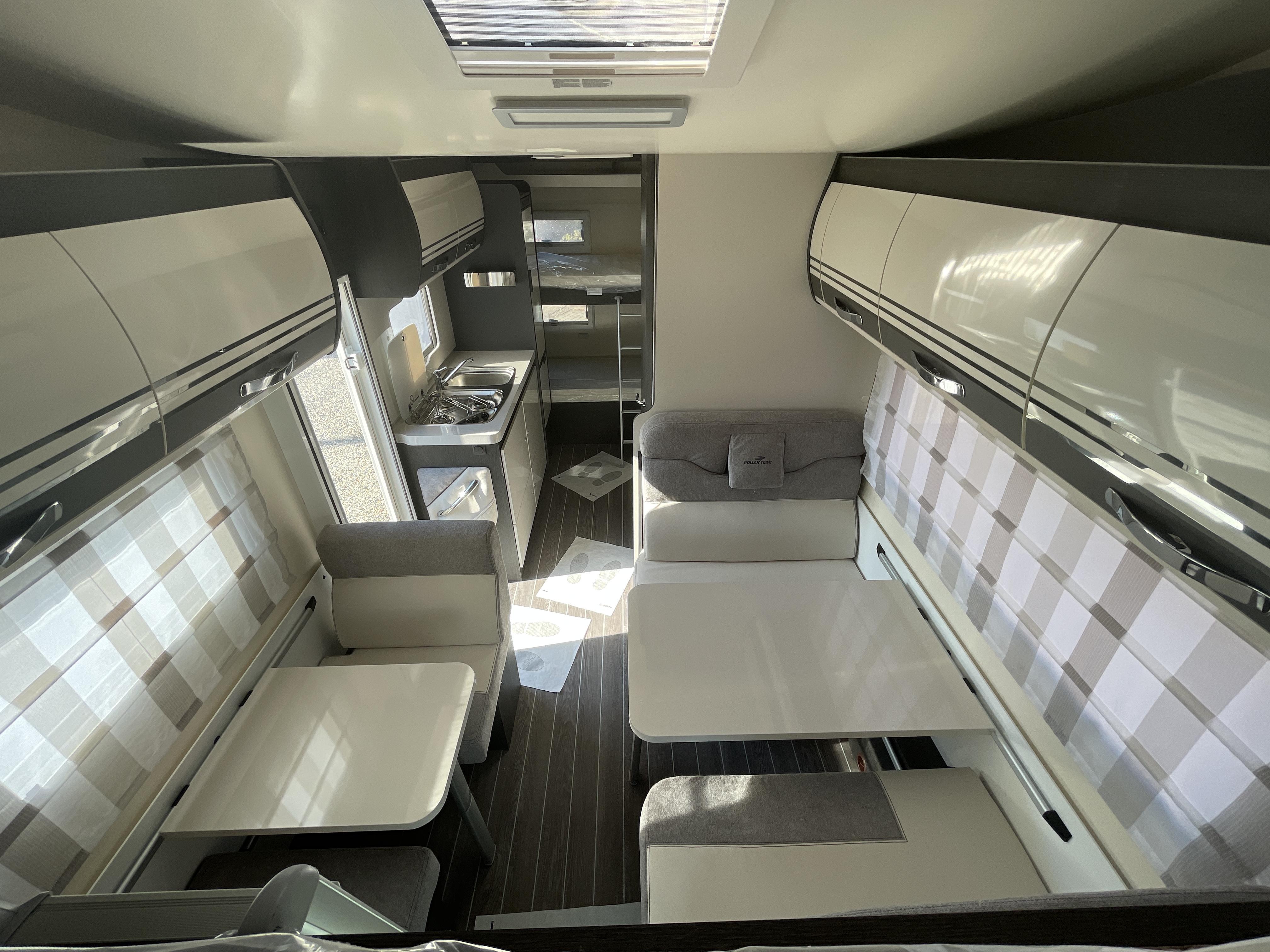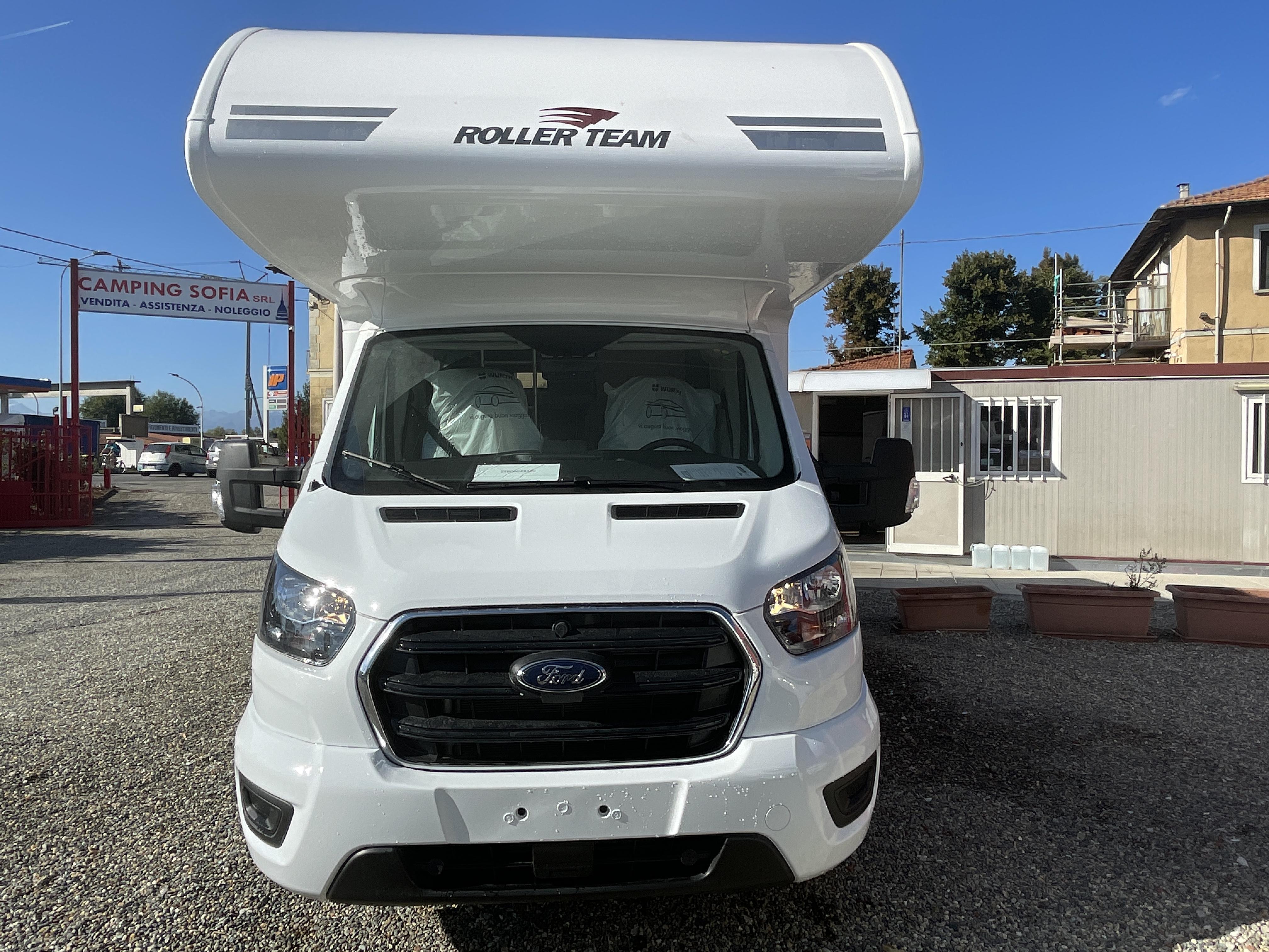 Roller Team Kronos 277 M, nuovo, Ford Transit 165 cavalli, cambio automatico ,disposto con letti a castello in coda su garage a volume variabile, doppia dinette, ampio guardaroba, bagno compatto con box doccia, cucina in linea con fornello a 3 fuochi, frigo trivalente automatico da 135 l, letto matrimoniale in mansarda spaziosa e luminosa, riscaldamento a gas Combi 4000 W( di serie )