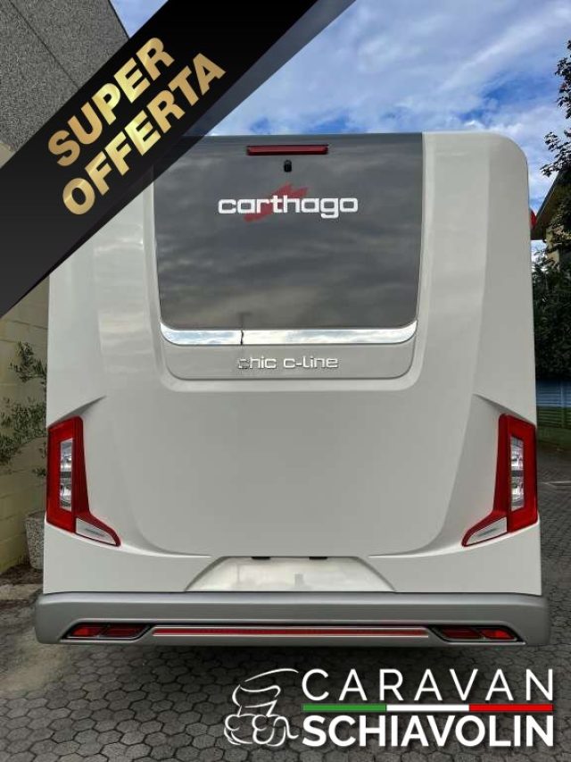 ORA IN OFFERTA! PREZZO TOTALE COMPRESI GLI ACCESSORI EXTRA INDICATI A SOLI ? 139.900,00 ANZICHE', ? 166.745,00.Cambio automatico 9-G Tronic ? 4.095,00Cerchi in alluminio da 16' ? 915,00Aumento portata a 4.500 Kg ? 315,00Toilette Thetford C 260 con vaso in ceramica ? 240,00Riscaldamento ad acqua calda ALDE ? 3.490,005° posto omologato 1.060,00Moquette zona giorno ? 380,00Moquette cabina guida ? 195,00Tappezzeria similpelle/stoffa 'DAVOS' ? 435,00Corredo per letto posteriore (cuscini decorativi, copriletto, set di lenzuola ad angoli con elastici) ? 425,00PACCHETTO SUPER ? 5.690,00 (Climatizzatore automatico cabina di guida, Tempomat - Cruise Control, Booster di ricarica, Sedili comfort in cabina con regolazione dell?altezza e dell?inclinazione, Abbellimento del cruscotto con griglie di ventilazione cromate, Piedini di stazionamento posteriori a manovella per stabilizzare il veicolo da fermo, Specchietti in stile bus ?Carthago best view? con illuminazione dell?ingresso, regolabili elettricamente e riscaldabili, Porta della cellula XL ?premium two 2.0? (L: 63 cm) con doppia chiusura, finestra e zanzariera, Chiusura centralizzata porta cabina e porta cellula con funzione ?coming home?, Upgrade garage per scooter con feltro agugliato, reti portabagagli, sistema di fissaggio, Areazione toilette SOG tramite camino sul tetto, Truma DuoControl CS, Mobile bar di design con portabicchieri e set bicchieri sopra la cucina, Presa USB nel pensile sopra il letto posteriore, Predisposizione impianto fotovoltaico, Predisposizione impianto SAT, Radio/Moniceiver Pioneer 6,8' con DAB+, pred. radio antenna sul tetto, altoparlanti (4 x), Sistema di retrocamera con lente singola e monitor a colori da 7' su un lato del cruscotto)PACCHETTO INFOTAINMENT FIAT ? 2.865,00 (Strumento combinato digitale con display a colori nel cruscotto, Volante e pomello del cambio in pelle con tasti multifunzione, Sistema multimediale Fiat 10,1' con navigatore, funzione di calcolo itinerari per camper e DAB+)PACCHETTO TV DA 32' ? 1.910,00 (Sistema di estrazione dello schermo TV da 32' ?Quick up? con set di allacciamento, orientabile, Schermo piatto LED 32')PACCHETTO TV ZONA NOTTE DA 24' ? 1.440,00 (Supporto TV parte posteriore, Schermo piatto LED 24' posteriore) CAMPER MOTORHOME CARTHAGO DI CLASSE PREMIUM CON LETTO CENTRALE NAUTICO, BAGNO E DOCCIA SEPARATI, 5 POSTI OMOLOGATI IN VIAGGIO, E RISCALDAMENTO ALDE AD ACQUA. VEICOLO DI ECCEZIONALE QUALITÀ,, COIBENTAZIONE E SPAZI AMPI.NOVITA', IN PRONTA CONSEGNAIN OFFERTA ,.