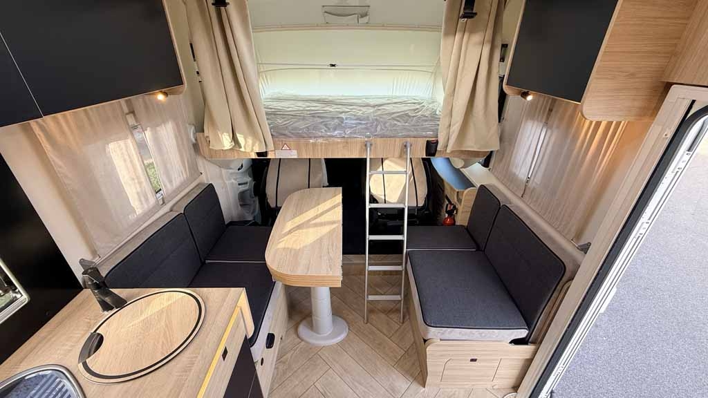 Un ulteriore posto letto si trova sopra la cabina guida, perfetto per ottimizzare lo spazio senza rinunciare alla vivibilità della dinette.