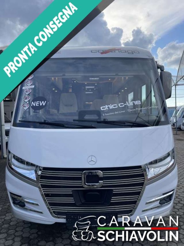 AL-KO Air Premium X2, sospensioni pneumatiche sull?asse posteriore incl. modulo PSM ? 9.835,00Maggiorazione del peso a 5.500 kg ? 595,00Gradino di accesso elettrico per porta cabina ? 595,00Chiusura centralizzata per sportelli esterni e del garage ? 740,00Pacchetto prese con prese aggiuntive (3 x 230 V, 2 x USB) ? 505,00Doccia esterna calda/fredda nel garage ? 360,00Frigorifero combinato Tec-Tower da 153 l con forno a gas ? 905,00Pavimento in alluminio goffrato per garage ? 185,00Scambiatore di calore Alde (utilizzo del calore del motore) ? 1.210,00Stile 'CORTINA' ? 710,00Tappezzeria 'PELLE PEARL' ? 3.775,00Zone notte e set decorativo: cuscini decorativi, copriletto, set lenzuola con angoli ? 425,00PACCHETTO SUPER ? 14.365,00 (Climatizzatore automatico MB THERMOTRONIC, Tempomat - Cruise Control, Booster di ricarica, Assale anteriore con portata maggiorata, Volante in pelle con tasti multifunzione (con cambio con pomello del cambio in pelle), Strumento combinato con display a colori, Sensore pioggia, Freno di stazionamento elettrico, Sedili in cabina con regolazione dell?altezza e dell?inclinazione (avanti/indietro), Piedini di stazionamento posteriori a manovella per stabilizzare il veicolo da fermo, Sistema multimediale MBUX 10,2' incl. navigatore e DAB+, Sistema di riconoscimento segnaletica stradale, Specchietti in stile bus ?Carthago best view? con illuminazione di accesso, regolabili e riscaldabili elettricamente, Porta cellula XL 'premium two 2.0' (L. 63 cm) con dopppia chiusura finestra e zanzariera, Chiusura centralizzata porte cabina e cellula con funzione 'coming home', Upgrade garage per scooter con feltro agugliato, reti portabagagli, sistema di ancoraggio, Aerazione toilette SOG tramite camino sul tetto, Truma DuoControl CS, Mobile bar di design con portabicchieri e set bicchieri sopra la cucina, Presa USB nel pensile sopra il letto posteriore, Predisposizione impianto fotovoltaico, Predisposizione impianto SAT, Predisposizione retrocamera (lente singola), Sistema di retrocamera con lente singola, con monitor a colori da 7' su un lato del cruscotto)Sovrapprezzo retrocamera doppia lente ? 710,00PACCHETTO TELAIO PLUS MERCEDES DA ? 5.755,00 (Variante motore 170 CV / 125 kW, Euro VI E, Cerchi in lega da 16 pollici (neri) con pneumatici all season, Climatizzatore automatico THERMOTRONIC)PACCHETTO ASSISTENZA ALLA GUIDA MERCEDES ? 845,00 (Sistema di assistenza attivo alla regolazione della distanza DISTRONIC, Assistente attivo di mantenimento corsia, Sistema di controllo pressione pneumatici)PACCHETTO TV ZONA NOTTE ? 1.685,00 (Armadio TV nella zona notte con speciale sistema di estrazione TV, Smart TV a LED 24' nella zona notte)PACCHETTO TV ZONA GIORNO DA 40' ? 2.350,00 (Sistema di estrazione elettrico per Smart TV a LED, Smart TV a LED 40' )PACCHETTO CUCINA CAFFE', ? 2.075,00 (Inverter da 12 V a 230 V, 2.000 watt, circuito di priorità, Macchina da caffè a capsule con kit di collegamento e sistema di estrazione) NOVITA', CARTHAGO C LINE DOPPIO ASSE CON MOTORE MERCEDES E CAMBIO AUTOMATICO, TELAIO ALKO CON DOPPIO PAVIMENTO PASSANTE, RISCALDAMENTO AD ACQUA ALDE E BAGNO XL CON CAMERA DI SEPARAZIONE.NOVITA', 2026 ,IN PRONTA CONSEGNA ,.