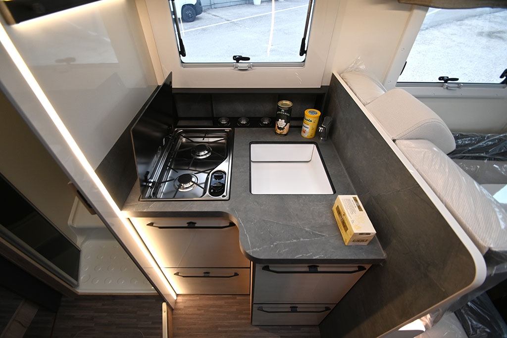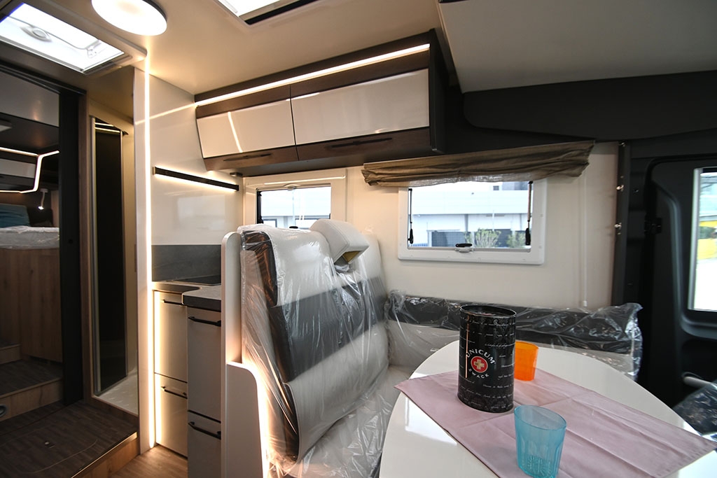 ESP, Traction+, Hill Holder, Hill Descent Control, Climatizzatore manuale in cabina, Cruise Control, Airbag passeggero, Specchietti retrovisori elettrici e riscaldabili, Fendinebbia, Cerchi in lega da 16, Freno di stazionamento elettrico, Sensori di pressione degli pneumatici, Volante e pomello del cambio rivestiti in pelle, Stazione multimediale con schermo da 9 e funzione Apple Car Play o Android Auto, Pannello solare 200 W, Oscuranti plissettati in cabina, Fodere sedili cabina in coordinato con tappezzeria, Porta cellula XL con finestra, zanzariera e chiusura centralizzata, Supporto TV, Winter Pack, Fanali anteriori Full-LED, Isofix in dinette