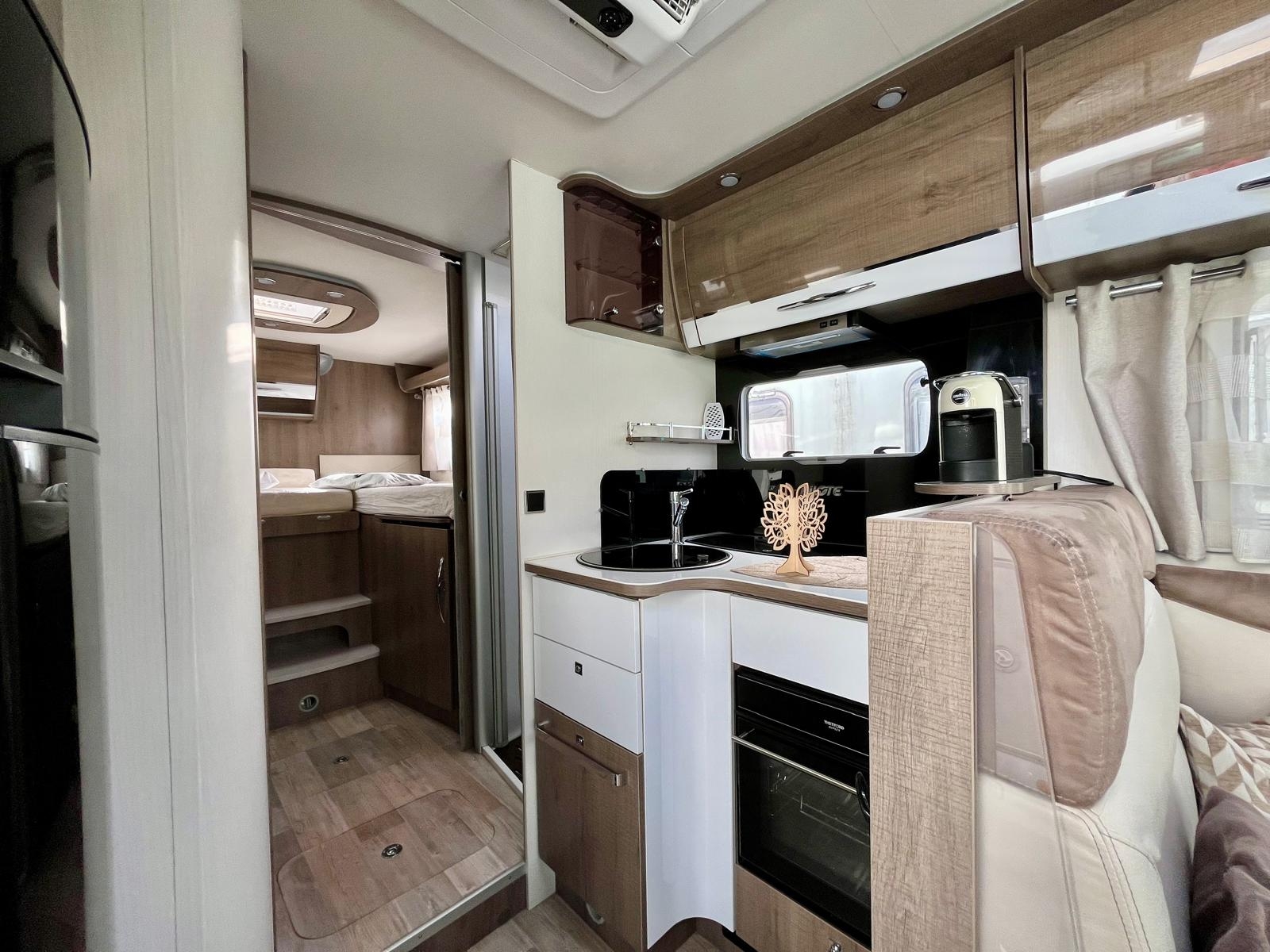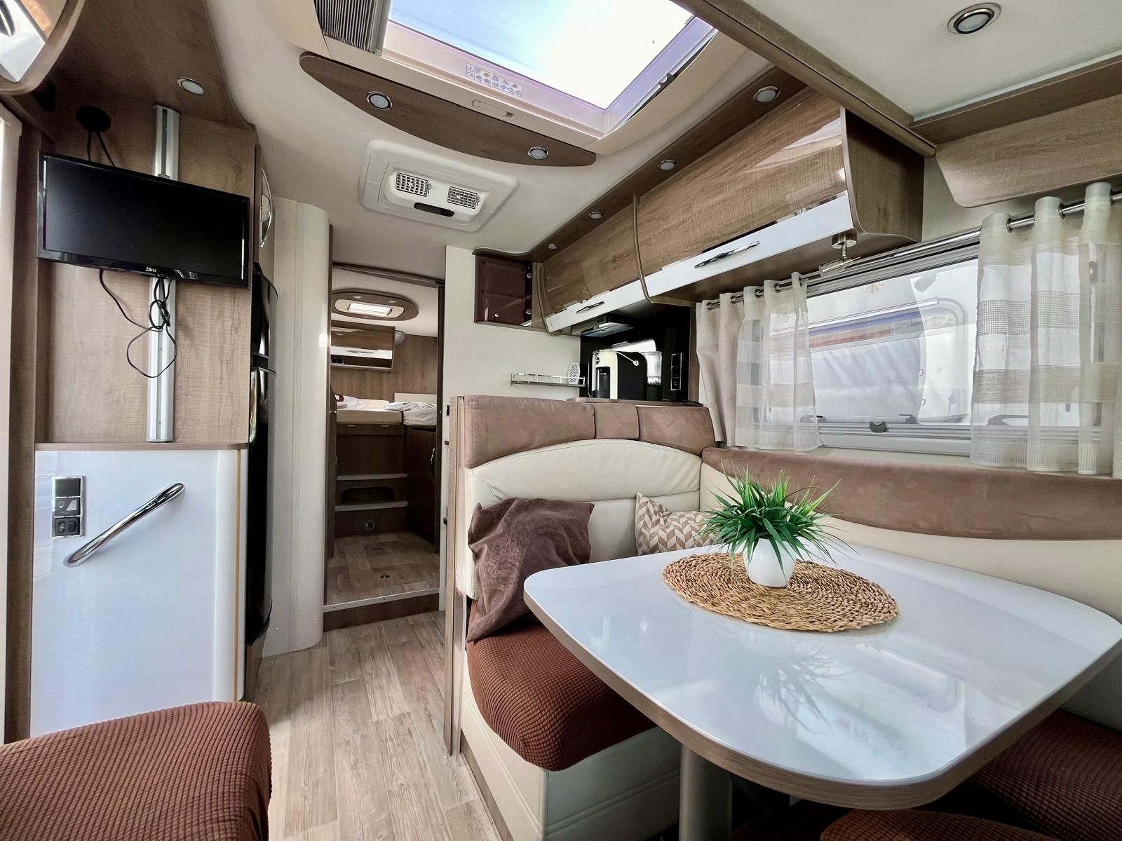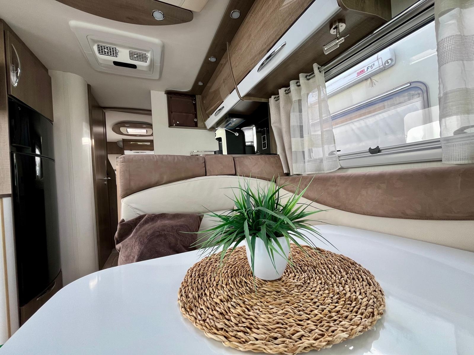 Accessori: tendalino, gancio traino, pannello solare, autoradio, autoradio, parabola, serbatoio, telecamera posteriore, viesa, tv impianto doppio, decoder, macchina caffè, forno, cappa, doppia batteria AGM, sospensioni con compressore, scarico acqua grigie elettrico + telecamera, gruppo elettrogeno tec29, letti posteriori reclinabili, fari led