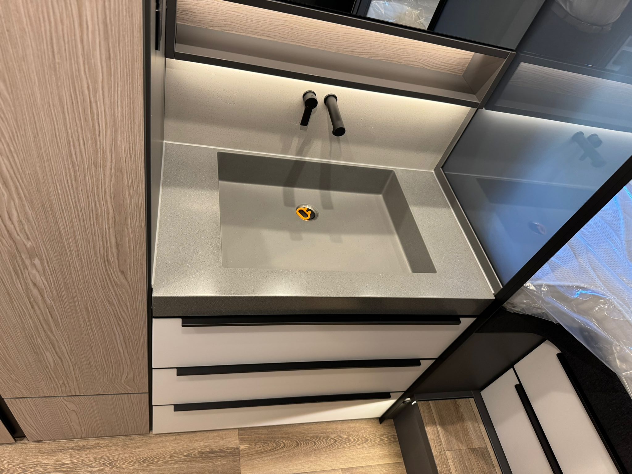 Cristallo divisorio tra lavandino e letti post. oscurabile elettricamente