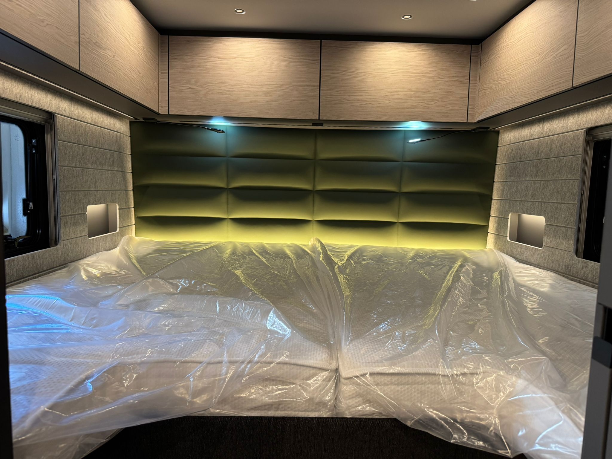 Rivestimento della parete posteriore in camera da letto in “verde Oliva”