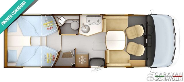 Cambio Automatico ? 3.050,00Tpms ? 250,00Traction plus con Hill Descent Control ? 200,00Freno di stazionamento elettrico ? 610,00Cassettone portaoggetti esterni scorrevole ? 640,00Kit protezione materasso ? 270,00PACK SMART ? 1.020,00 ( Cerchi in lega leggera 16' (+ 4,5 cm di altezza del veicolo), Volante e pomello del cambio comfort, Rivestimento grigio alluminio su bocchetta di aerazione, Comandi radio al volante (solo integrali))PACK LOUNGE ? 1.010,00 (Climatizzazione cabina automatica, Caricabatterie smartphone a induzione, Dashboard digitale)PACK SELECT in offerta a soli ? 2.590,00 anzichè ? 5.620,00 (Telecamera di retromarcia con monitor di controllo integrato al cruscotto, Stazione multimediale DAB PIONEER® con schermo 6,8' e funzioni APPLE CARPLAY / ANDROID AUTO, Traction+ con Hill Descent Control (assistenza al mantenimento della velocità costante in discesa), Molla a balestra in materiale composito, Pneumatici all season 3PMSF, Tendina parabrezza isotermica scorrevole, a doppio plissé: alto/basso (parasole), Porta conducente con serratura a 2 punti, Porta cellula con serratura a 2 punti con finestra fissa e pattumiera integrata, Zanzariera porta cellula, Inverter automatico, permette di viaggiare con il riscaldamento a gas acceso (sistema anticollisione), 2a chiave telecomandata (PLIP), Serbatoio acque grigie riscaldato)PUNTI DI FORZA = Grande salotto aperto con divanetti contrapposti e braccioli, Letti gemelli trasformabili in letto matrimoniale trasversale, Guardaroba ai piedi dei letti facilmente accessibili, Portaoggetti nella parte centrale della camera, Grande frigorifero AES 156 L, Bagno privato, Doccia indipendente, Grande gavone garage da 126 cm di altezza, Vano portaoggetti interno, Porta cellula XL: 600 mm ,CAMPER MOTORHOME IN VETRORESINA , CON LETTI GEMELLI IN CODA SOPRA GRANDE GARAGE, BAGNO E DOCCIA SEPARATI, ,CAMBIO AUTOMATICO. ,NOVITA', 2026 , ,IN PRONTA CONSEGNA ,.
