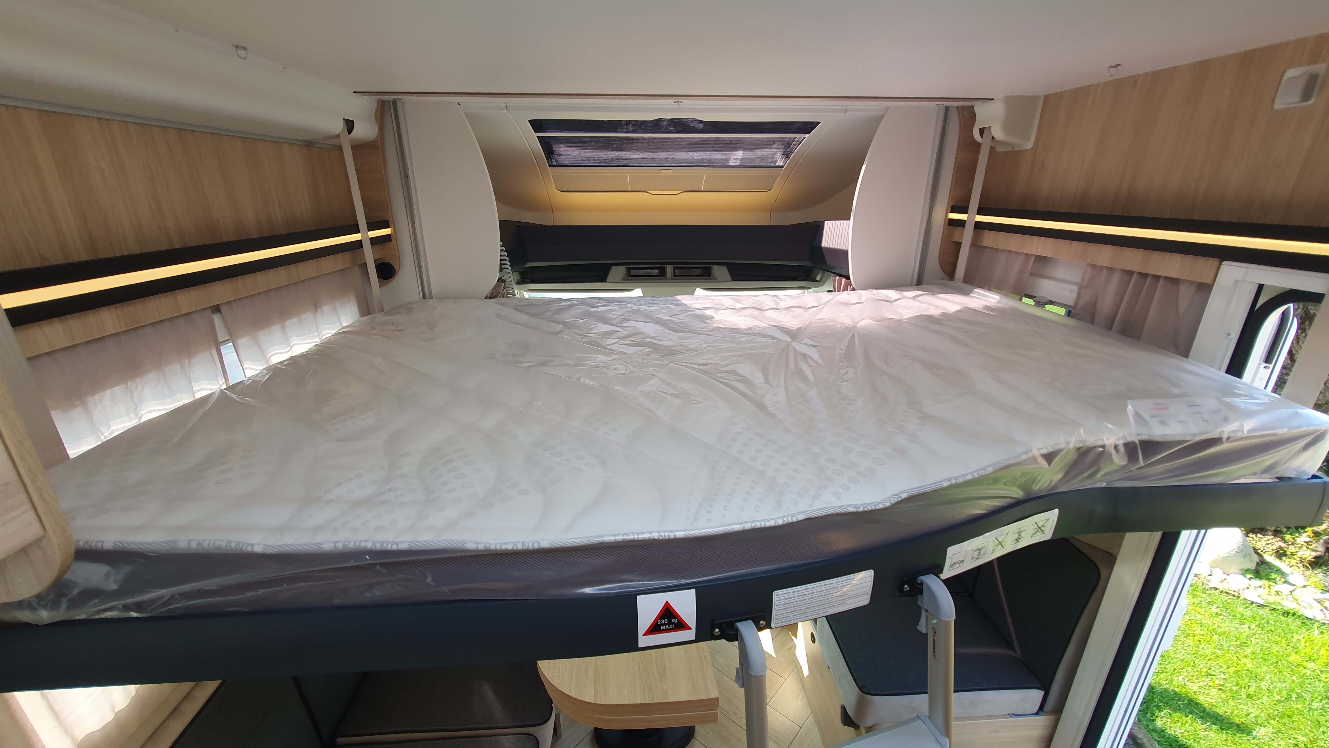 Omologato per 4 persone, con sistema Isofix, offre 4 posti letto: un matrimoniale basculante sopra la dinette e un secondo letto matrimoniale ricavabile dalla trasformazione della stessa dinette. Spazio e comfort perfettamente bilanciati per ogni esigenza di viaggio.