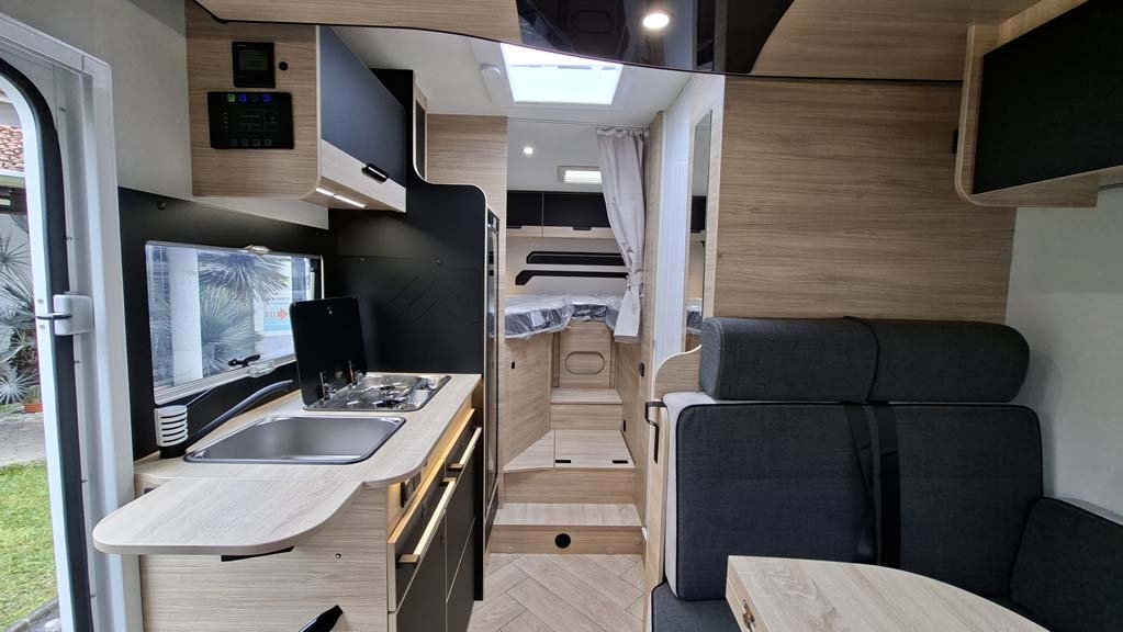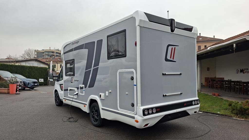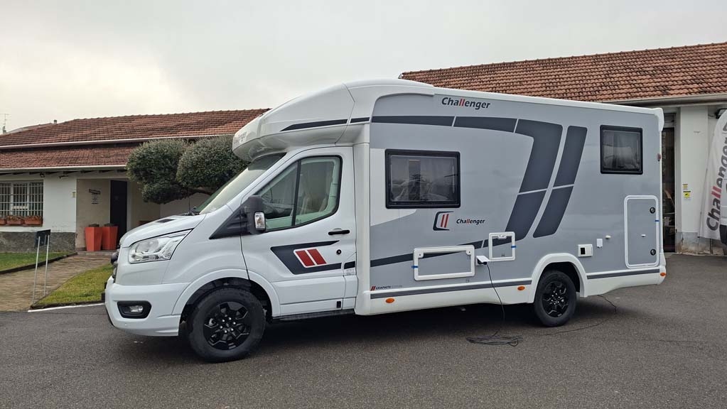Il Challenger 287 Graphite Edition racchiude in meno di 7 metri tutto ciò che cerchi in un camper moderno e funzionale. Questo semintegrale su base Ford da 165 CV, offre 5 posti omologati e 5 posti letto, con una configurazione intelligente: letti gemelli in coda sopra un ampio garage e un pratico letto basculante nella zona anteriore. La Dinette a L garantisce uno spazio conviviale per rilassarsi, mentre il bagno con doccia a parete varia offre un comfort simile a quello di casa. La cucina a gas è dotata di un grande frigorifero a compressore da 145 litri, perfetto per viaggi lunghi. Il riscaldamento e l’acqua calda sono forniti dal sistema Truma Combi a gasolio, assicurando comfort in ogni stagione. Tra le dotazioni incluse troviamo una veranda da 4 metri, un pannello solare da 140 watt, un'autoradio 2 Din con DAB+, Android Auto/Apple Carplay, e una retrocamera con telecamera, per rendere ogni viaggio sicuro e confortevole.