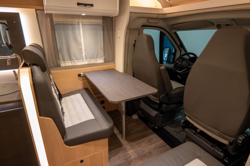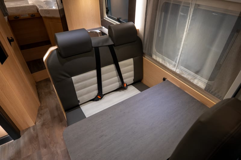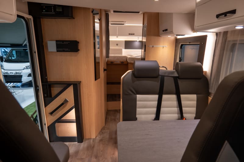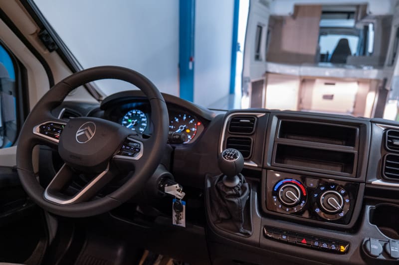 Letto basculante con Clima-Plux, Pedana doccia in legno, Predisposizione TV 12 incl. Supporto TV schermo piatto, Impianto solare 100 W con regolatore MPPT, Pacchetto cerchi in lega nero:, Volante e pomello del cambio in pelle, Bocchettone aria con applicazioni cromate, Cerchi in lega 16 nero opaco