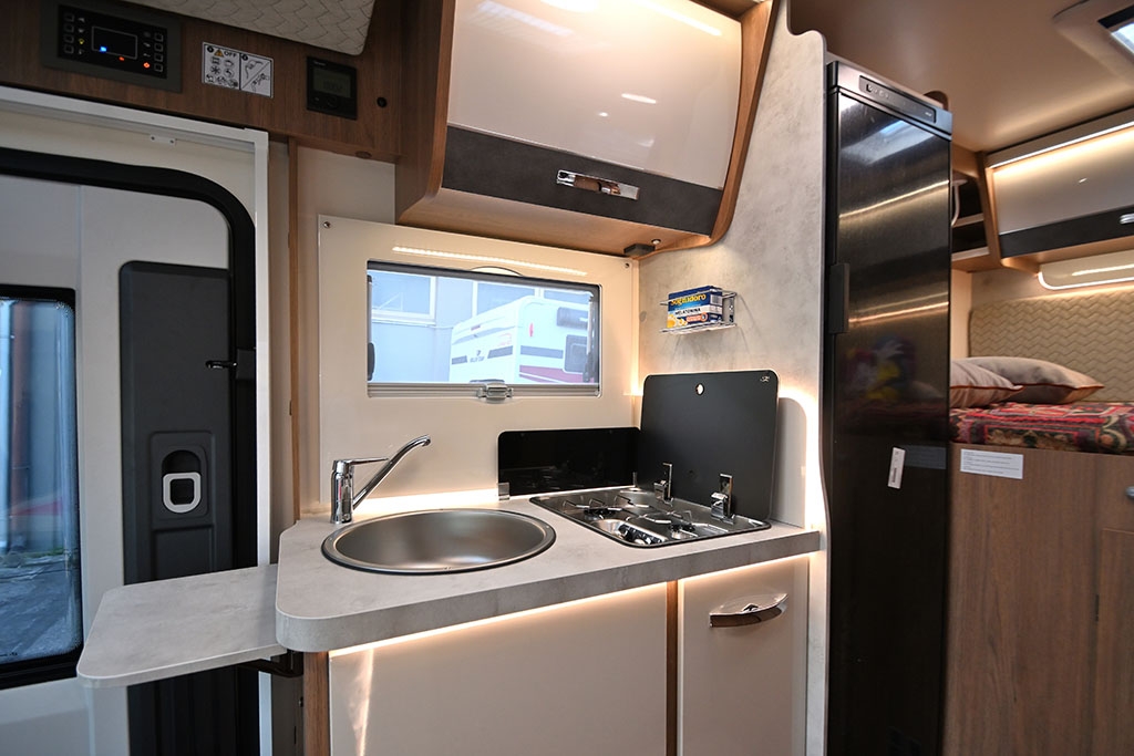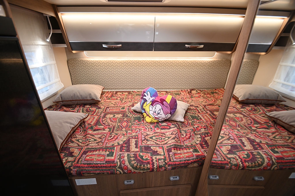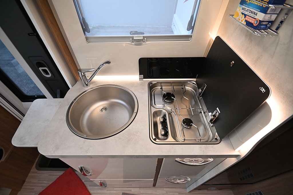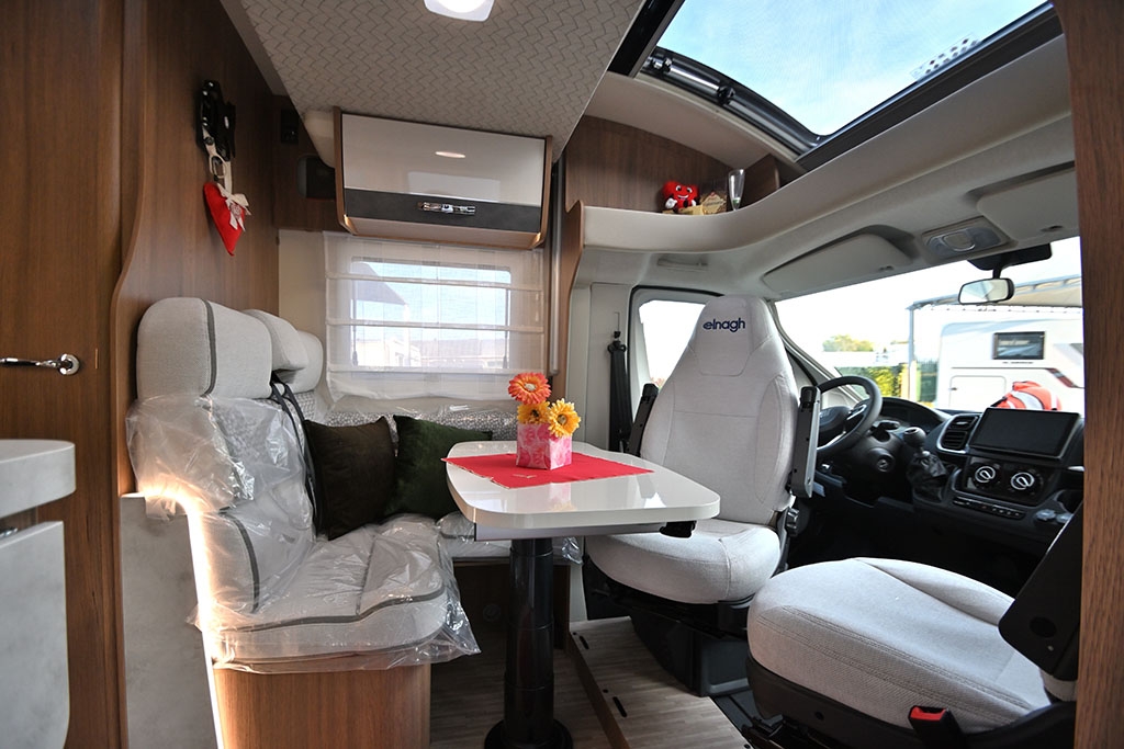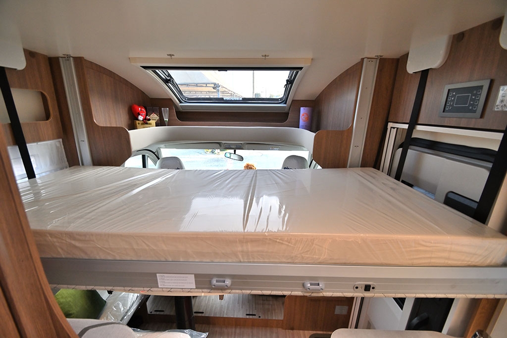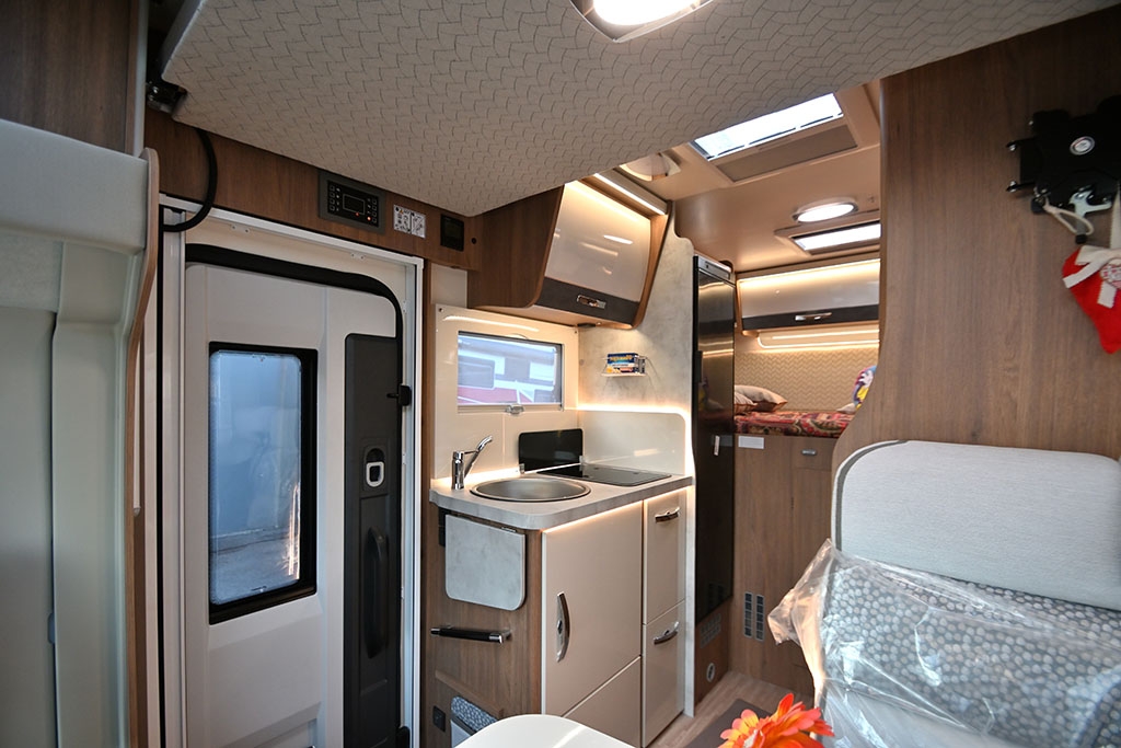 Pacchetto Baron (Pannello solare, stazione multimediale da 9 con Car Play, telecamera retromarcia, fendinebbia, freno di stazionamento elettrico, cerchi in lega da 16, sensori di pressione degli pneumatici, oscuranti plissettati in cabina, paraurti anteriore verniciato in tinta, volante e pomello del cambio rivestiti in pelle, cruscotto in design Techno), ESP, Traction+, Hill Holder, Hill Descent Control, Climatizzatore manuale in cabina, Cruise Control, Airbag passeggero, Specchietti retrovisori elettrici e riscaldabili, Sistema Start & Stop, Porta cellula con finestra, zanzariera e chiusura centralizzata, Winter Pack, Comando digitale Truma CP Plus, Sky-Roof su cupolino anteriore, Supporto TV, Isofix in dinette, Fodere coprisedili cabina in coordinato con tappezzeria, Sistema di riscaldamento Truma Combi 4D a gasolio