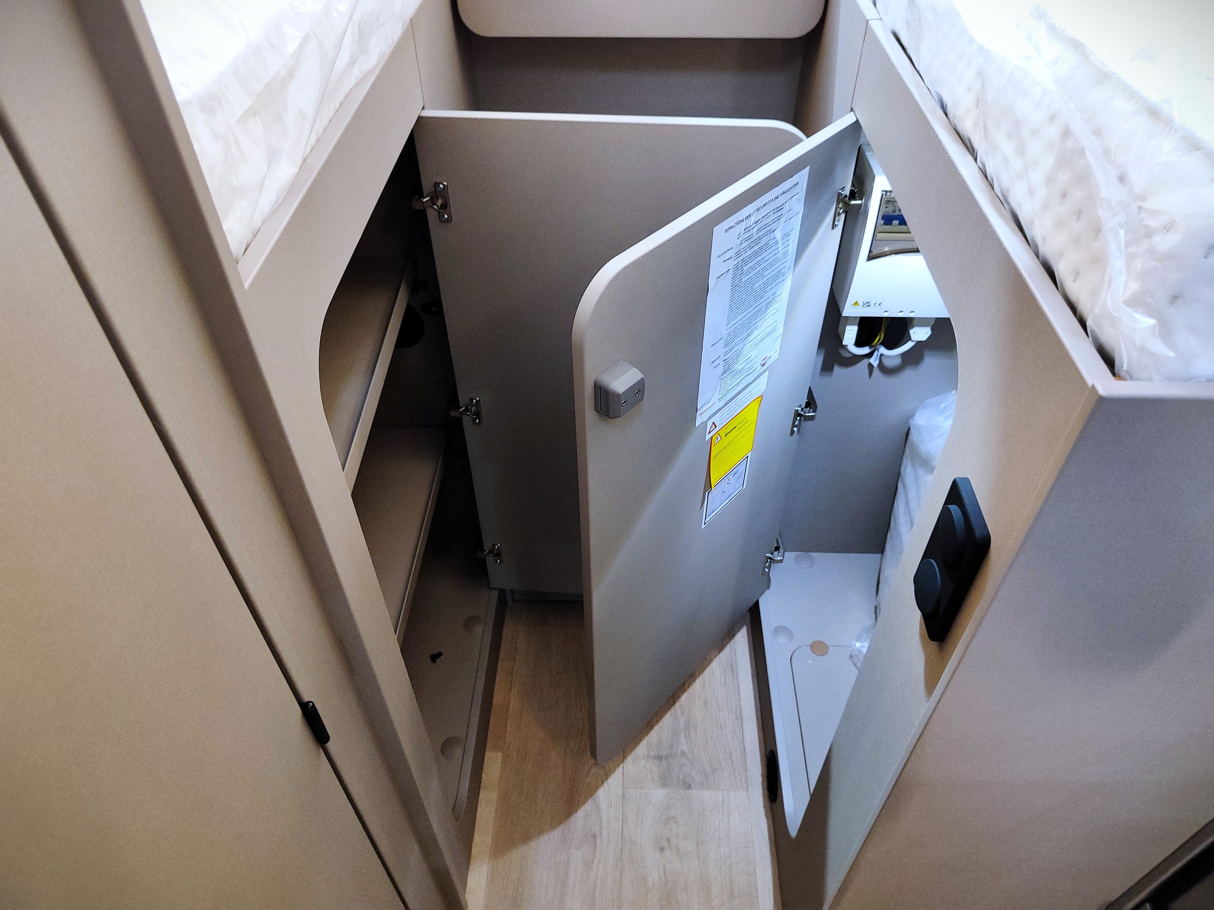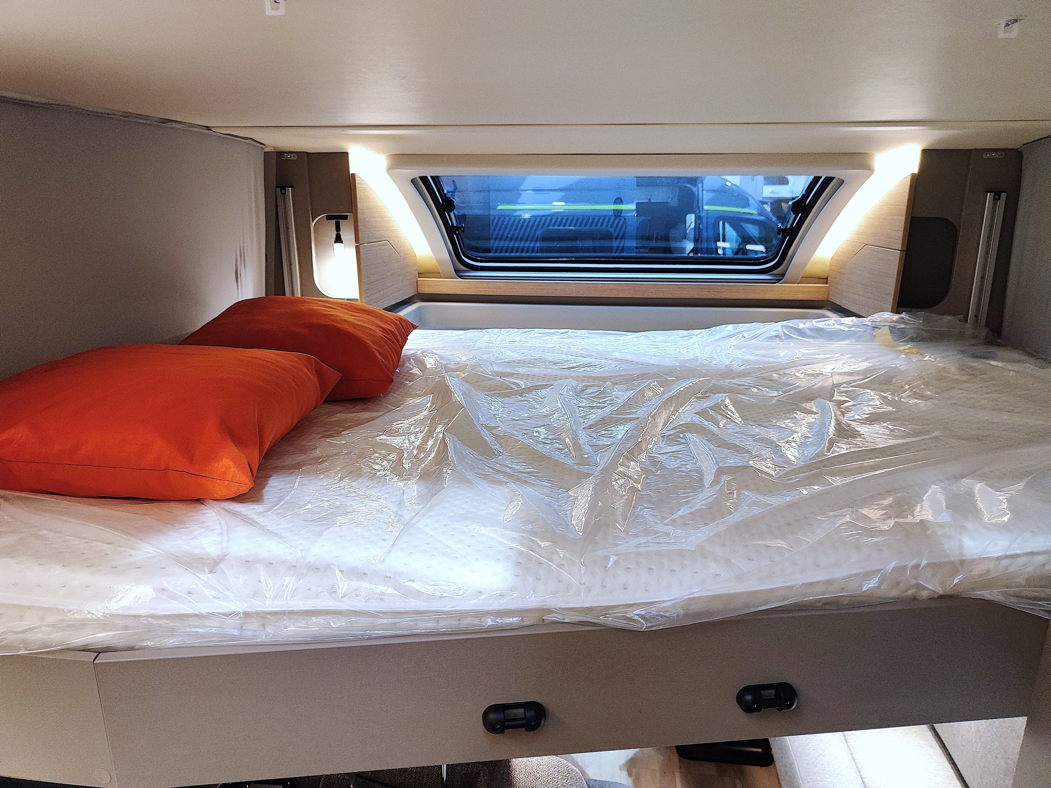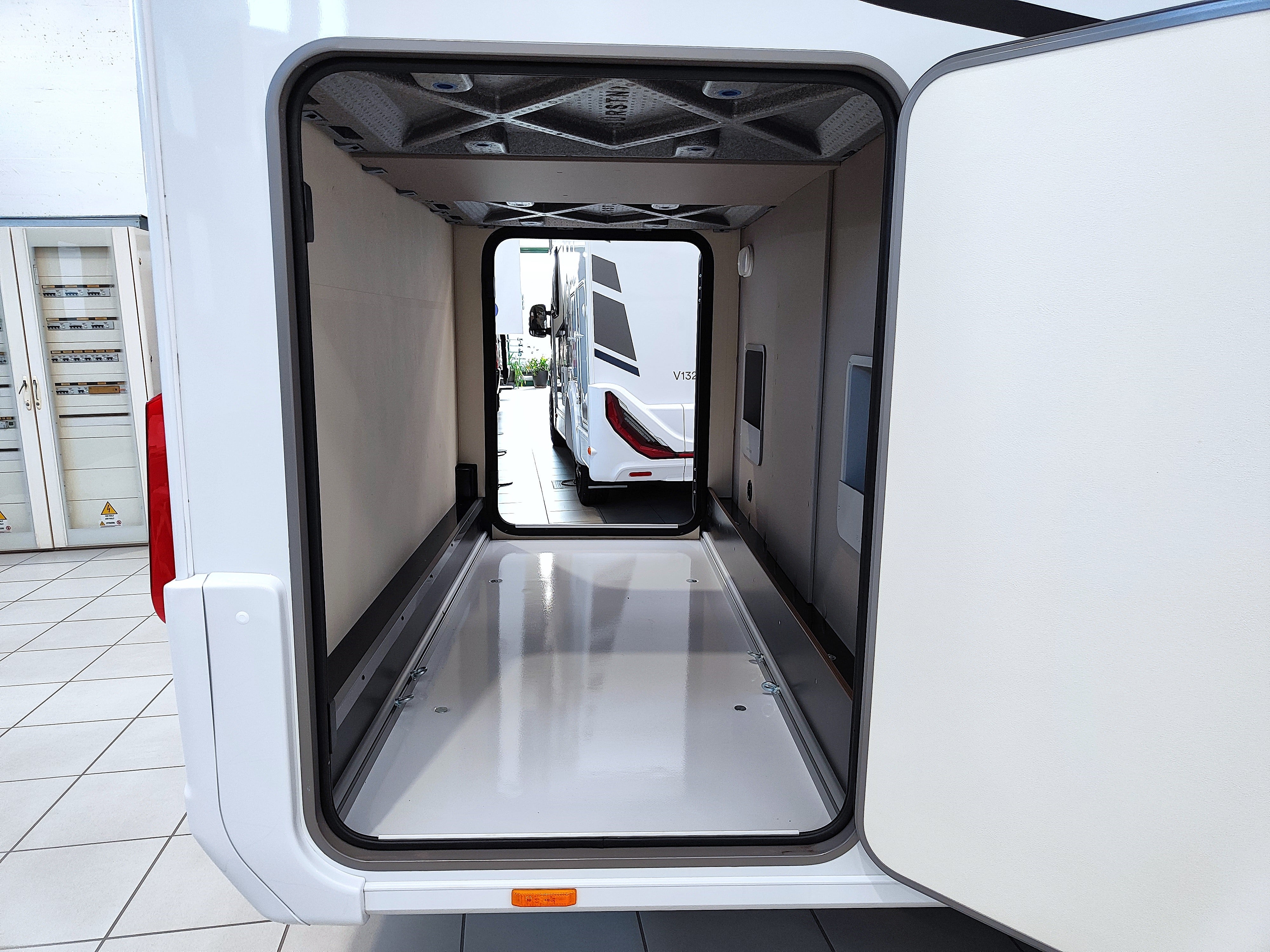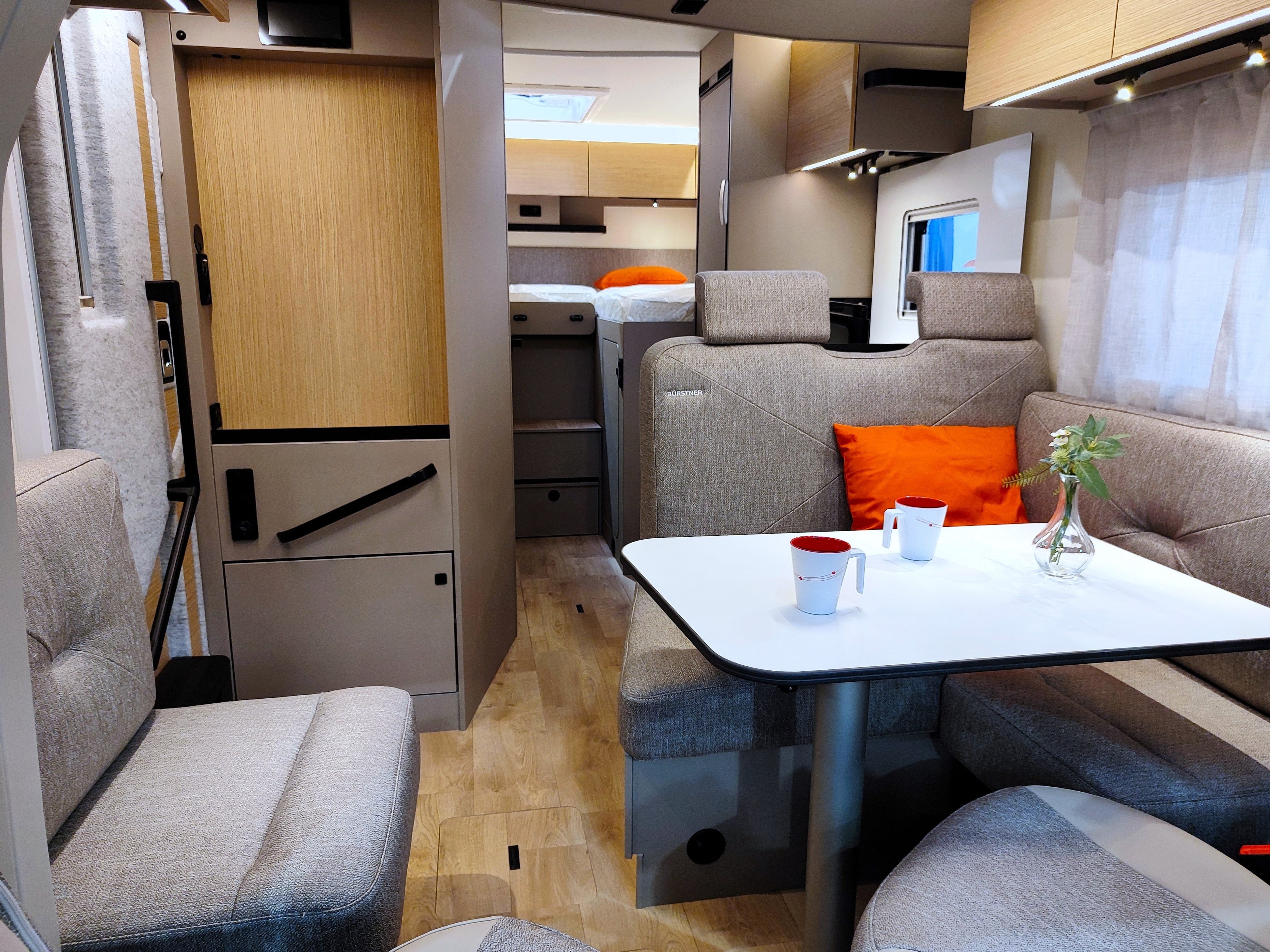 Piantina con letti gemelli e letto basculante, doppio pavimento e garage. Adatto sia alle coppie che alle vacanze di famiglia. Da VR Camper a Druento.