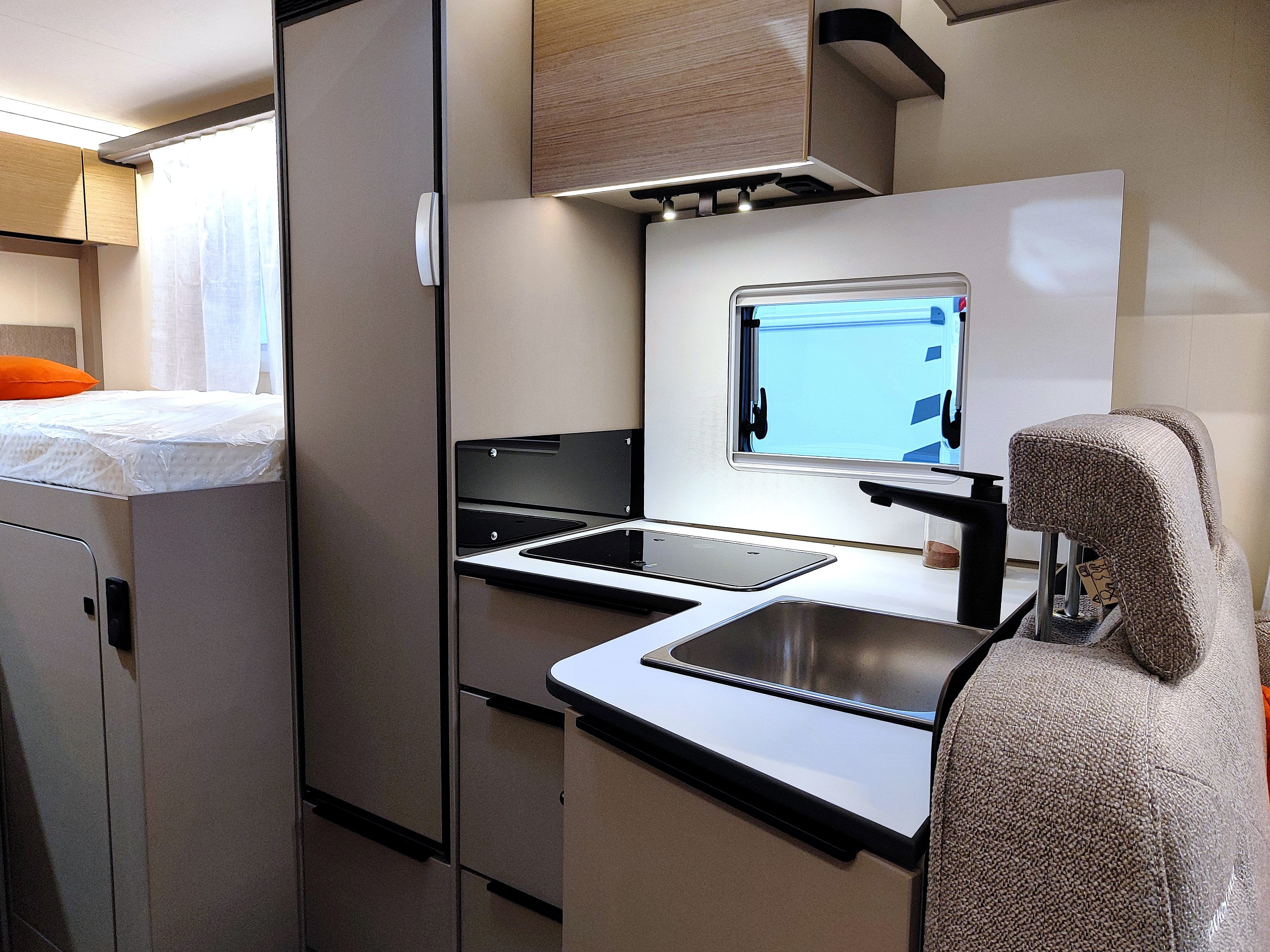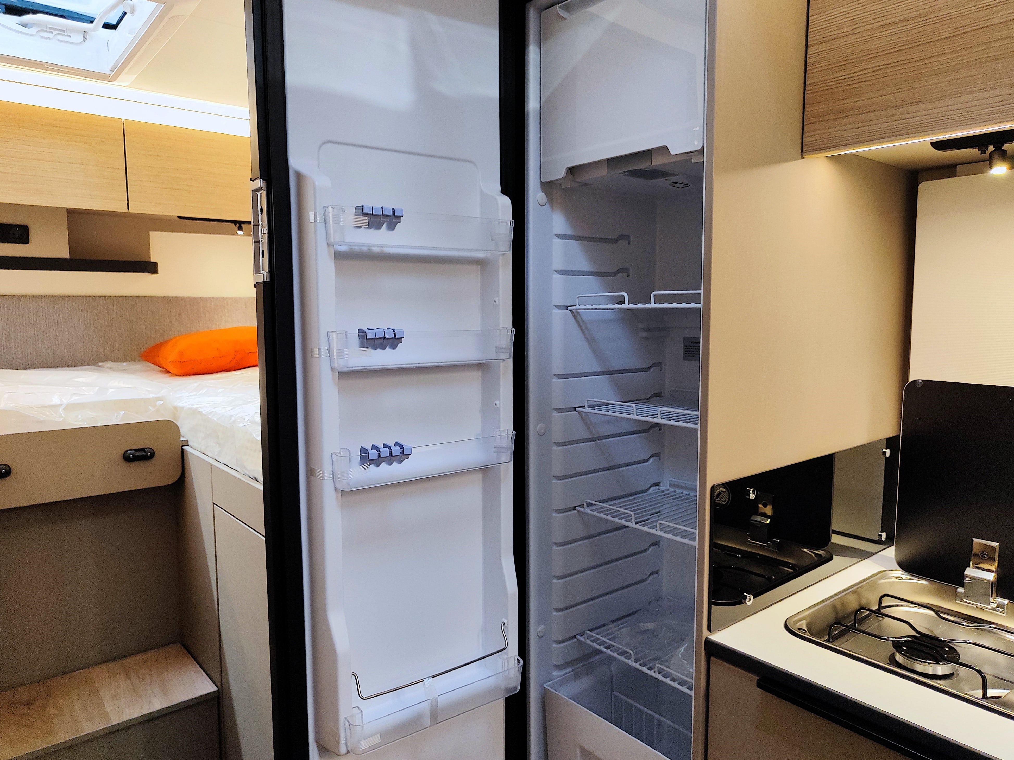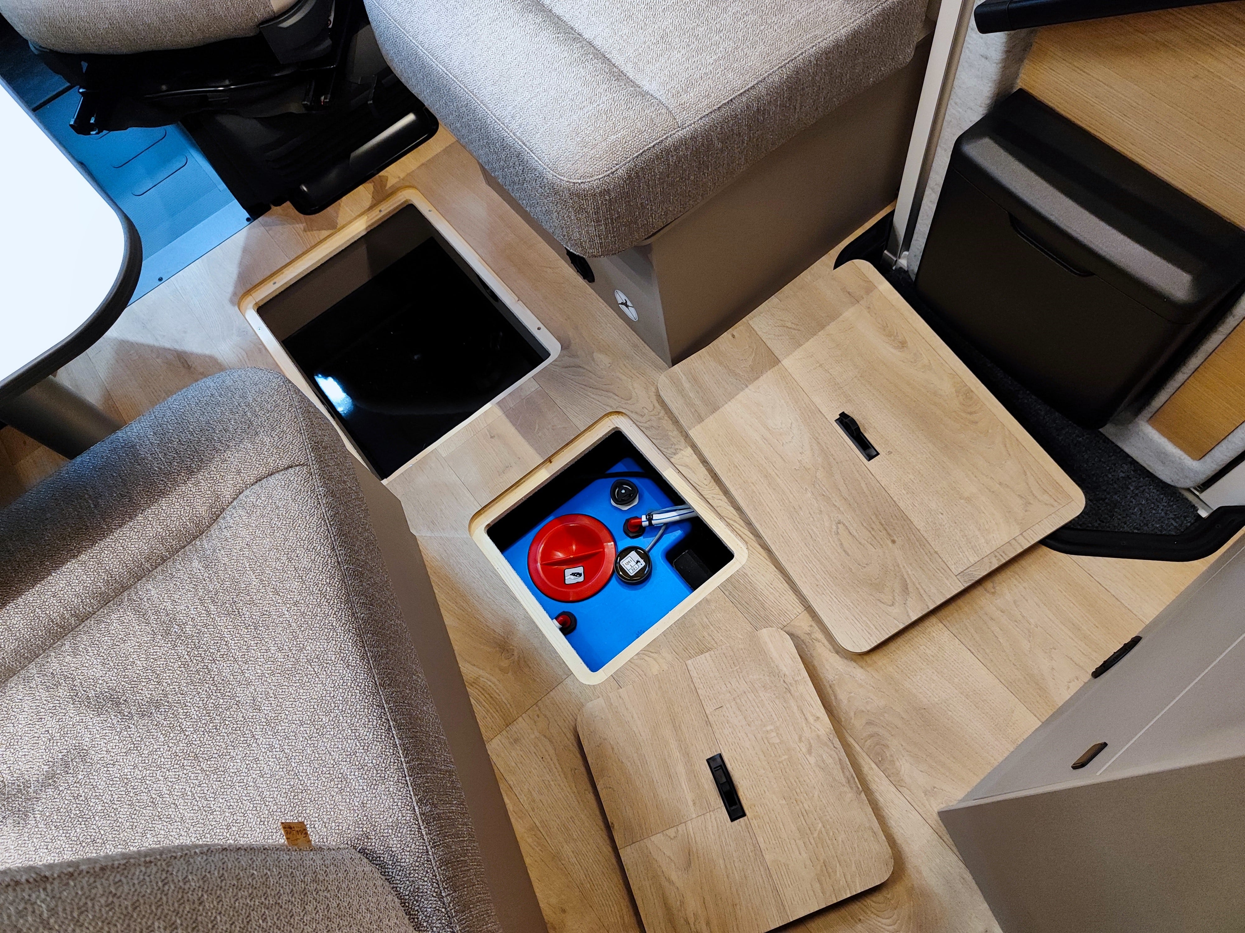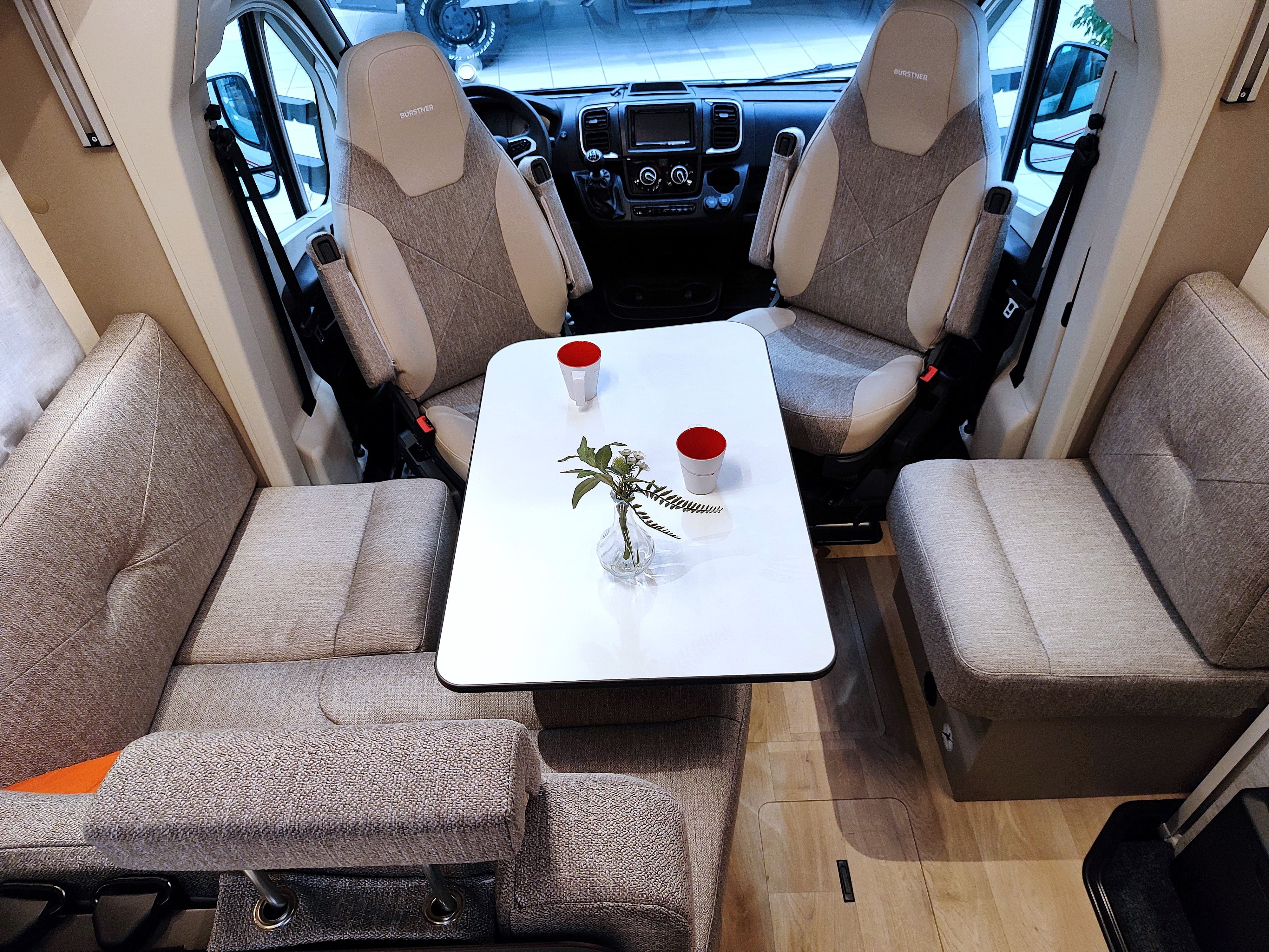 Piantina con letti gemelli e letto basculante, doppio pavimento e garage. Adatto sia alle coppie che alle vacanze di famiglia. Da VR Camper a Druento.