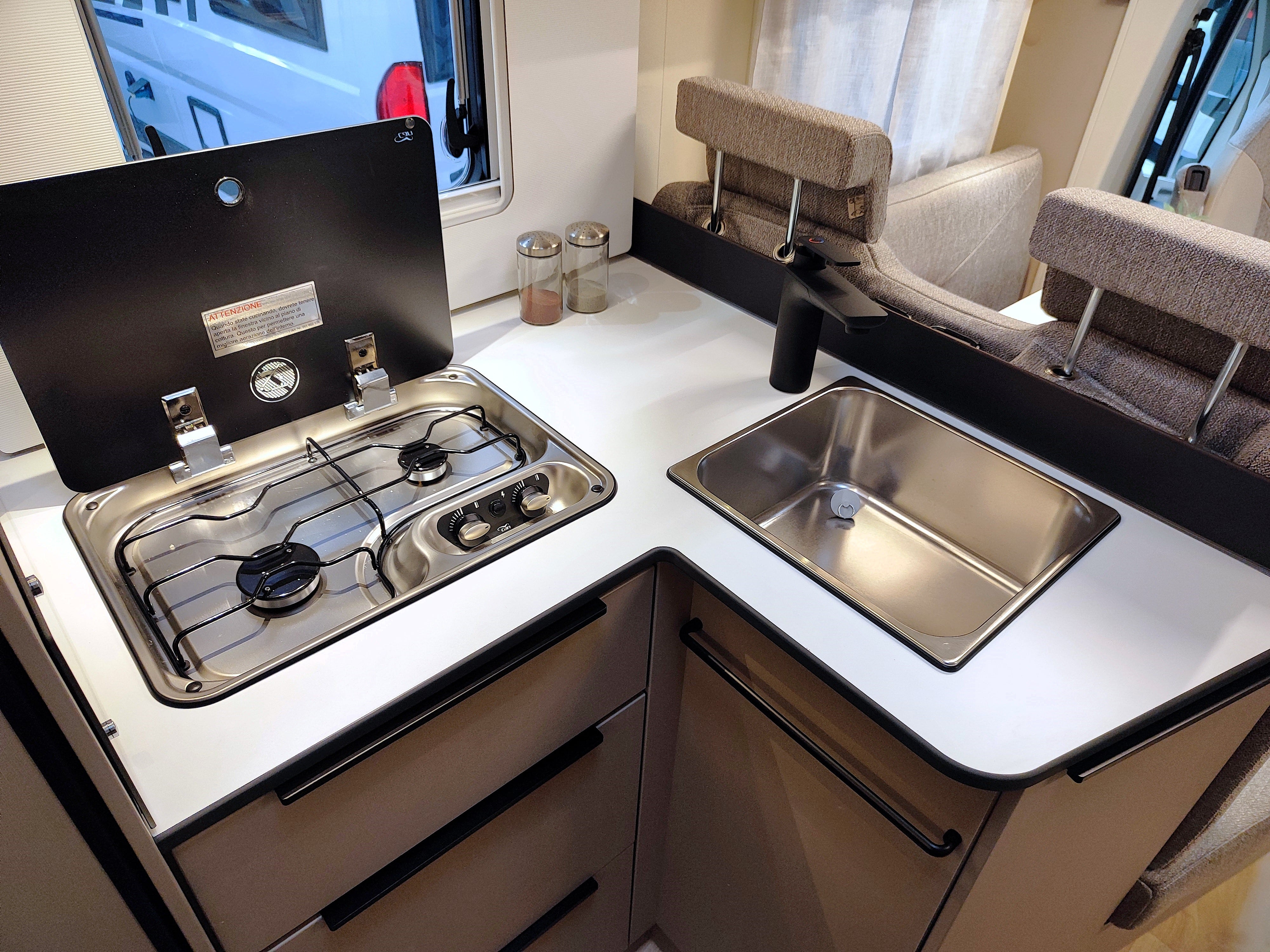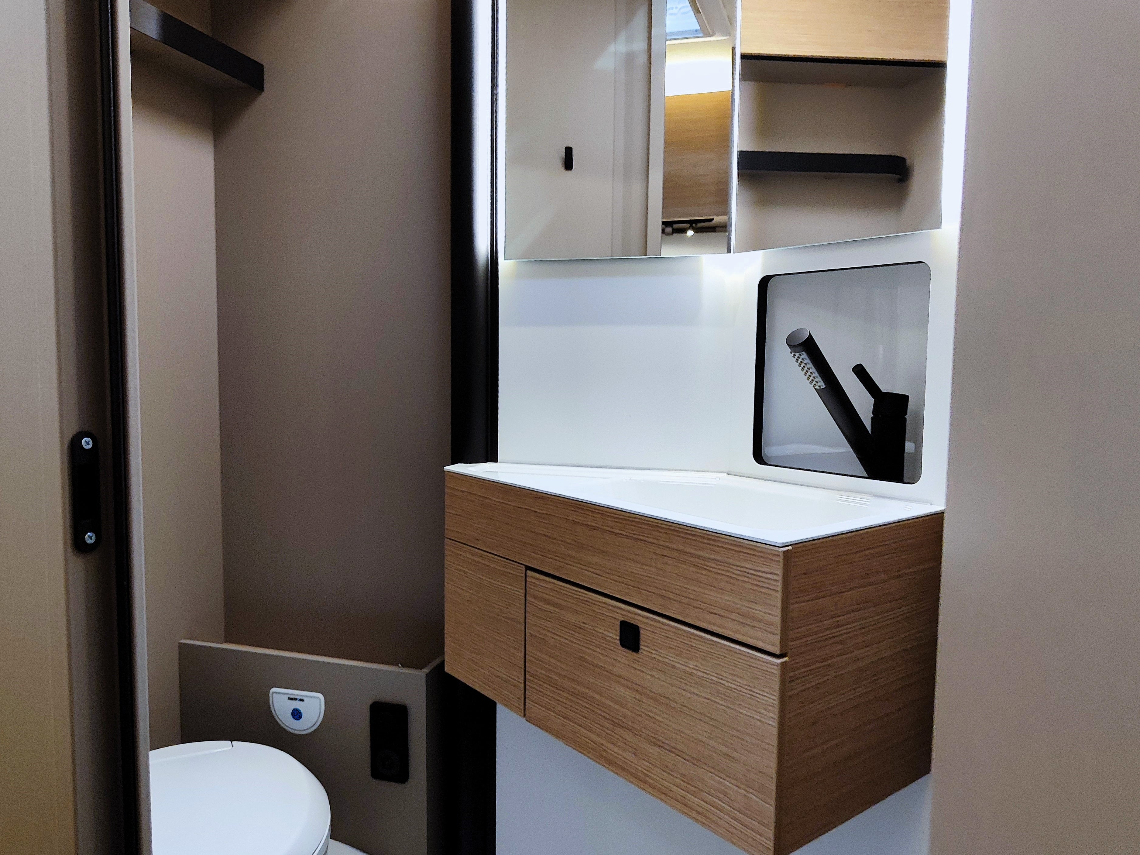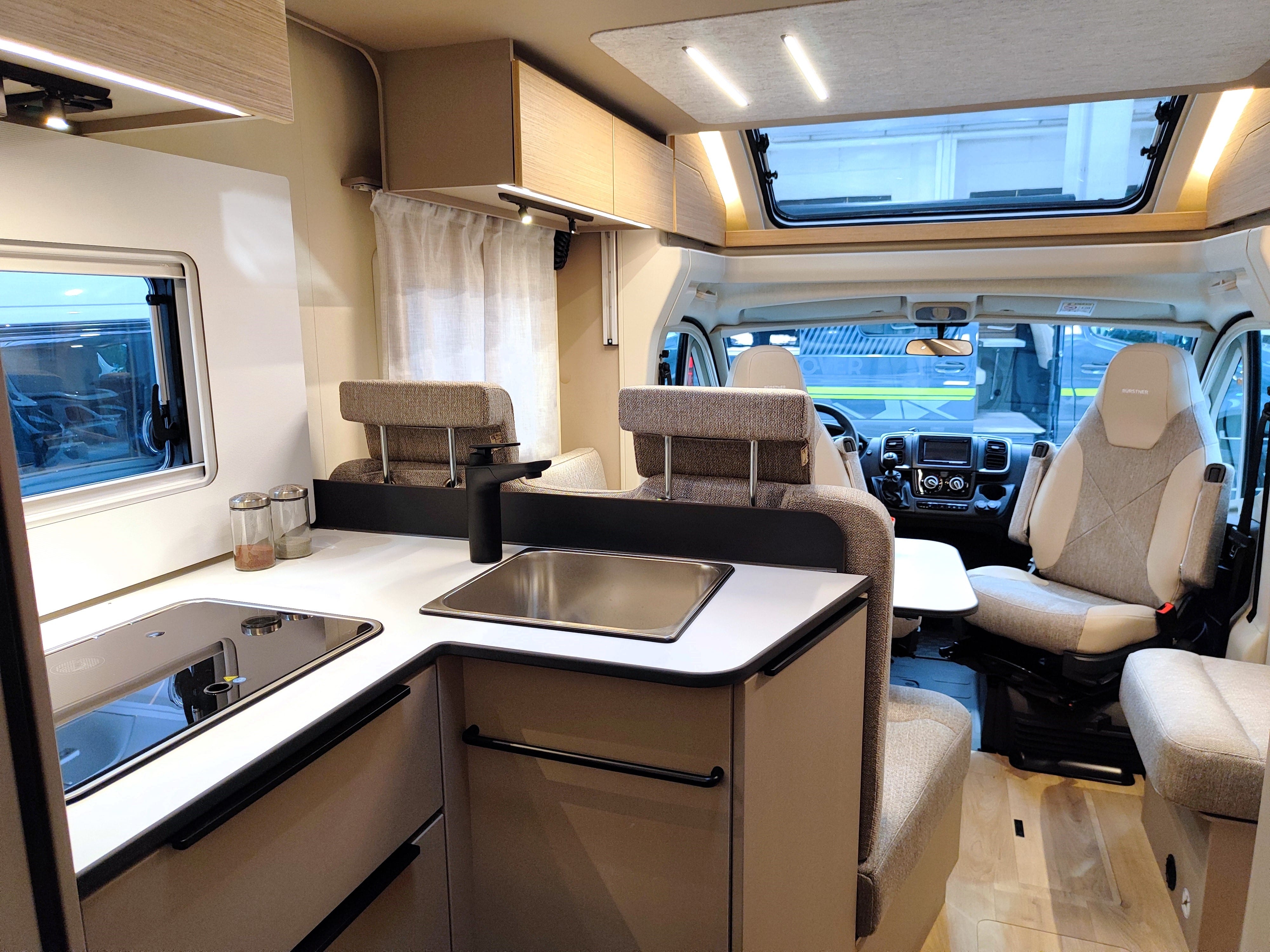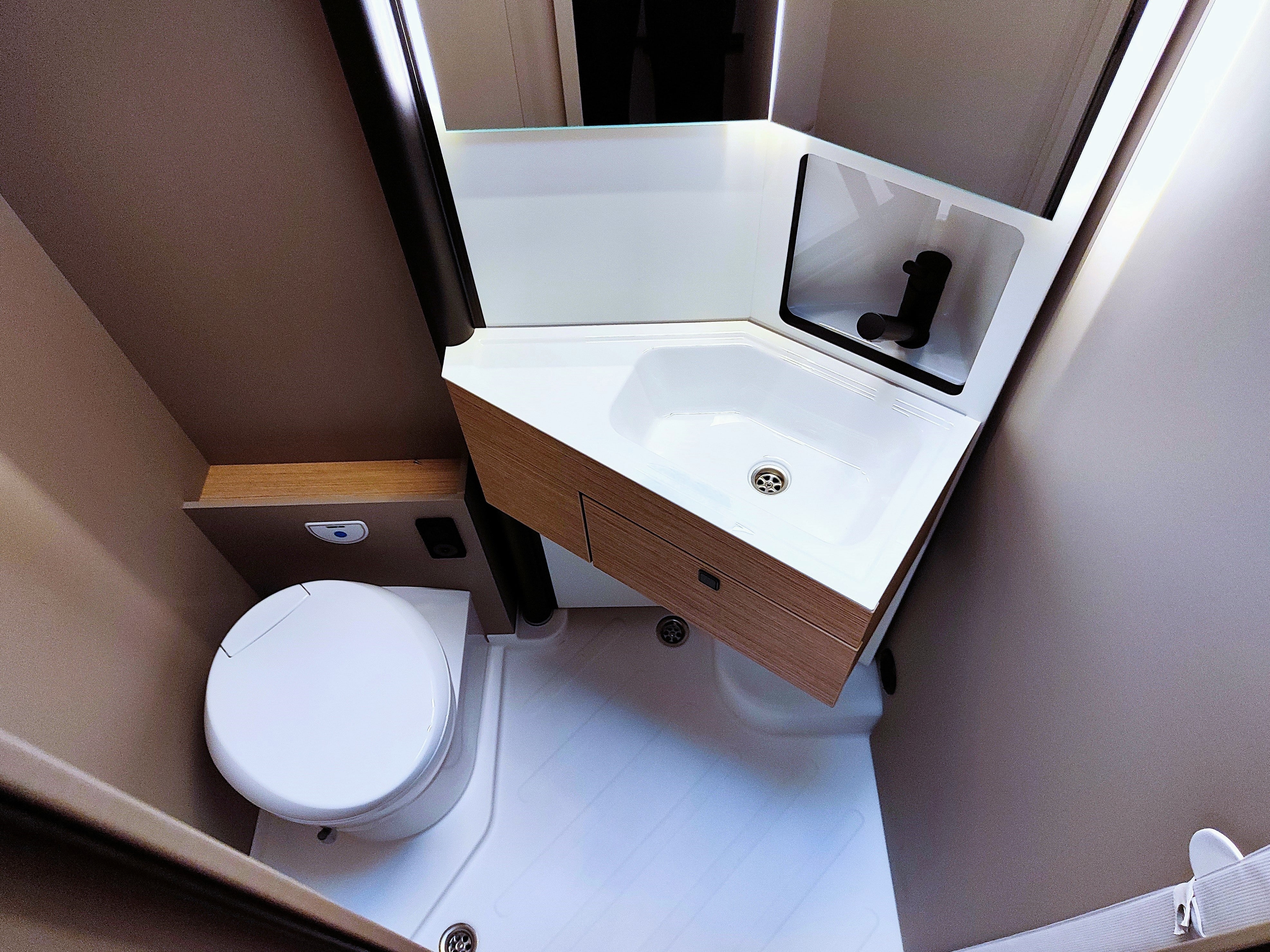 Piantina con letti gemelli e letto basculante, doppio pavimento e garage. Adatto sia alle coppie che alle vacanze di famiglia. Da VR Camper a Druento.
