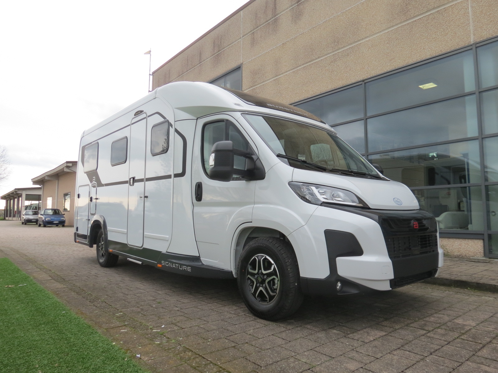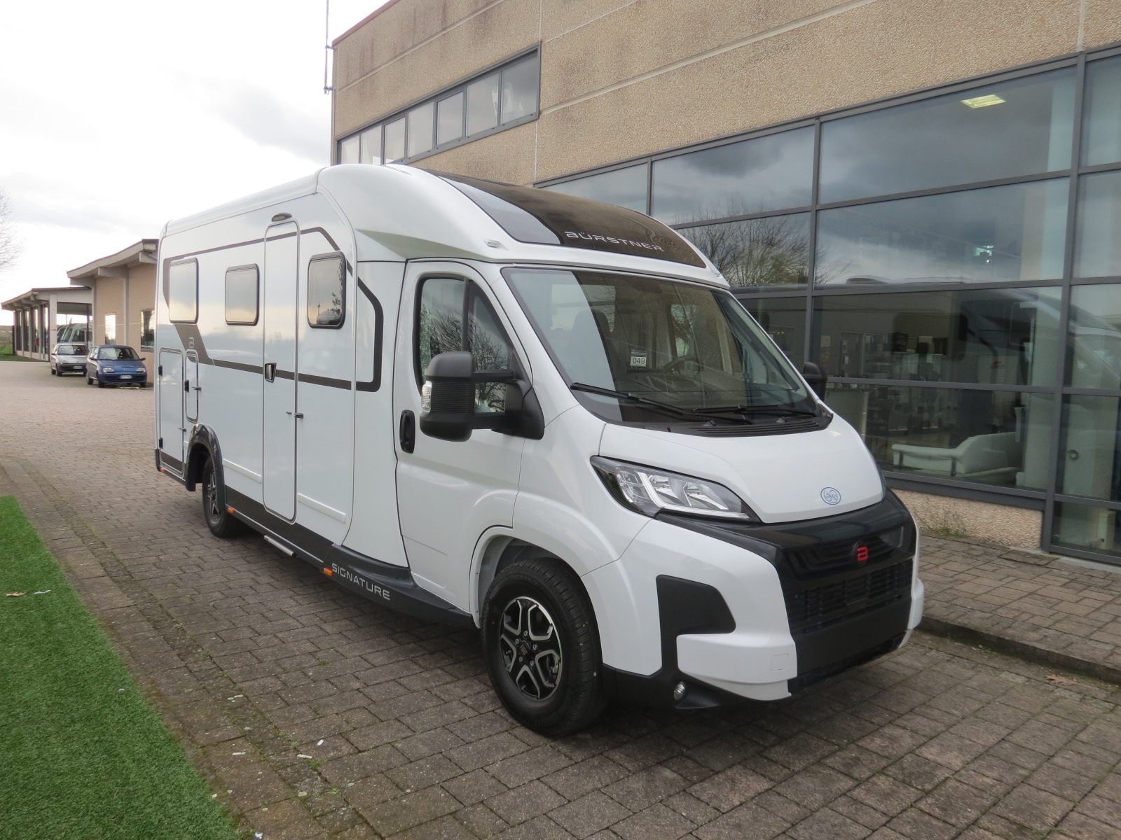 -Dotazioni accessorie presenti sul veicolo: Pack Comfort: (Zanzariera porta cellula-chiusura centralizzata porta cellula-rivestimento acustico pareti laterali-porta di separazione zona notte-illuminazione ambiente-materasso comfort con rete ventilata con molle-finestre con cornici-oblò Midi Heki 50x70-oscuranti plissettati cabina) - Pacchetto Premium Cucina: (piano di lavoro con rivestimento mineral – estensione scorrevole del piano di lavoro cucina-frigorifero a cassetto 138lt -tagliere-scaffale spezie estraibile con presa 230v)-Pacchetto multimedia (senza Sat) (stazione multimediale 9” con retrocamera -predisposizione radio-supporto TV -smart TV 32”)- Baule di stivaggio esterno scorrevole lato conducente - Sun Roof - Signature Line Design (calandra + bridgelight) - Portello garage lato sinistro - Cuscino per trasf. letti gemelli in matrimoniale -Seduta laterale girevole trasformabile nel senso di marcia+ 2 posti omologati lato sx - Cerchi in lega 16” - Buerstner Connect Precablaggio clima, sat, solar