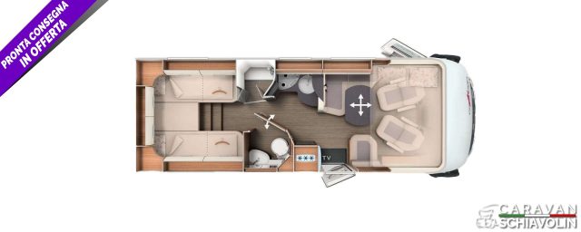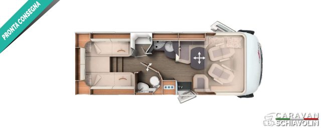 Chiusura centralizzata porta cellula XL ? 360,00Pacchetto prese aggiuntive ? 505,00Truma DuoControl CS ? 455,00Truma Combi 6 E ? 760,00Macchina del caffè con capsule e set di collegamento ? 330,00Upgrade Garage ? 360,00Oblò con ventola elettrica sopra cucina ? 535,00Stile CASABLANCA 2 ? 0,00Massiccia porta scorrevole davanti camera da letto ? 425,00Gruppo sedute trasformabile in letto ? 605,00Corredo per letto e set decorativo ? 425,00PACCHETTO BASE PLUS ? 5.295,00 (Borchie Carthago, Skid plate nera, Fendinebbia con luce di svolta, Cornice dei fari in colore nero, Cruise Control, Booster di ricarica, Sistema di oscuramento cabina: tendina plissettata su parabrezza e finestrini, Sedili comfort in cabina con regolazione di inclinazione e altezza (davanti/dietro), Predisposizione radio con antenna sul tetto con DAB+, altoparlanti (4x), Radio/Moniceiver Pioneer 6,8' con DAB+, Oblò Midi-Heki con faretti LED sopra il gruppo sedute a L, Grande porta del garage per scooter sul lato guida, Porta della cellula XL ?premium two 2.0? (larghezza 63 cm) con doppia chiusura, tenda e zanzariera avvolgibili, Batteria agli ioni di litio da 90 Ah con sistema di monitoraggio, Areazione toilette SOG, Presa USB nel pensile sopra il letto posteriore)PACCHETTO TELAIO PLUS FIAT ? 2.975,00 (Volante e pomello del cambio in pelle, Abbellimento del cruscotto con griglie di ventilazione cromate, Cerchi in lega Fiat da 16 pollici, Volante multifunzione (con tasti per il comando a distanza della radio), Climatizzatore automatico cabina, Base di ricarica induttiva per cellulare, Strumento combinato digitale con display a colori nel cruscotto)PACCHETTO MULTIMEDIA DA 32' ? 2.865,00 (Sistema retrocamera con lente singola, Supporto TV a parete 32', ruotabile di 180° nella zona d?ingresso, Smart TV a LED 32')PACCHETTO COMFORT ABITATIVO ? 670,00 (Gradino di accesso lightweight estraibile con estensione della superficie di sdraio, Coprilavello multifunzione incl. tagliere per attacco a parete aggiuntivo per estendere il piano di lavoro, Ripiano per scaffale sotto i letti singoli longitudinali)KIT PREDISPOSIZIONI ? 770,00 (Predisposizione oblò a tetto con ventola elettrica, Predisposizione impianto fotovoltaico, Predisposizione impianto SAT, Predisposizione retrocamera (lente singola)) SEMINTEGRALE SU MECCANICA FIAT SERIE 10 E NUOVO CAMBIO AUTOMATICO 8 RAPPORTI, LETTI GEMELLI POSTERIORI CON GRANDE GARAGE, BAGNO E DOCCIA SEPARATI,TELAIO ALKO E DOPPIO PAVIMENTO PASSANTE IN 6,99 METRI DI LUNGHEZZA.NOVITA', 2026 IN PRONTA CONSEGNA ,.
