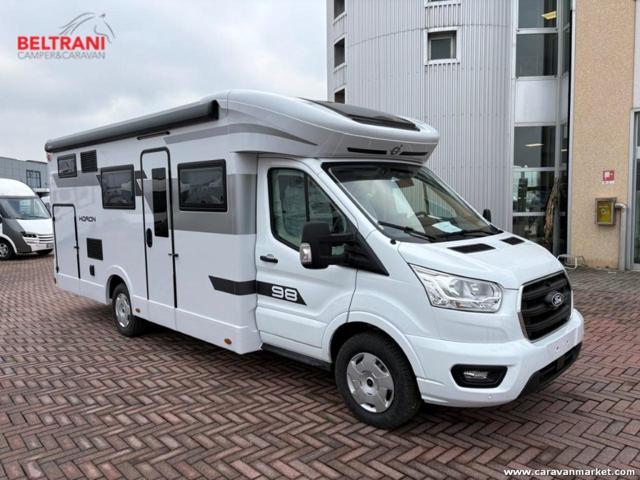 Il camper semintegrale Ci Horon 98 XT è la scelta perfetta per chi cerca spazi ampi e capienti in un veicolo agile da 7,43 m di lunghezza, 2,35 m di larghezza. Su meccanica Ford Transit 2.0 TDCI 165 CV, offre guida fluida con cruise control, retrocamera, sensori parcheggio e touch screen 12' SYNC 4.