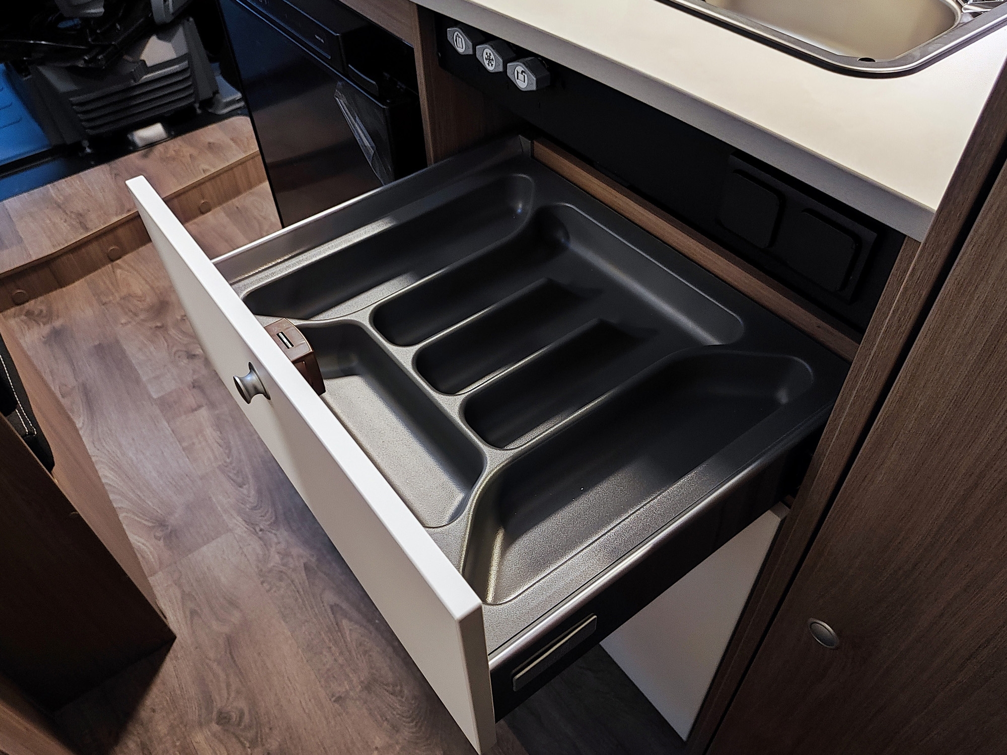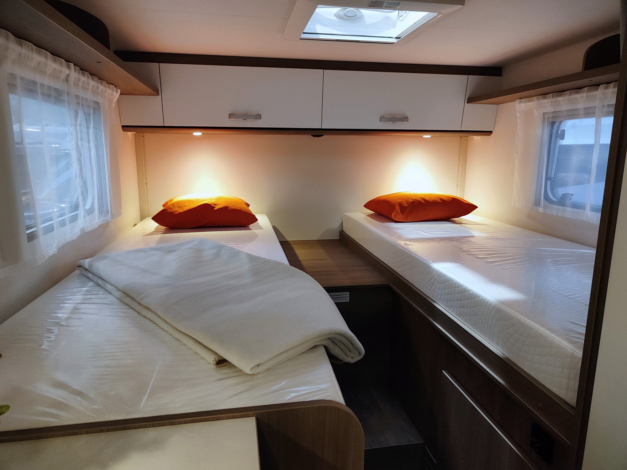 Godetevi l'ampio spazio, la pace e la tranquillità anche durante il sonno con i comodi letti gemelli. La dotazione di serie ampia offre ancora più comfort