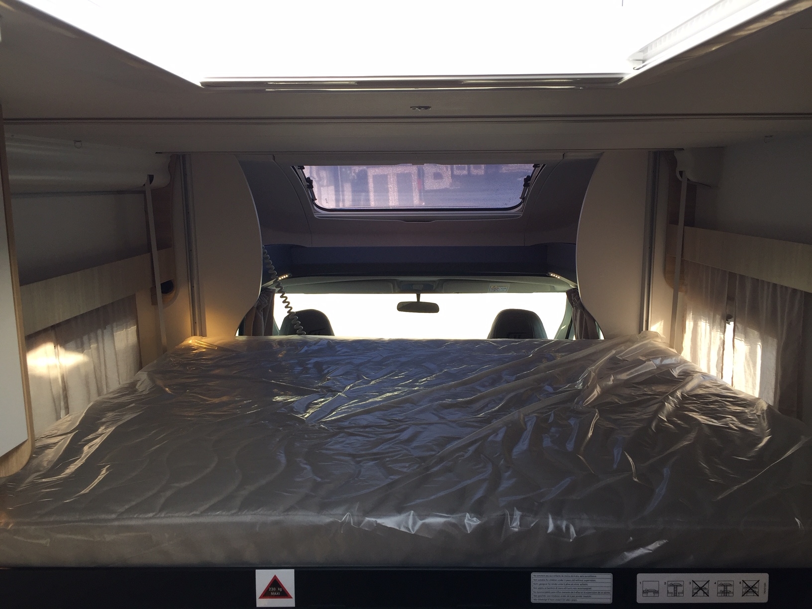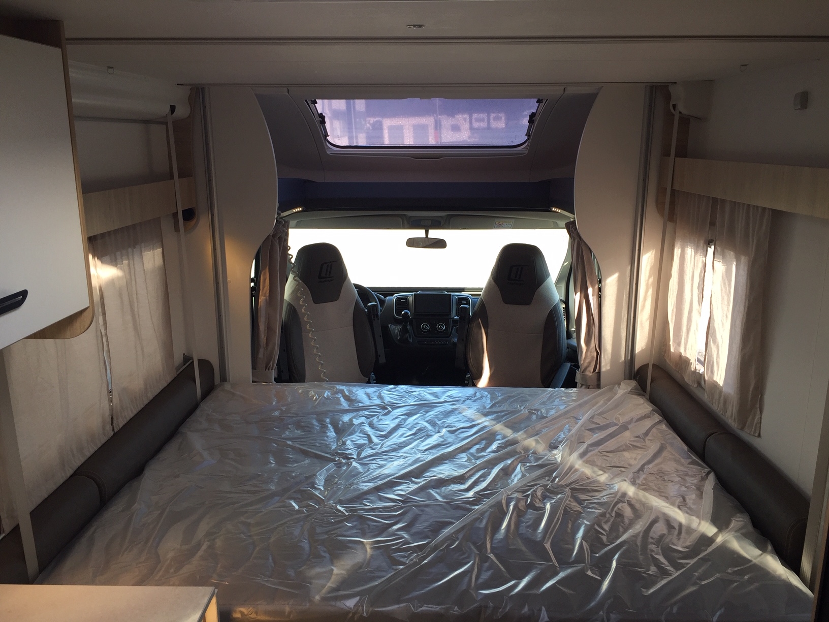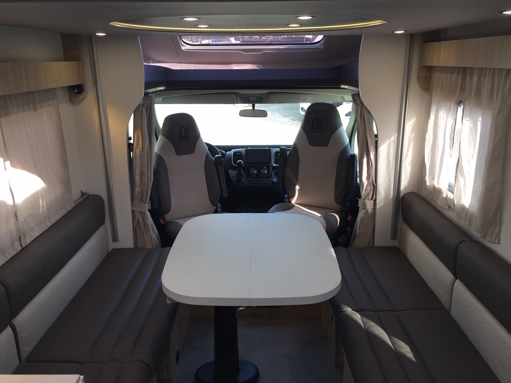 Completamente in vetroresina, meccanica Fiat Ducato 140 cv con cambio automatico, climatizzatore in cabina, doppio airbag, sedili girevoli con doppio bracciolo regolabili in altezza, retrovisori elettrici riscaldabili, cruise control, ESP, ABS, traction+ ed hill descent control, fendinebbia con funzione cornering.