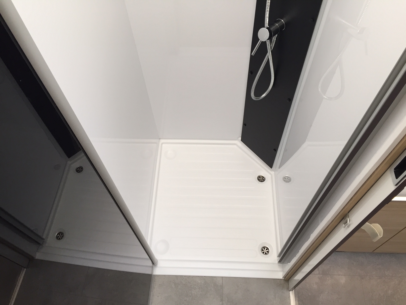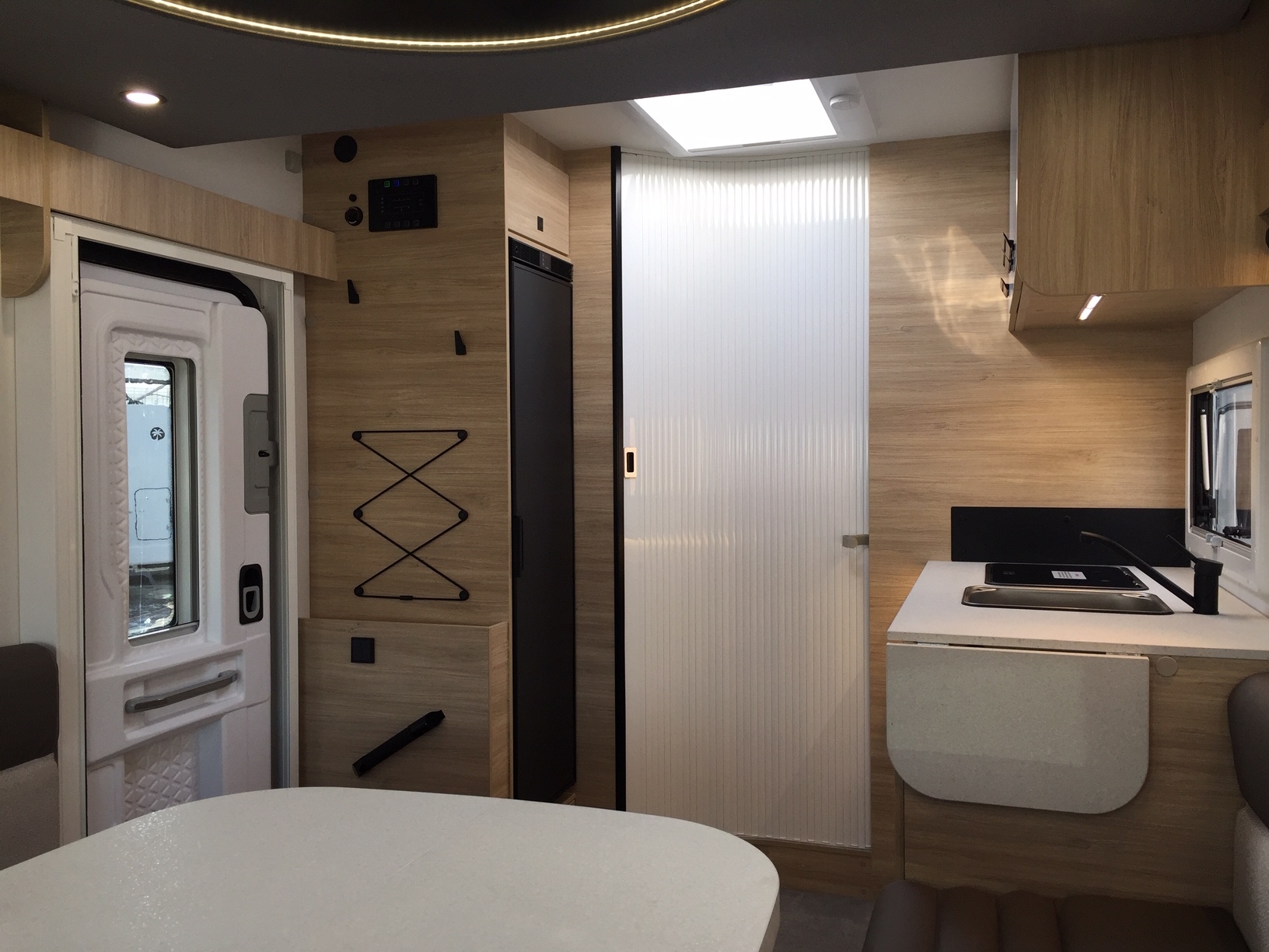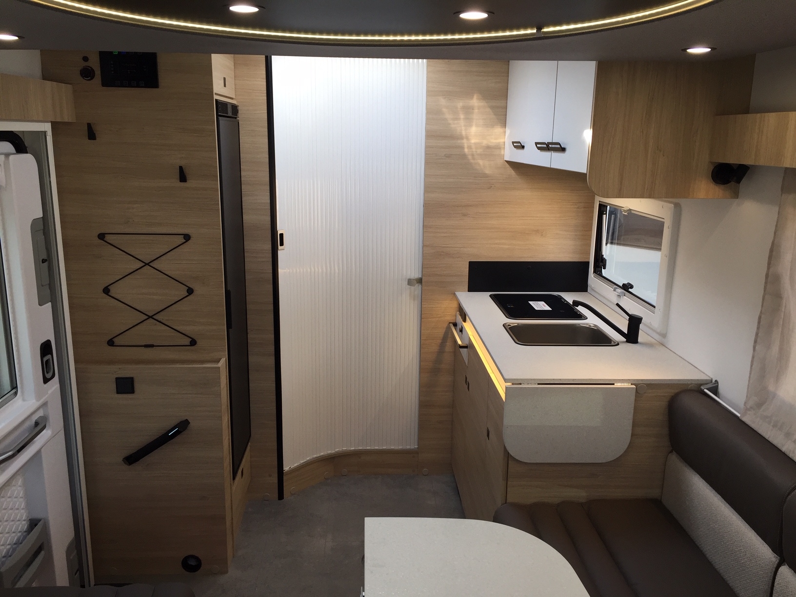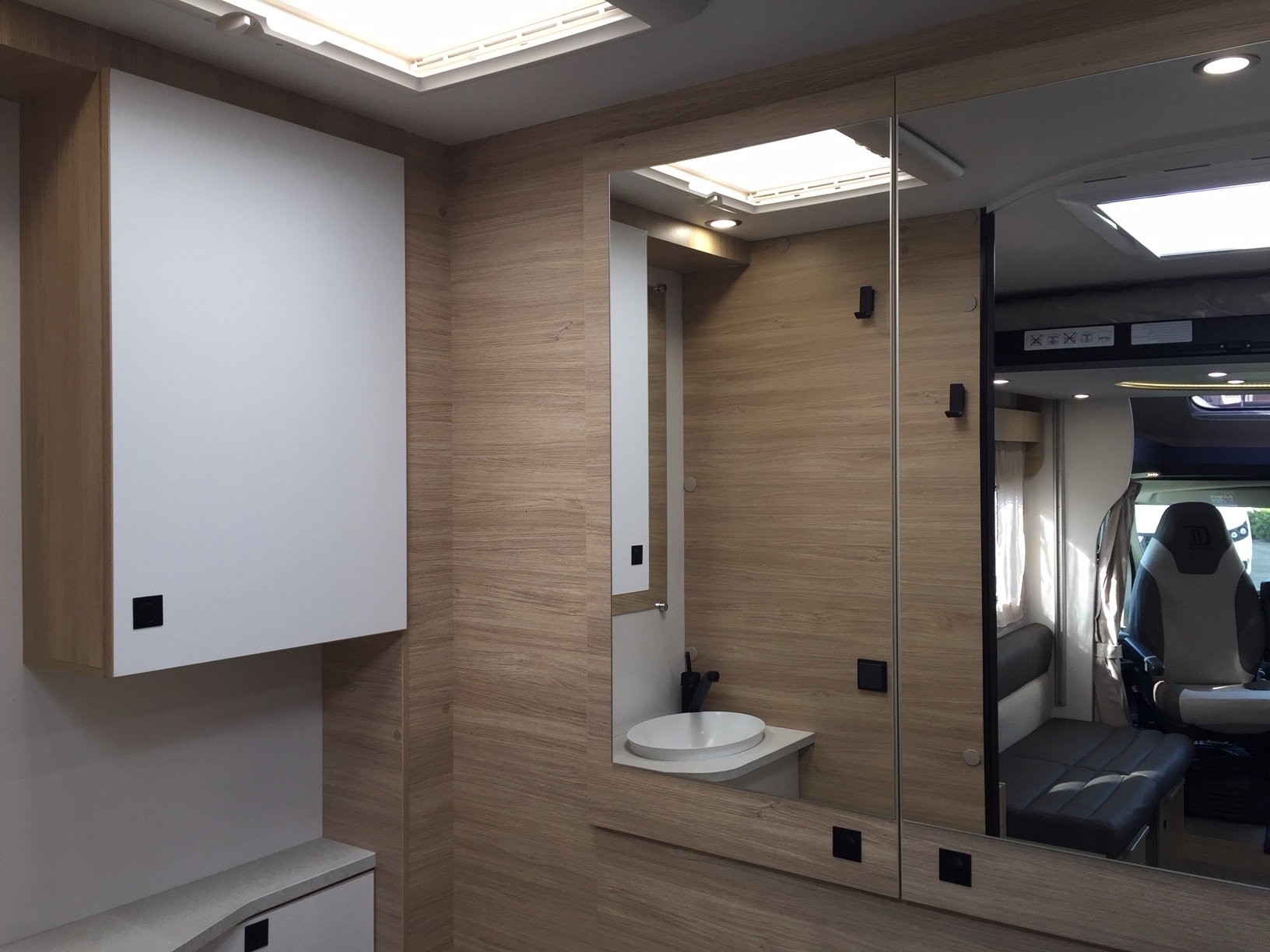 Completamente in vetroresina, meccanica Fiat Ducato 140 cv con cambio automatico, climatizzatore in cabina, doppio airbag, sedili girevoli con doppio bracciolo regolabili in altezza, retrovisori elettrici riscaldabili, cruise control, ESP, ABS, traction+ ed hill descent control, fendinebbia con funzione cornering.