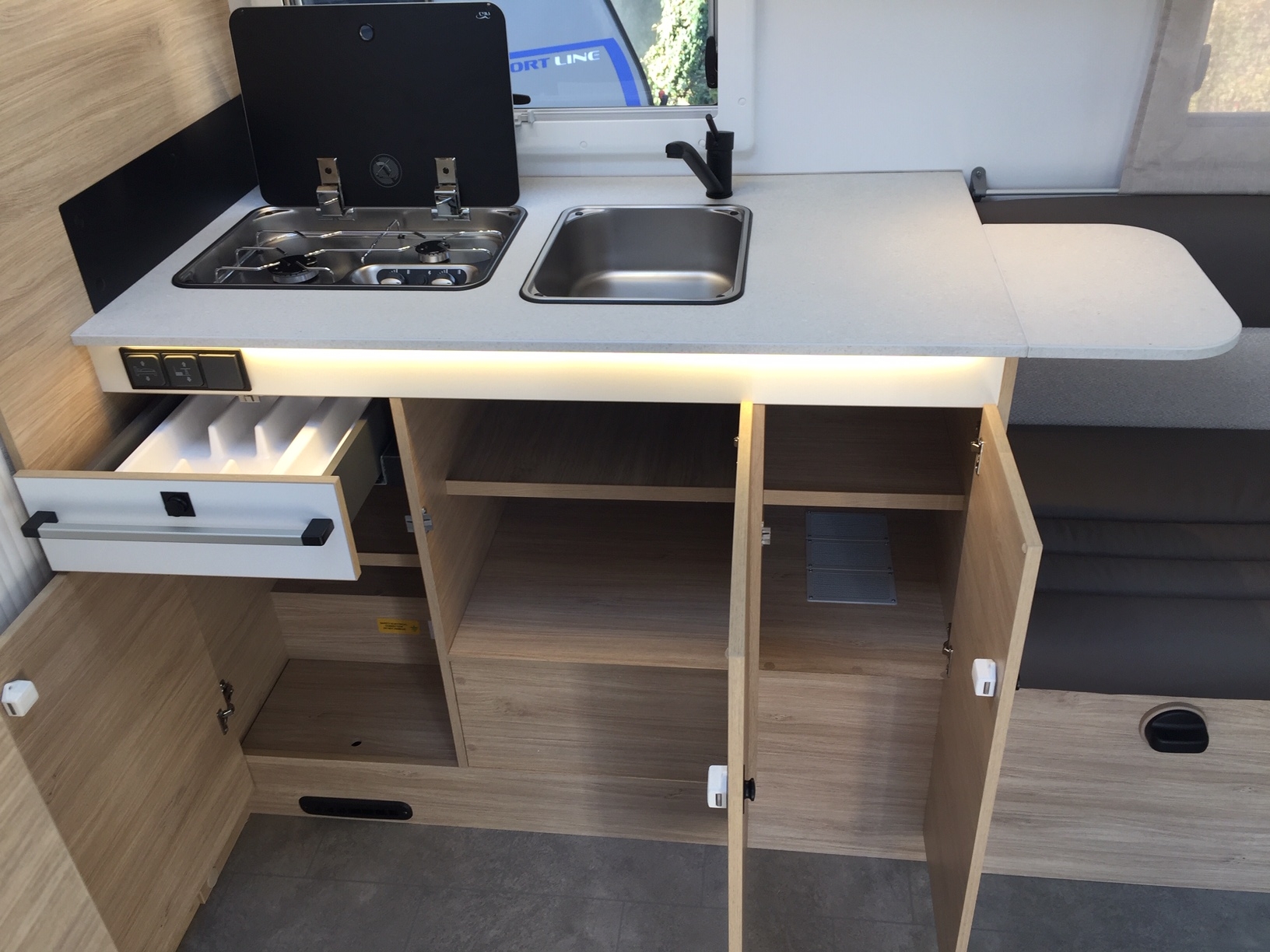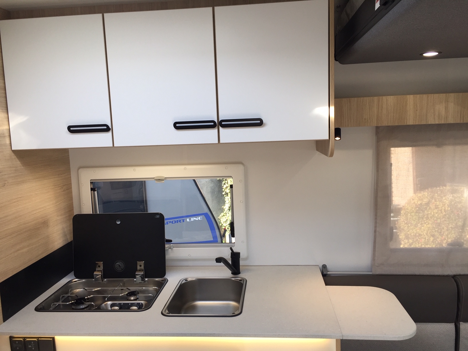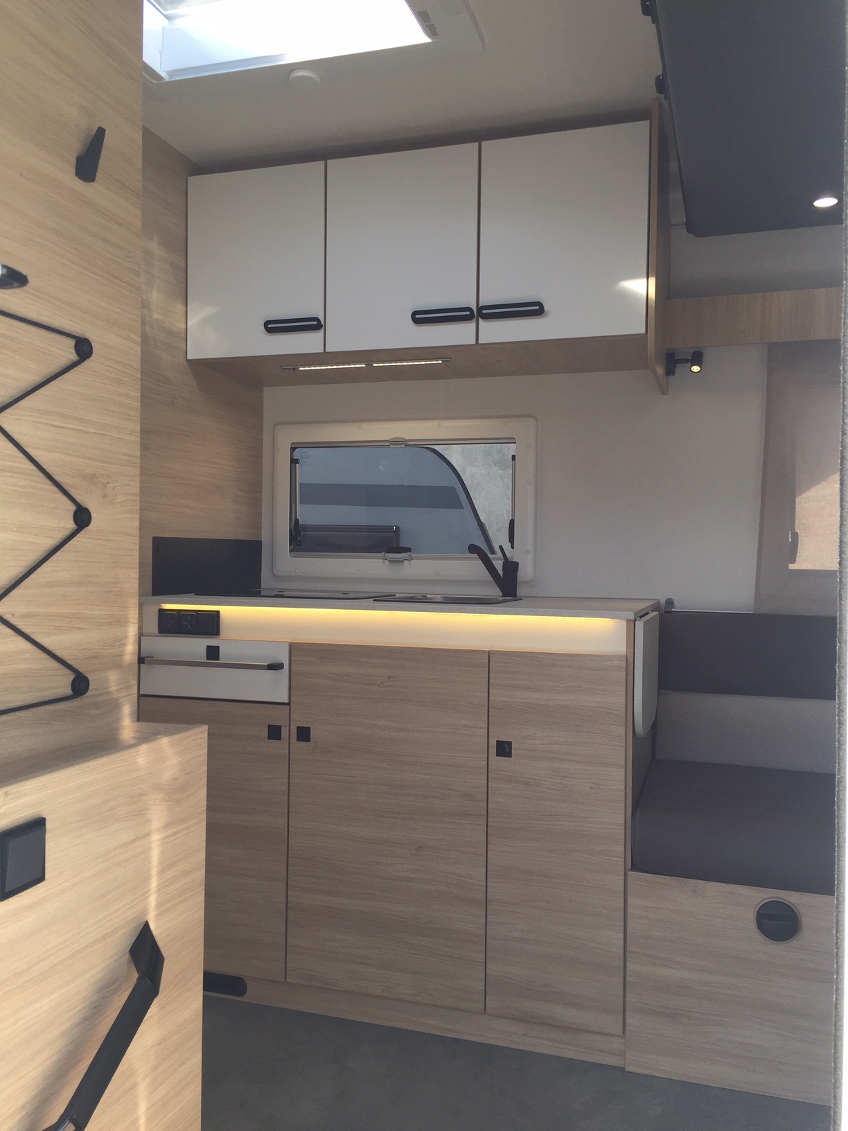 Pack accessori: tendalino esterno, pannello solare da 140 W, zanzariera porta di ingresso, oscuranti plissettati in cabina.