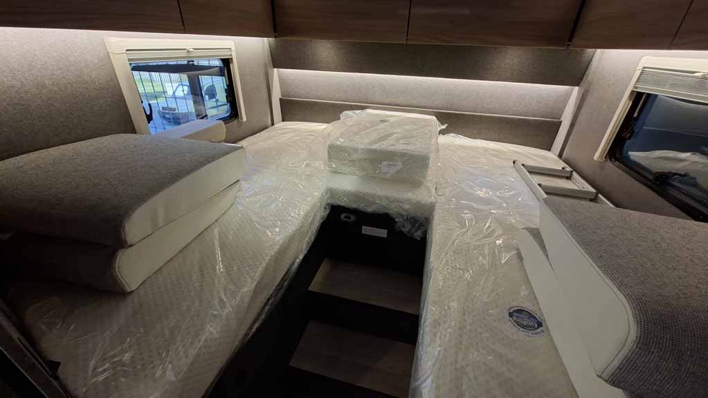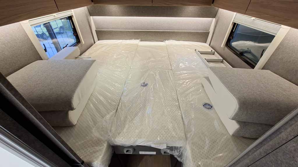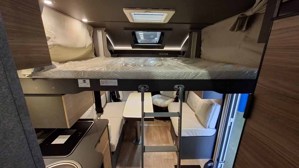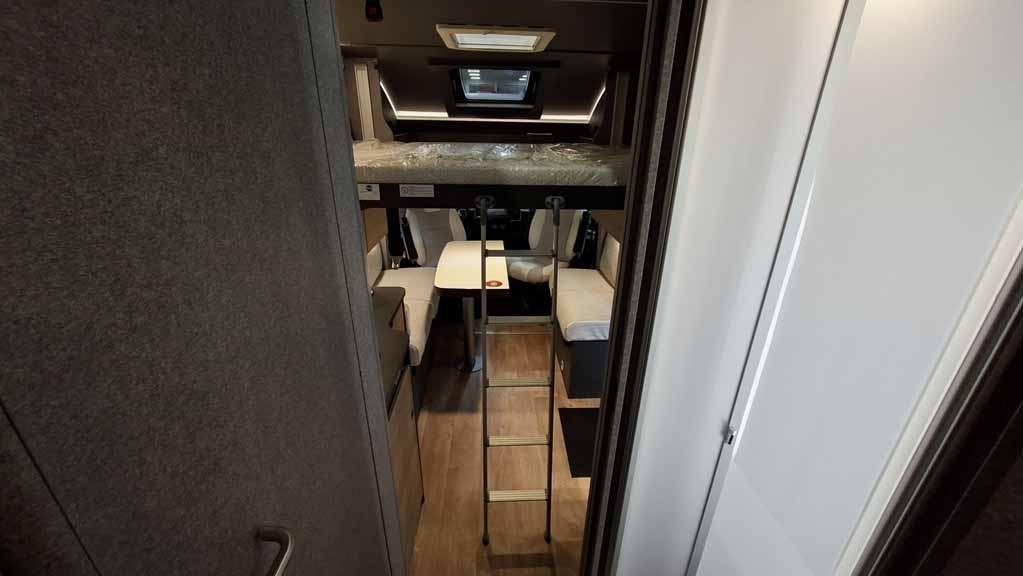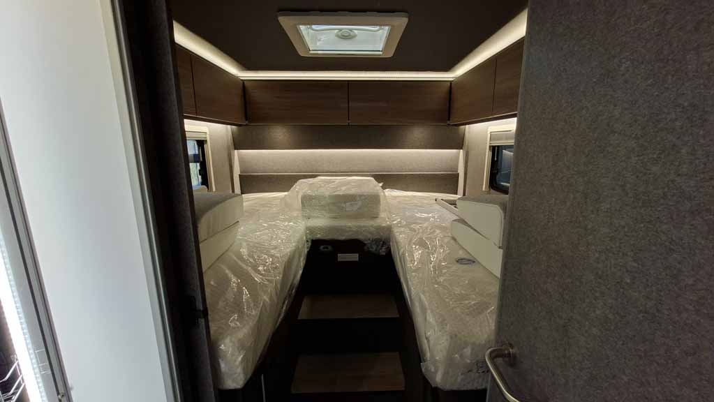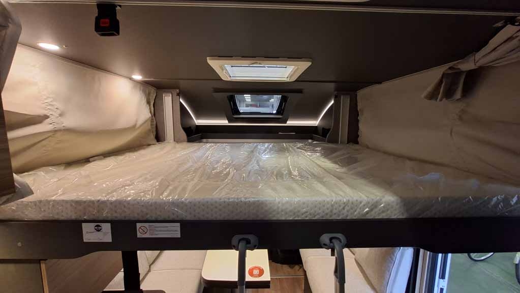 La zona notte è studiata per adattarsi a ogni esigenza: dispone di un letto basculante sopra la dinette e di un grande letto trasversale sopra il garage, perfetto per notti riposanti.