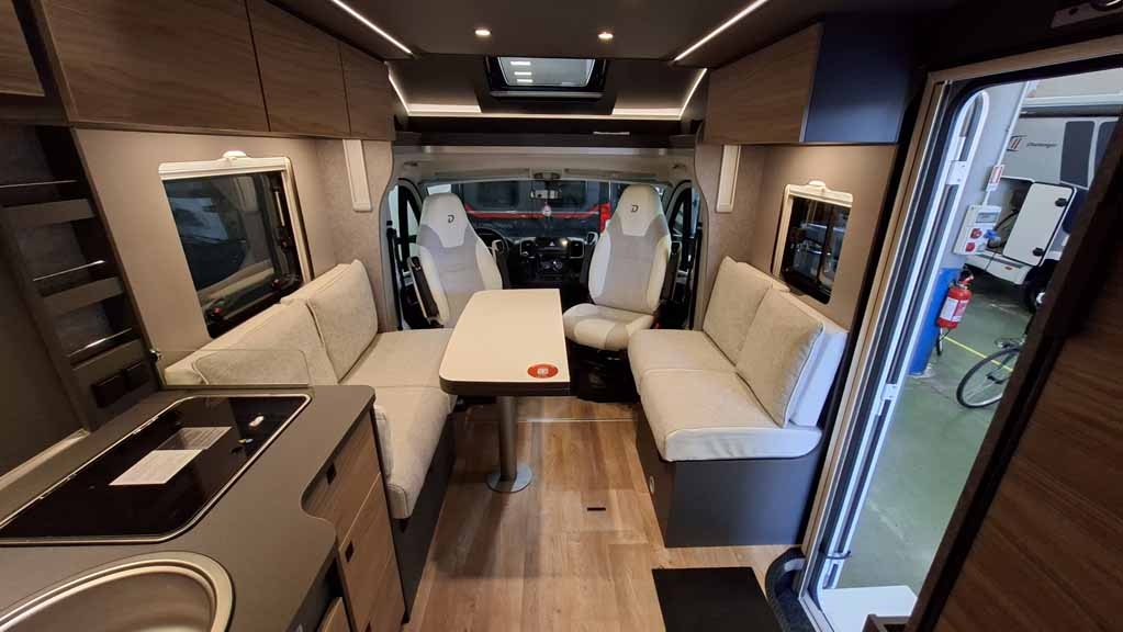 Il motore Fiat Ducato 2.2 da 140 cavalli, abbinato a un cambio manuale, assicura una guida fluida e sicura in ogni condizione. Il comfort interno è garantito dal sistema Truma Combi per riscaldamento e acqua calda così da affrontare ogni stagione in totale relax.
