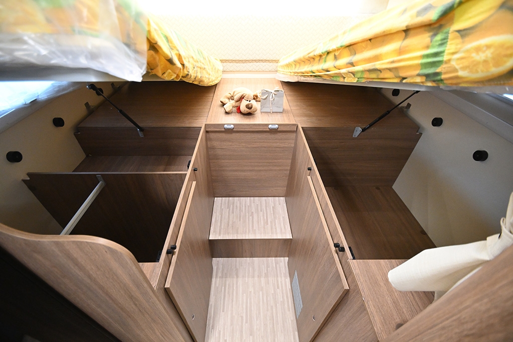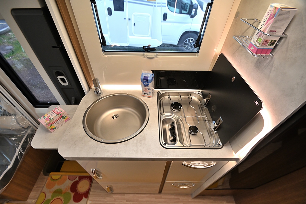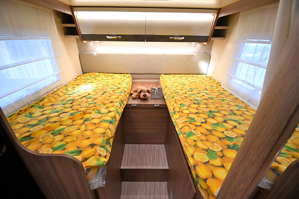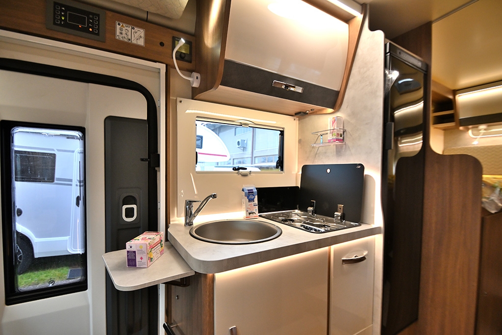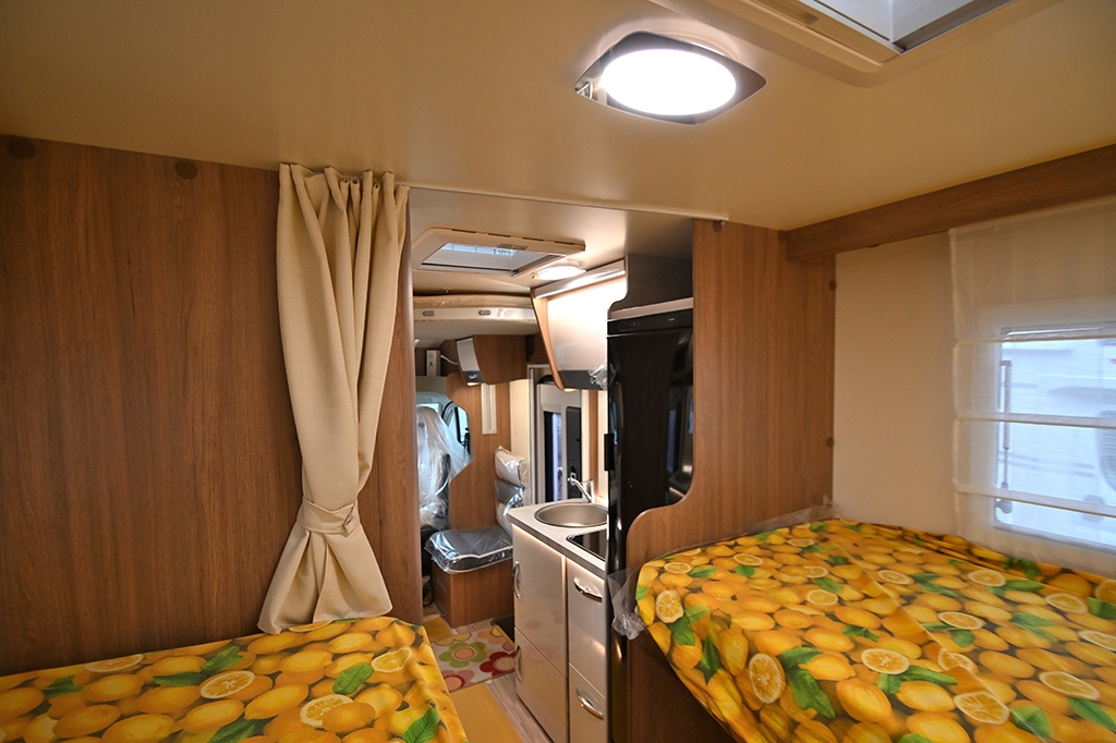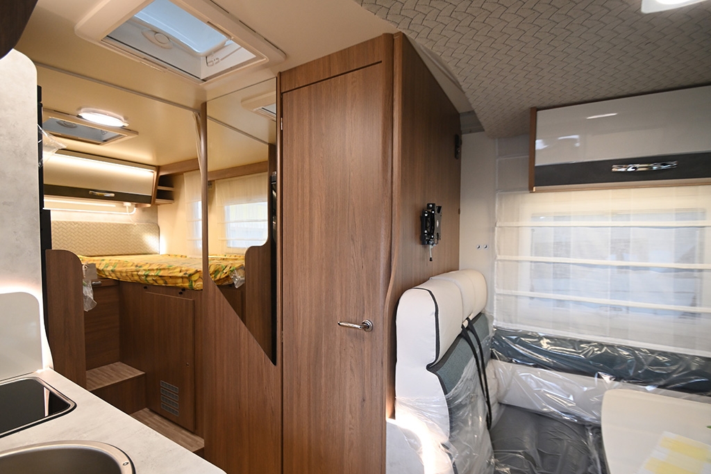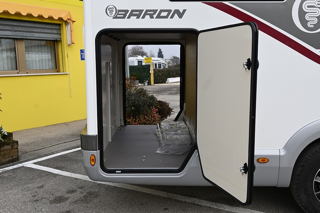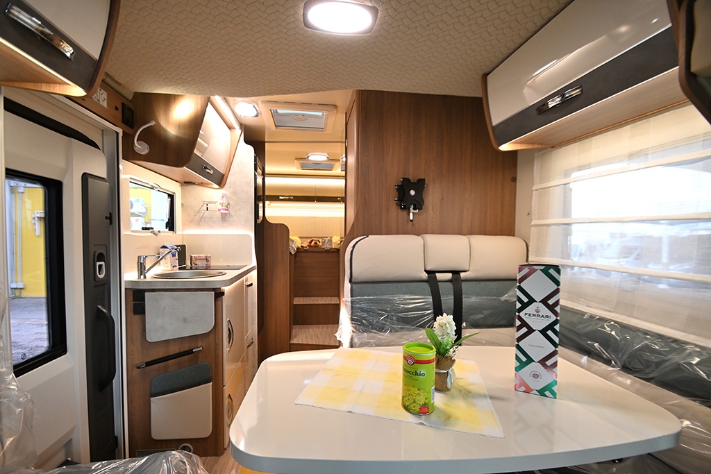 Pacchetto Baron (Pannello solare, stazione multimediale da 9 con Car Play, telecamera retromarcia, fendinebbia, freno di stazionamento elettrico, cerchi in lega da 16, sensori di pressione degli pneumatici, oscuranti plissettati in cabina, paraurti anteriore verniciato in tinta, volante e pomello del cambio rivestiti in pelle, cruscotto in design Techno), ESP, Traction+, Hill Holder, Hill Descent Control, Climatizzatore manuale in cabina, Cruise Control, Airbag passeggero, Specchietti retrovisori elettrici e riscaldabili, Sistema Start & Stop, Porta cellula con finestra, zanzariera e chiusura centralizzata, Winter Pack, Comando digitale Truma CP Plus, Sky-Roof su cupolino anteriore, Supporto TV, Isofix in dinette, Fodere coprisedili cabina in coordinato con tappezzeria, riscaldamento a gasolio Truma Combi 4D
