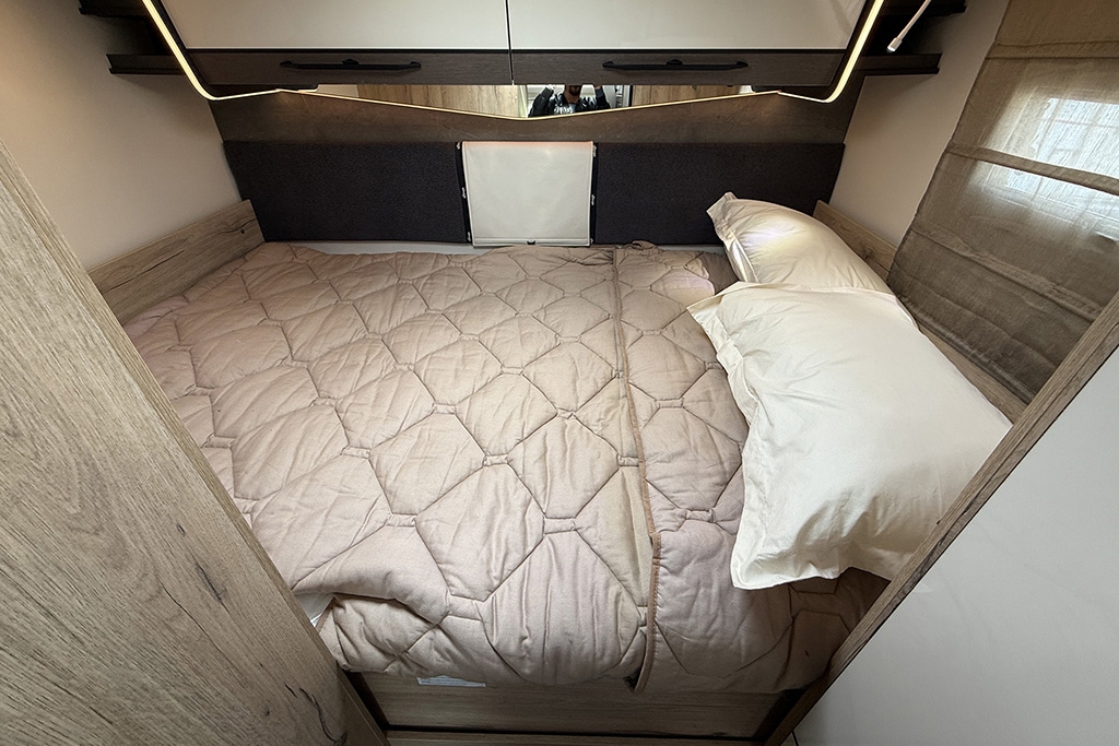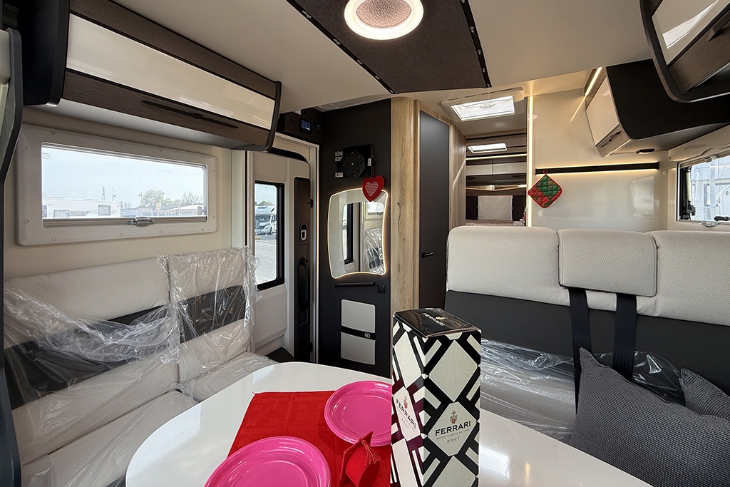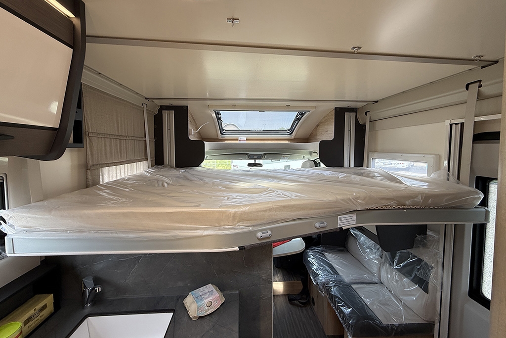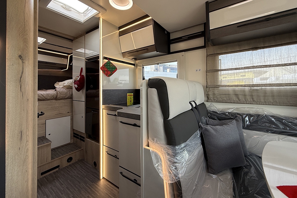 ESP, Traction+, Hill Holder, Hill Descent Control, Climatizzatore manuale in cabina, Cruise Control, Airbag passeggero, Specchietti retrovisori elettrici e riscaldabili, Fendinebbia, Cerchi in lega da 16, Freno di stazionamento elettrico, Sensori di pressione degli pneumatici, Volante e pomello del cambio rivestiti in pelle, Stazione multimediale con schermo da 9 e funzione Apple Car Play o Android Auto, Pannello solare 200 W, Oscuranti plissettati in cabina, Fodere sedili cabina in coordinato con tappezzeria, Porta cellula XL con finestra, zanzariera e chiusura centralizzata, Supporto TV, Winter Pack, Isofix in dinette, Letto posteriore variabile elettricamente in altezza, Sky Roof su cupolino anteriore, Riscaldamento Truma Combi 4 Diesel