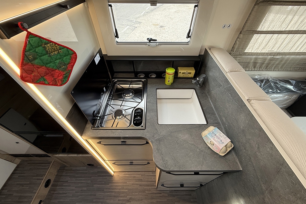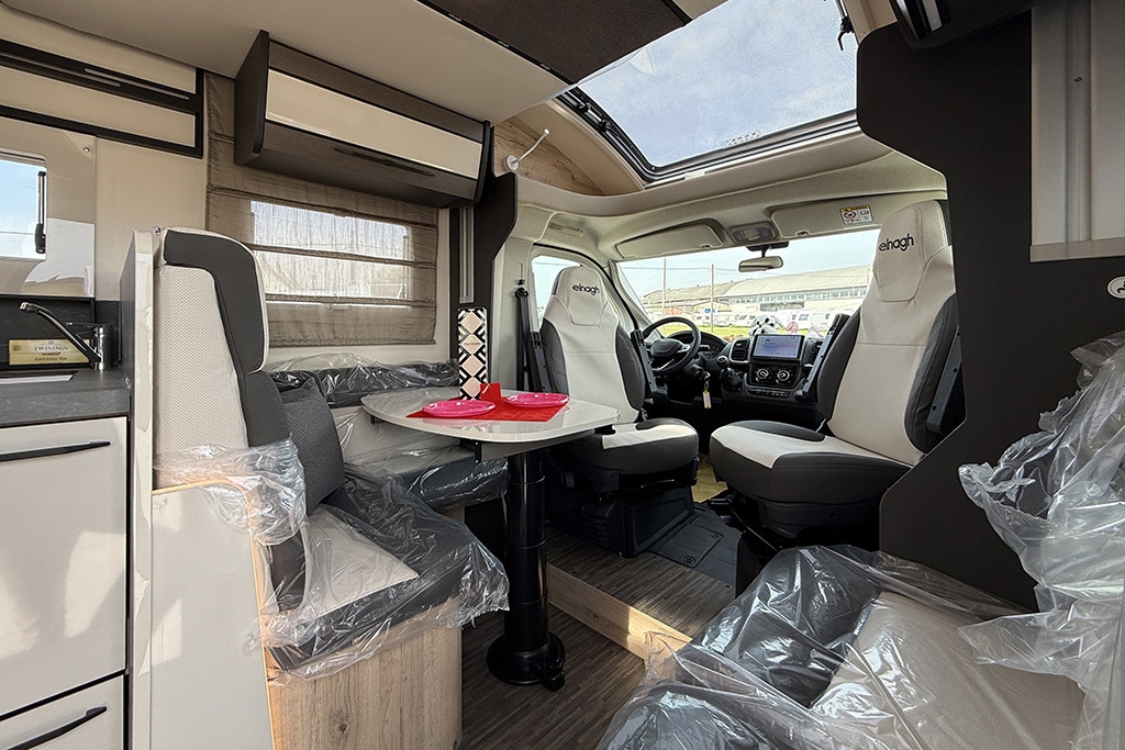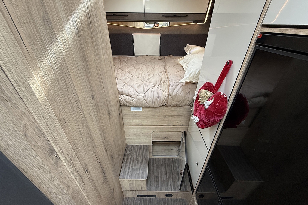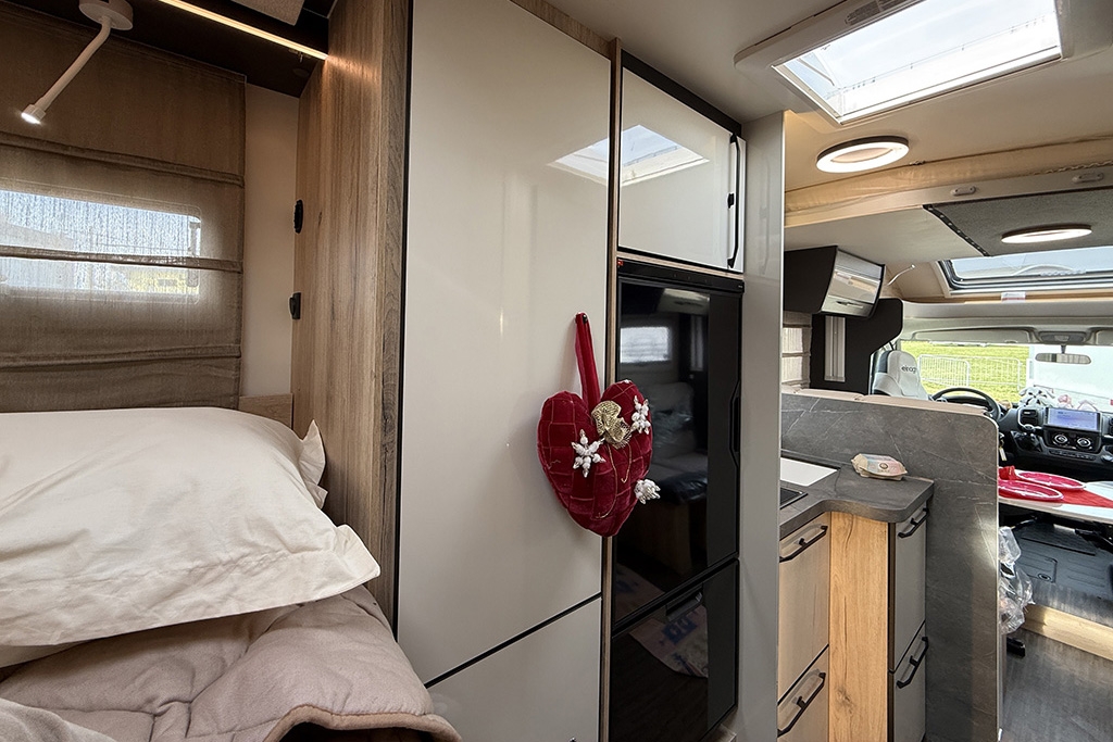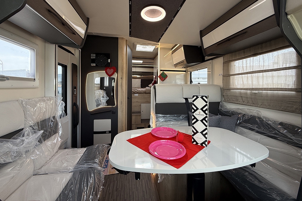 ESP, Traction+, Hill Holder, Hill Descent Control, Climatizzatore manuale in cabina, Cruise Control, Airbag passeggero, Specchietti retrovisori elettrici e riscaldabili, Fendinebbia, Cerchi in lega da 16, Freno di stazionamento elettrico, Sensori di pressione degli pneumatici, Volante e pomello del cambio rivestiti in pelle, Stazione multimediale con schermo da 9 e funzione Apple Car Play o Android Auto, Pannello solare 200 W, Oscuranti plissettati in cabina, Fodere sedili cabina in coordinato con tappezzeria, Porta cellula XL con finestra, zanzariera e chiusura centralizzata, Supporto TV, Winter Pack, Isofix in dinette, Letto posteriore variabile elettricamente in altezza, Sky Roof su cupolino anteriore, Riscaldamento Truma Combi 4 Diesel