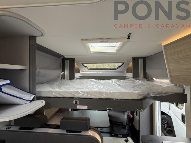 Finestre con cornice, Skyview sul cupolino, Oscuranti plissettati in cabina, Letto basculante elettrico in dinette