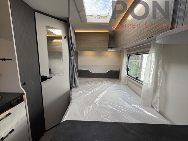 Finestre con cornice, Skyview sul cupolino, Oscuranti plissettati in cabina, Letto basculante elettrico in dinette