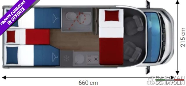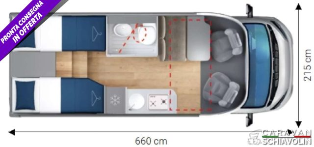 Letto basculante anteriore ? 1.000,00Truma Combi 4000 Diesel ? 610,00PACK PRIVILEGE COMPACT ? 1.500,00 (Paraurti verniciato, fari fendinebbia, Radio con schermo da 6,8' AppleCarPlay e AndroidAuto, Retrocamera HD, Foderine cabina in tessuto coordinato, Porta a 2 punti XL con finestra e chiusura centralizzata)PACK SPORT ? 1.000,00 (Cerchi in lega 16', Volante e pomello cambio in pelle, inserti del volante in alluminio)DI SERIE sui COMPACT STANDARD : Telaio da 35Qli. 140cv, Climatizzatore cabina, Pneumatic M+S 4 Stagioni,Airbag guidatore e passeggero, Esp, Traction Plus, Hill holder, Hill descent, Start & Stop, Cruise control, Predisposizione radio Dab, Specchietti retrovisori elettrici e riscaldati, Cambio manuale 6 marce, Serbatoio acque grigie riscaldato, Comando Truma CP Plus, Gradino esterno elettrico, Attacchi isofix, Cerchi da 15 in acciaio, Porta cellula XL con un punto di chiusura, KIT Oscurante isolante interno cabina, Finestre con telaio a filo carrozzeria, Predisposizione pannello solare, Predisposizione antenna tv digitale/sat, Zanzariera porta cellula, Luce esterna a led, Tapezzeria di serie DANTE e a richiesta senza sovrapprezzo RAFFAELLO e MICHELANGELO. n.b. altro optional a richiesta = Letto supplementare dinette CAMPER SEMINTEGRALE COMPATTO, ,LETTI GEMELLI SOPRA GARAGE CON PORTATA 300KG, ,LETTO BASCULANTE ANTERIORE ELETTRICO, GRANDE BAGNO VARIO E ,FRIGORIFERO GRANDE.NOVITA', ,2026IN PRONTA CONSEGNA ,.